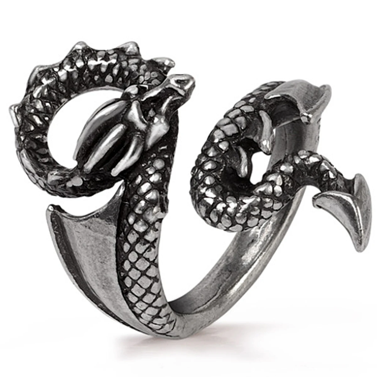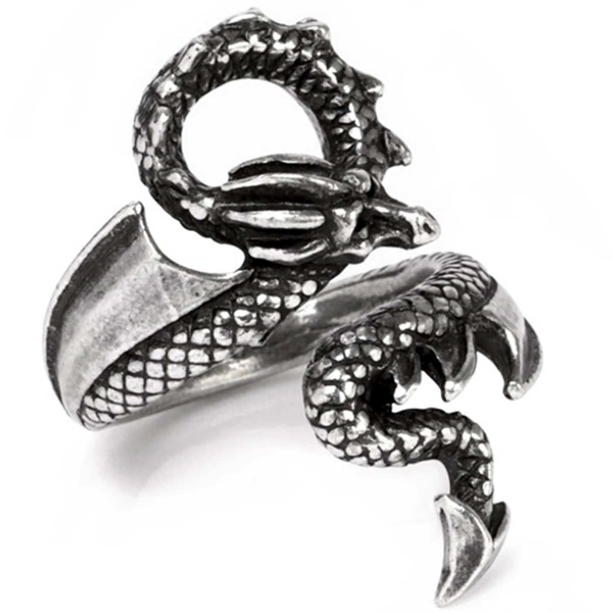 • Une superbe bague dragon en étain poli.