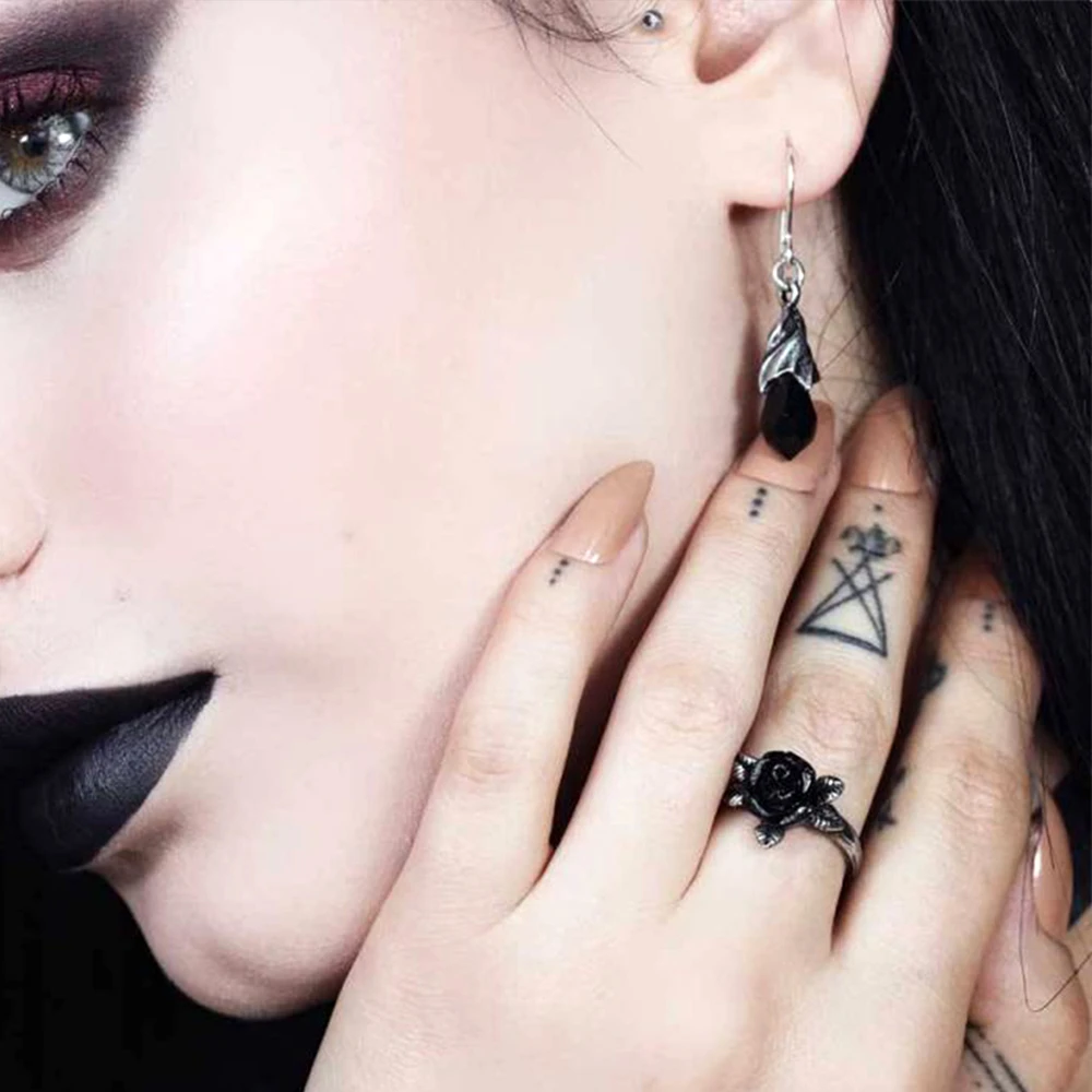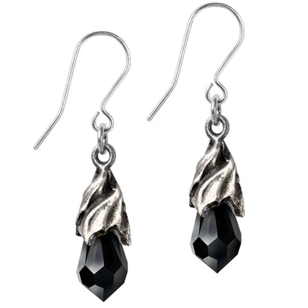 • Une paire de boucles d’oreilles compte-gouttes montées en étain de larmes de cristal autrichien noir.