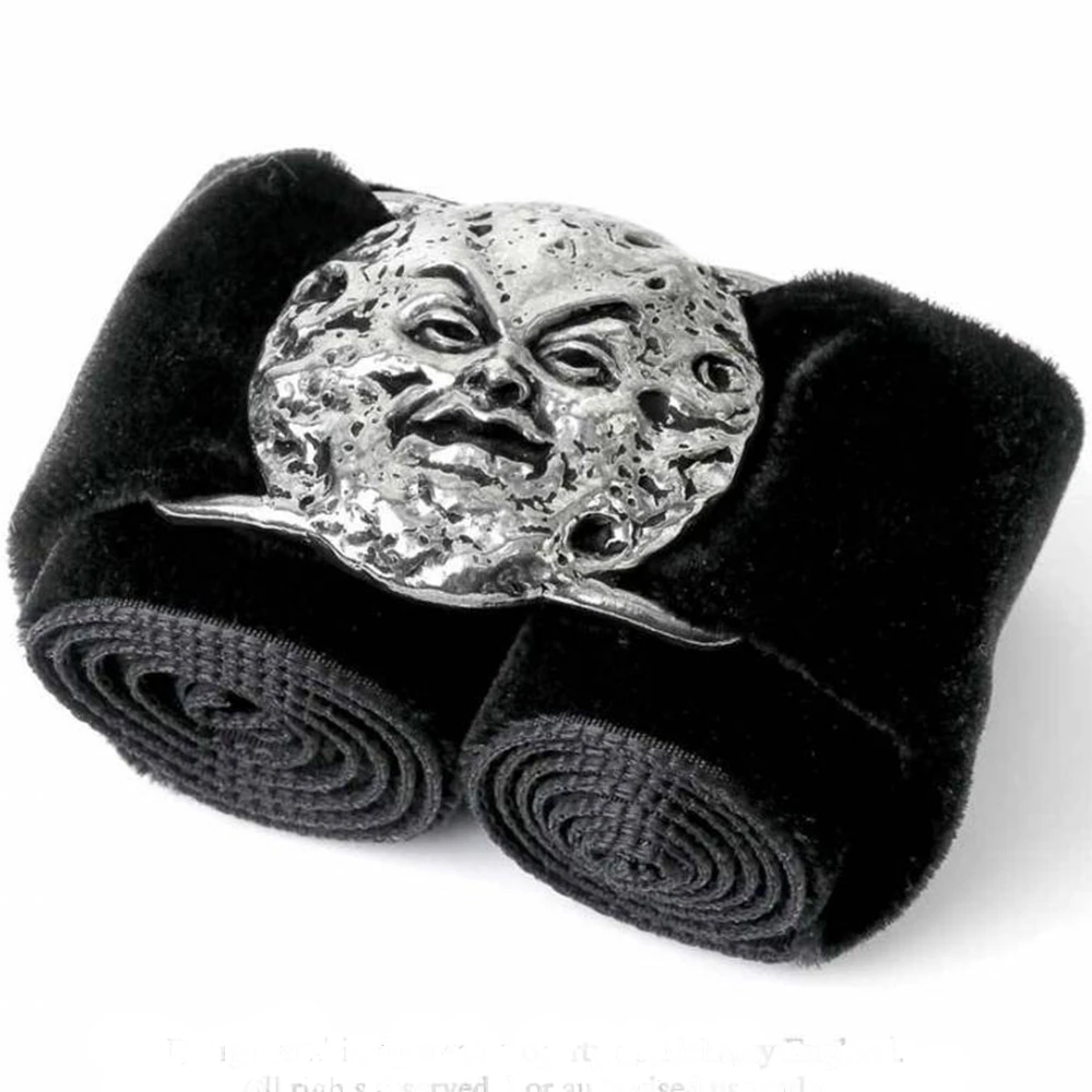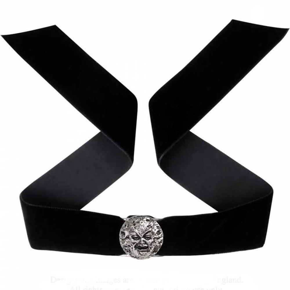 • Un disque lunaire de 30 mm de diamètre représentant le visage de l’homme sur la lune en relief, enfilé sur un ruban ras du cou en velours noir de 36 mm de large.