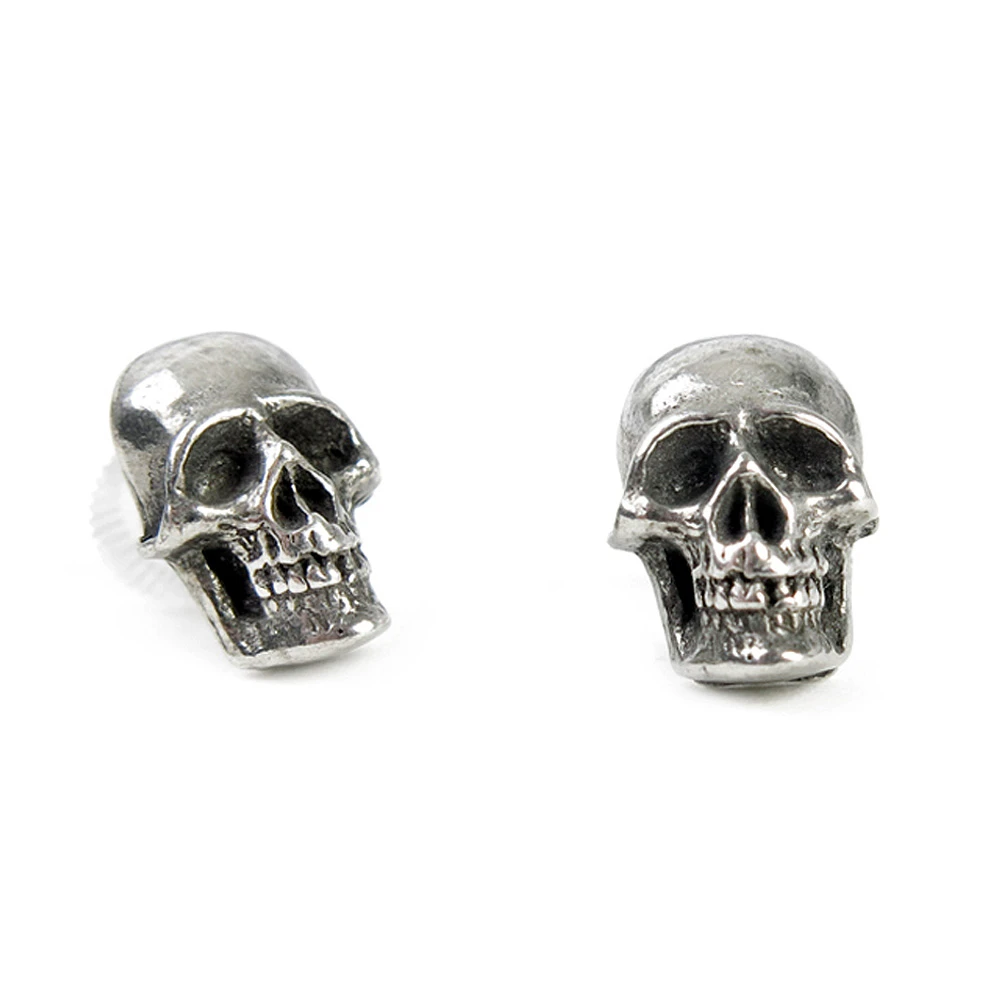 • Une paire de clous d’oreilles tête de mort de taille moyenne, avec des tiges d’oreille en acier chirurgical.