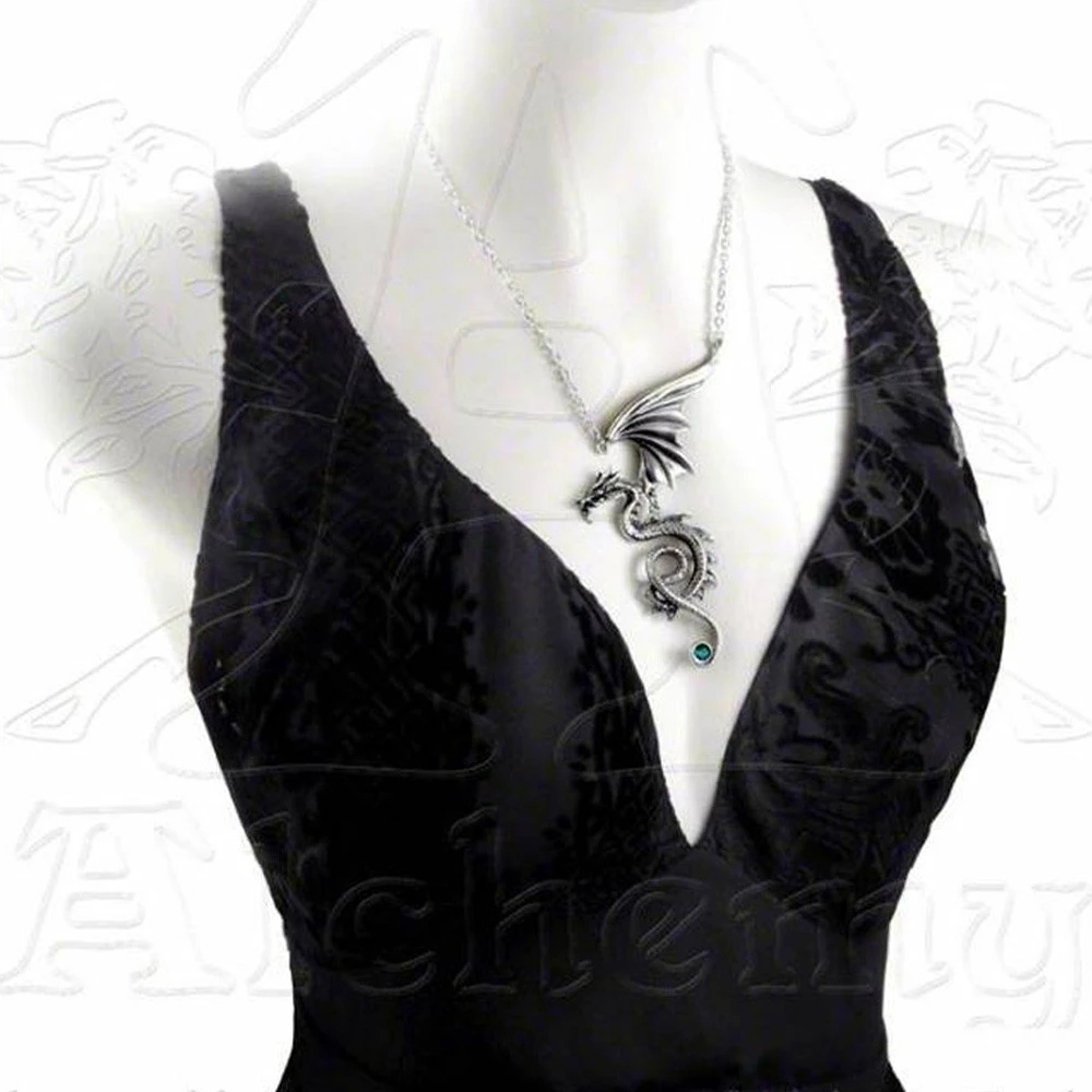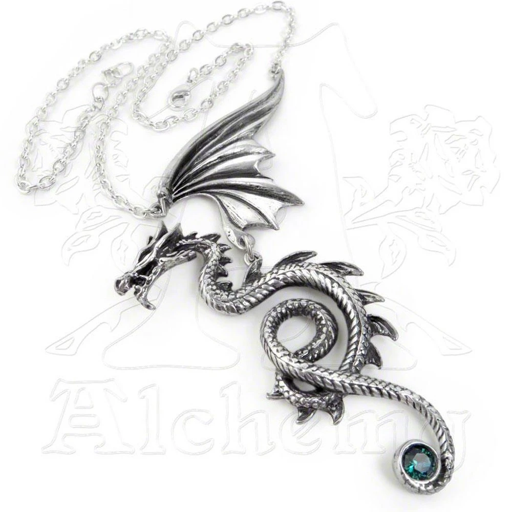 Gardien de l’entrée du sanctuaire gothique des Esprits de l’Autre Monde. La queue de cet imposant Dragon s’enroule autour d’un cristal de Swarovski vert émeraude.