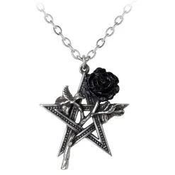 • Un pentagramme détaillé en étain entrelacé d’une rose aux pétales noirs
