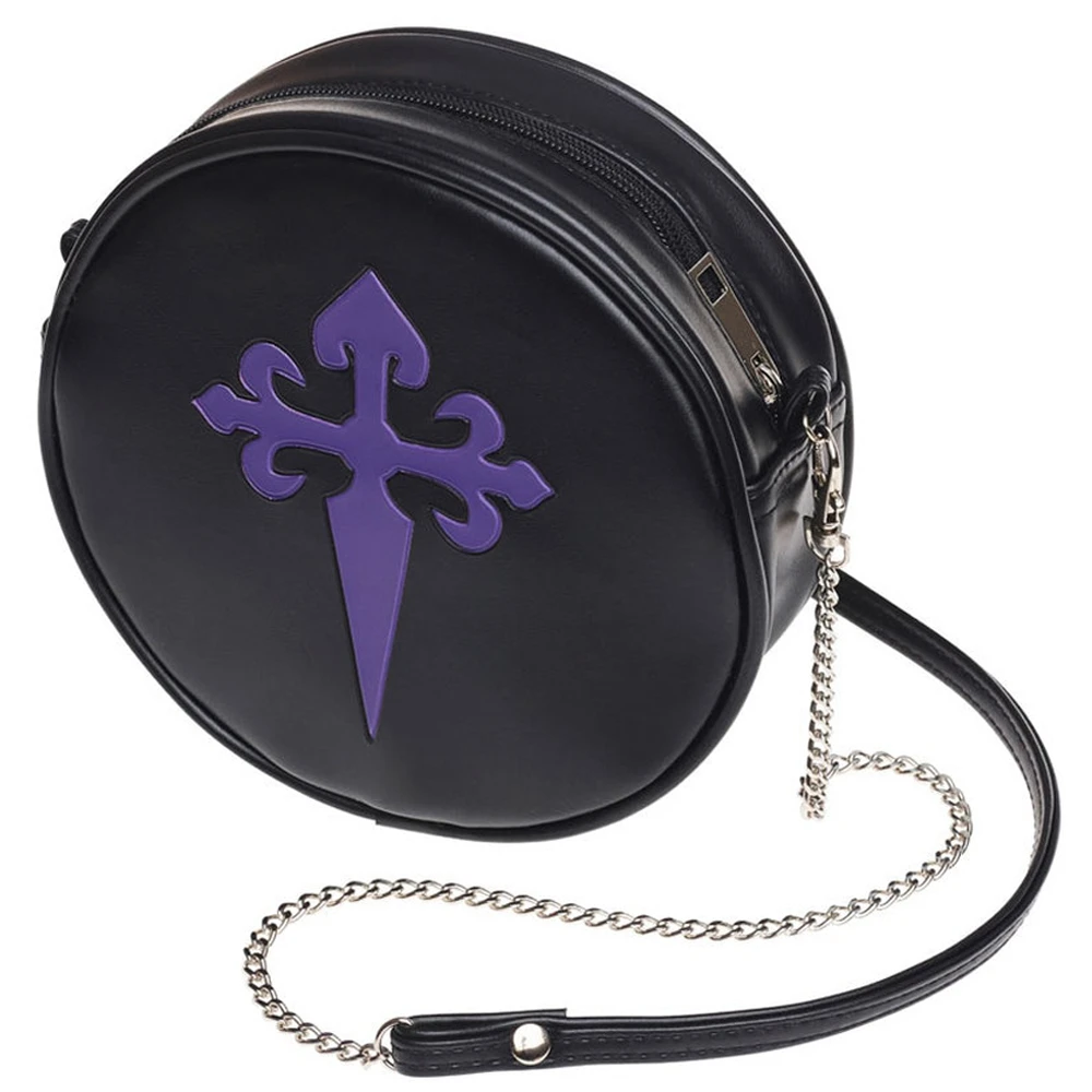 Irrésistible sac à bandoulière rond, rehaussé d’une croix gothique, en relief sur la face avant.