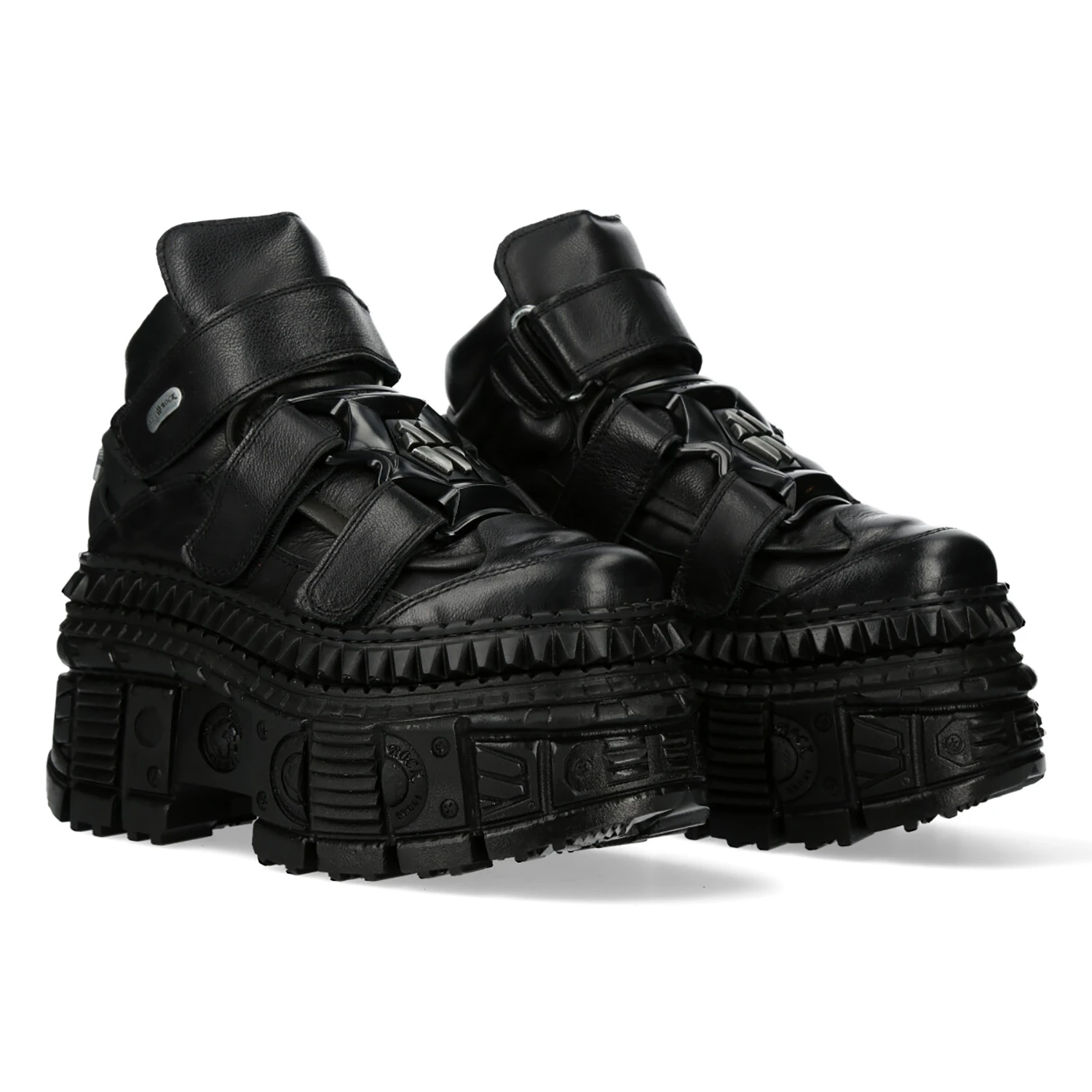Chaussures Plateformes New Rock Tank En Cuir Noir