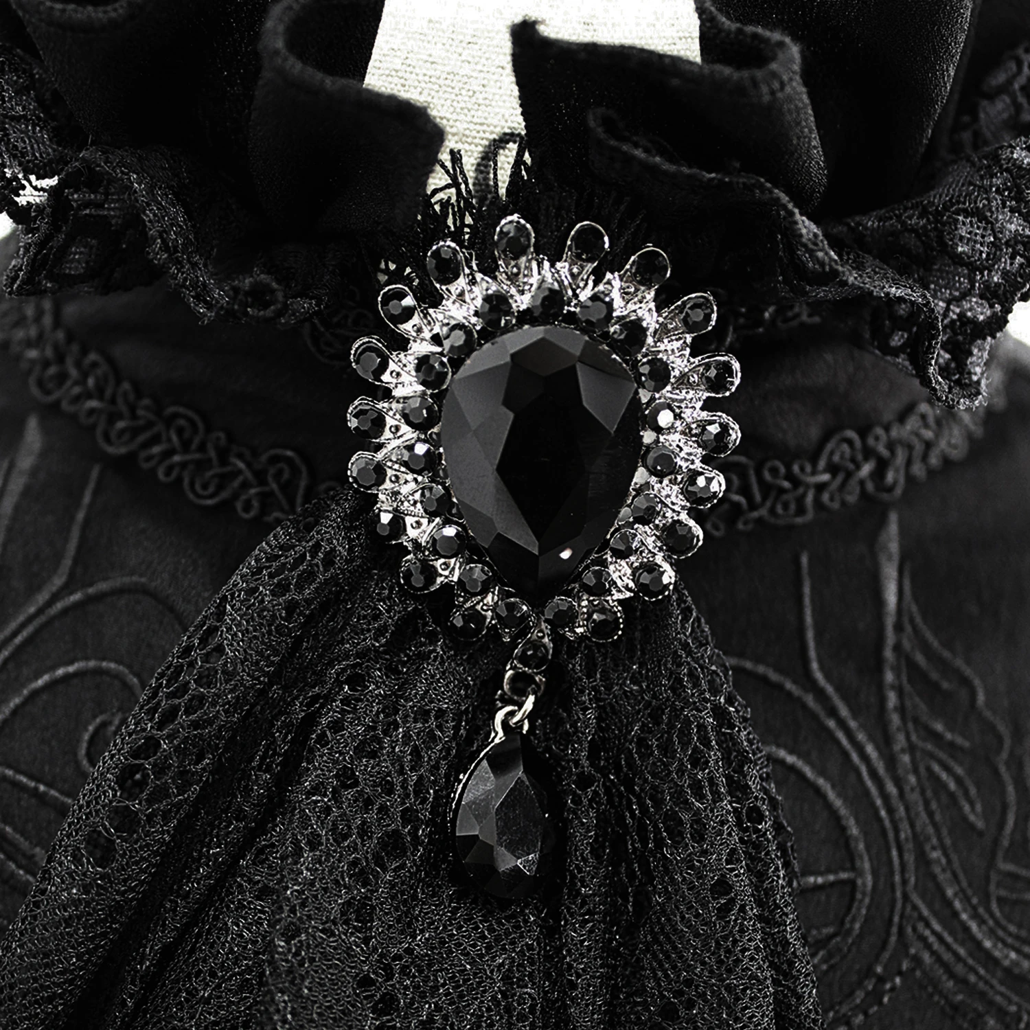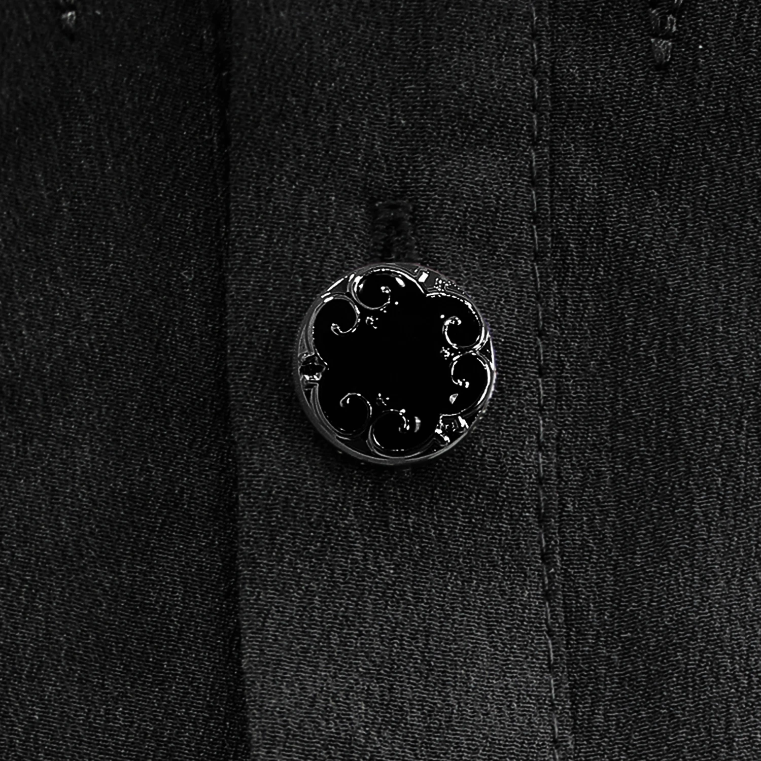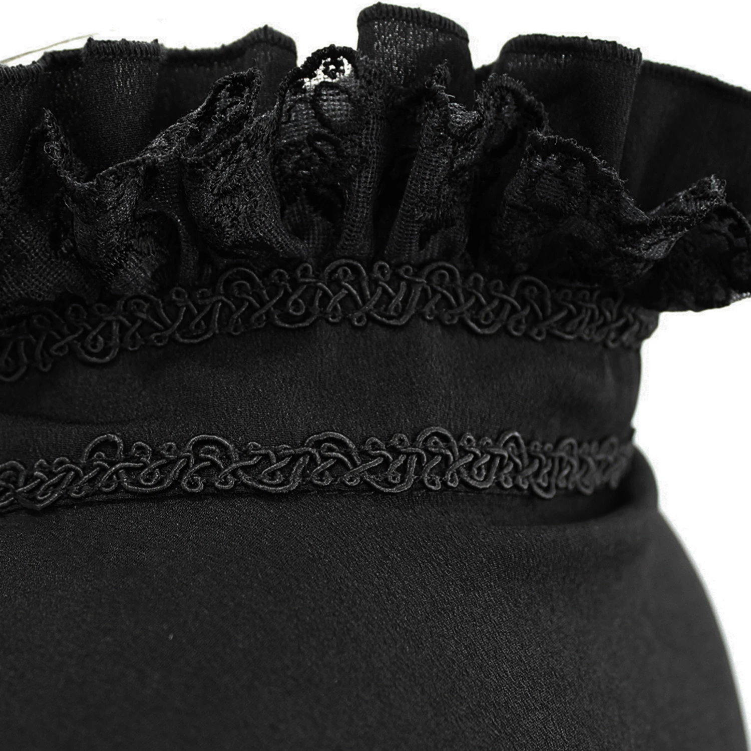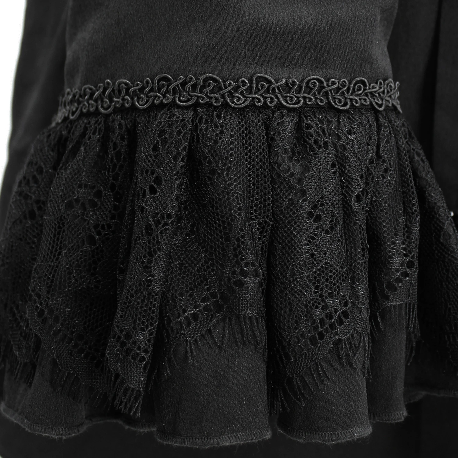 • Poignets boutonnés, garnis d’un tressage noir et ornés de dentelle