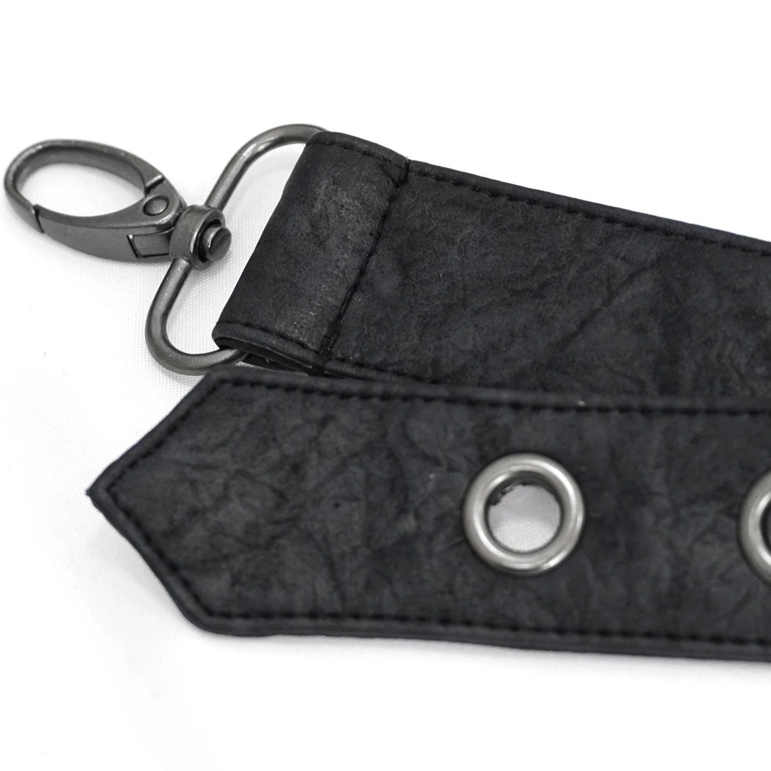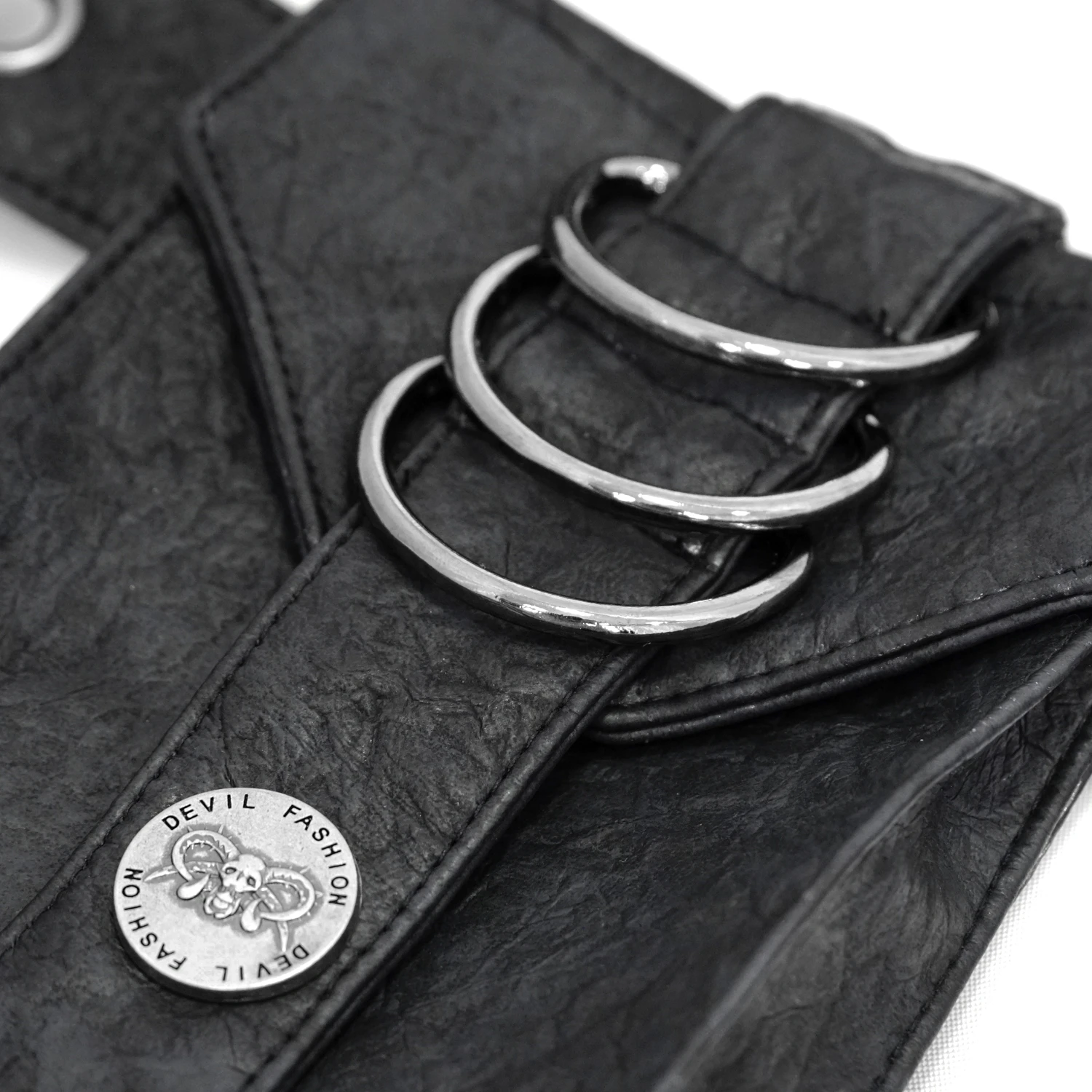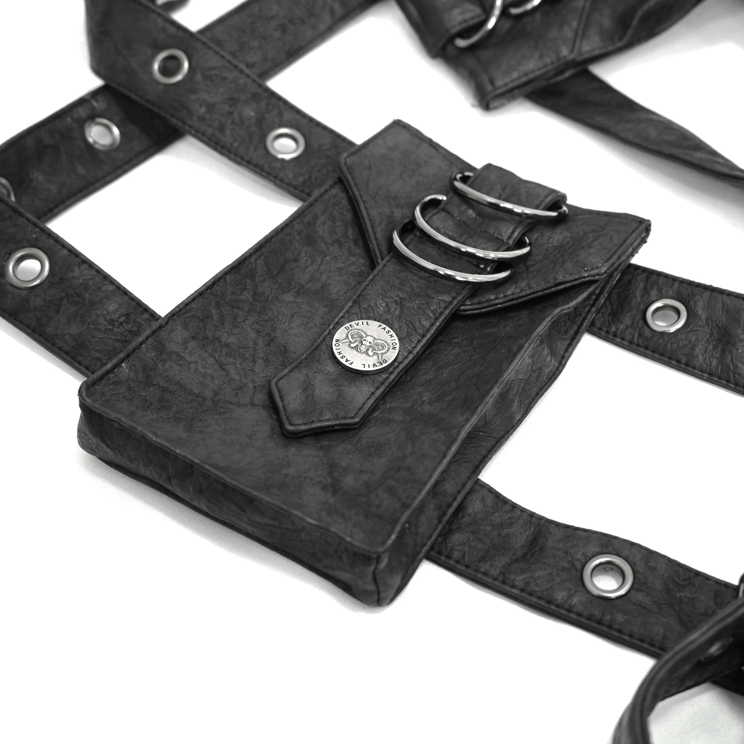 • Deux poches sur les hanches avec rabats à pression et anneaux en D métalliques