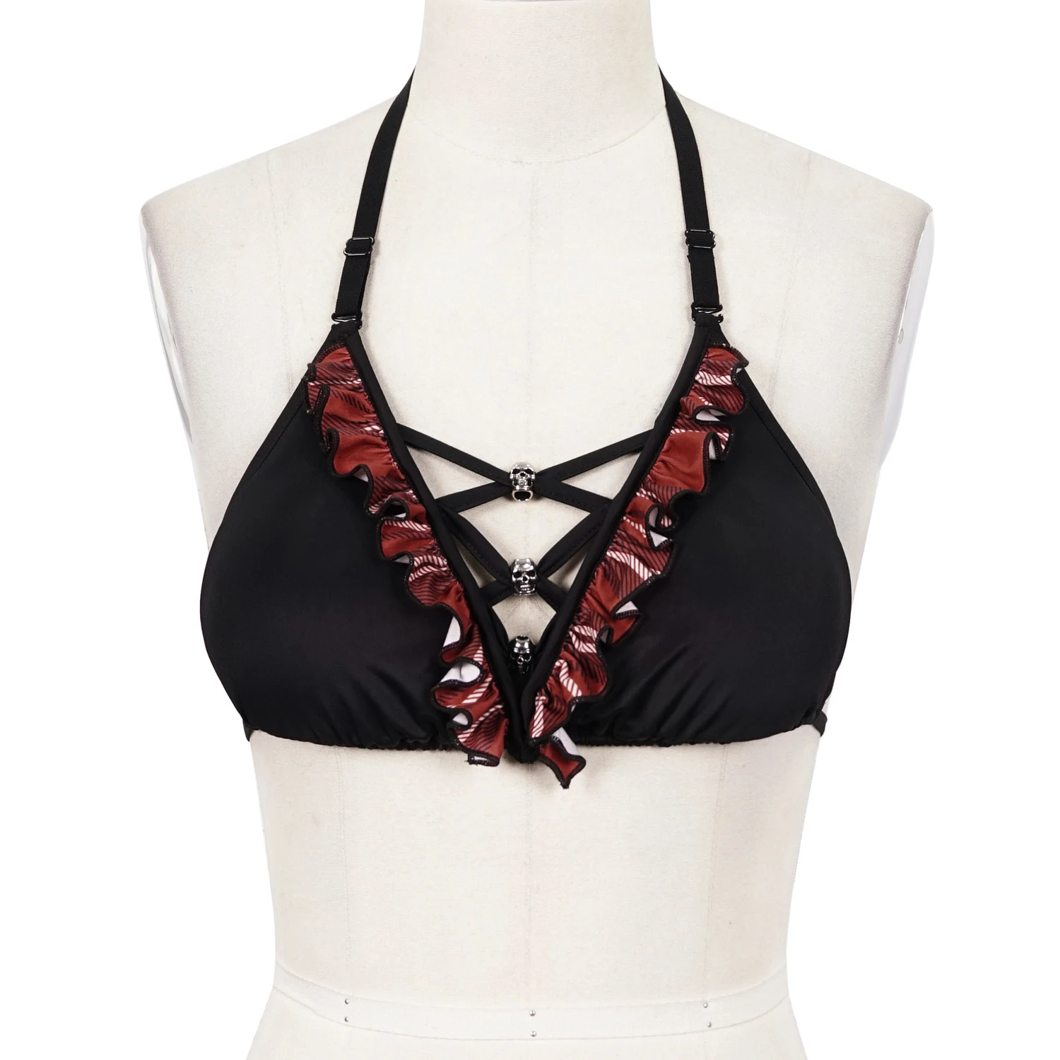 • Bordures à volants sur le devant en tissu écossais rouge à carreaux