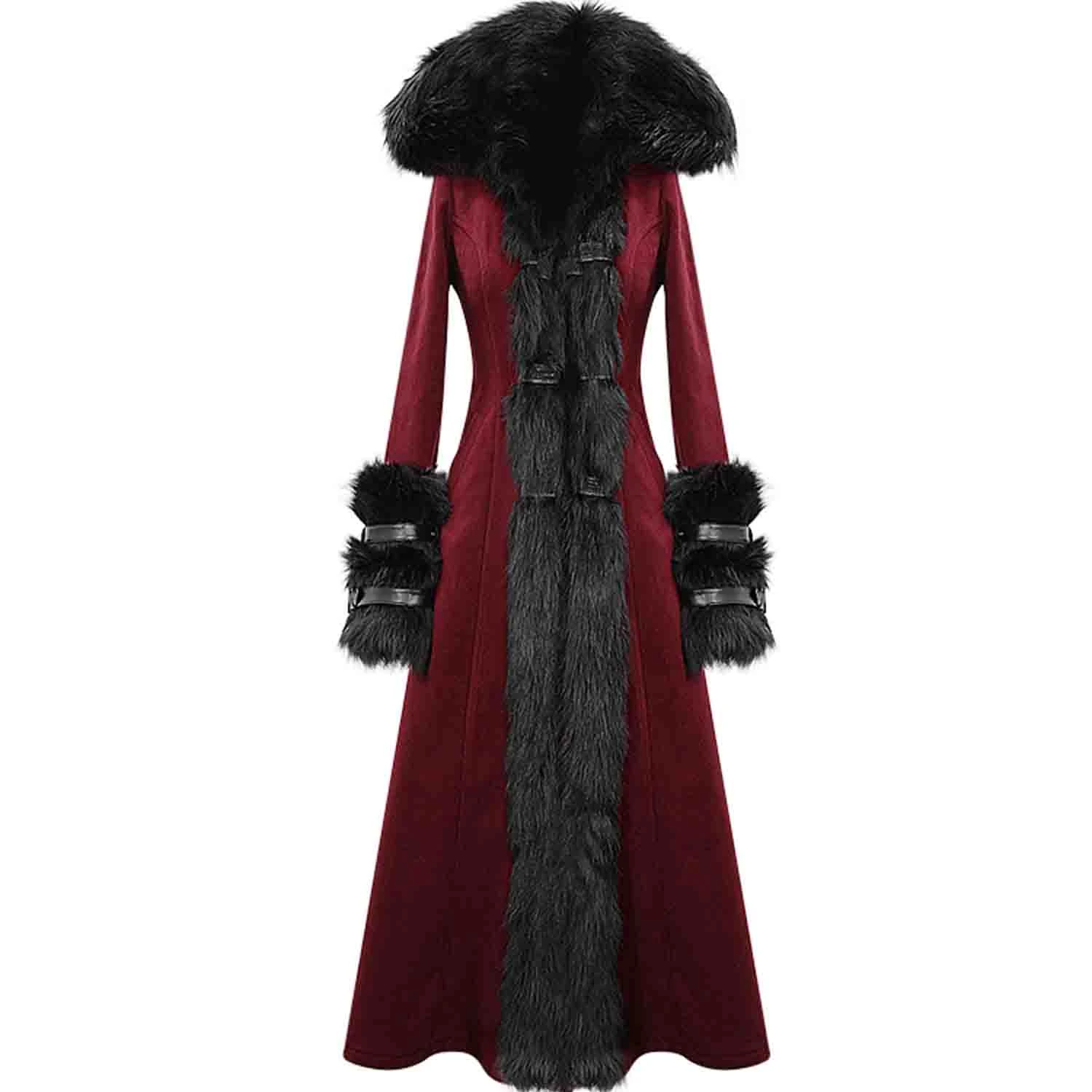 Superbe long manteau d’hiver à capuche de style Gothic Lolita