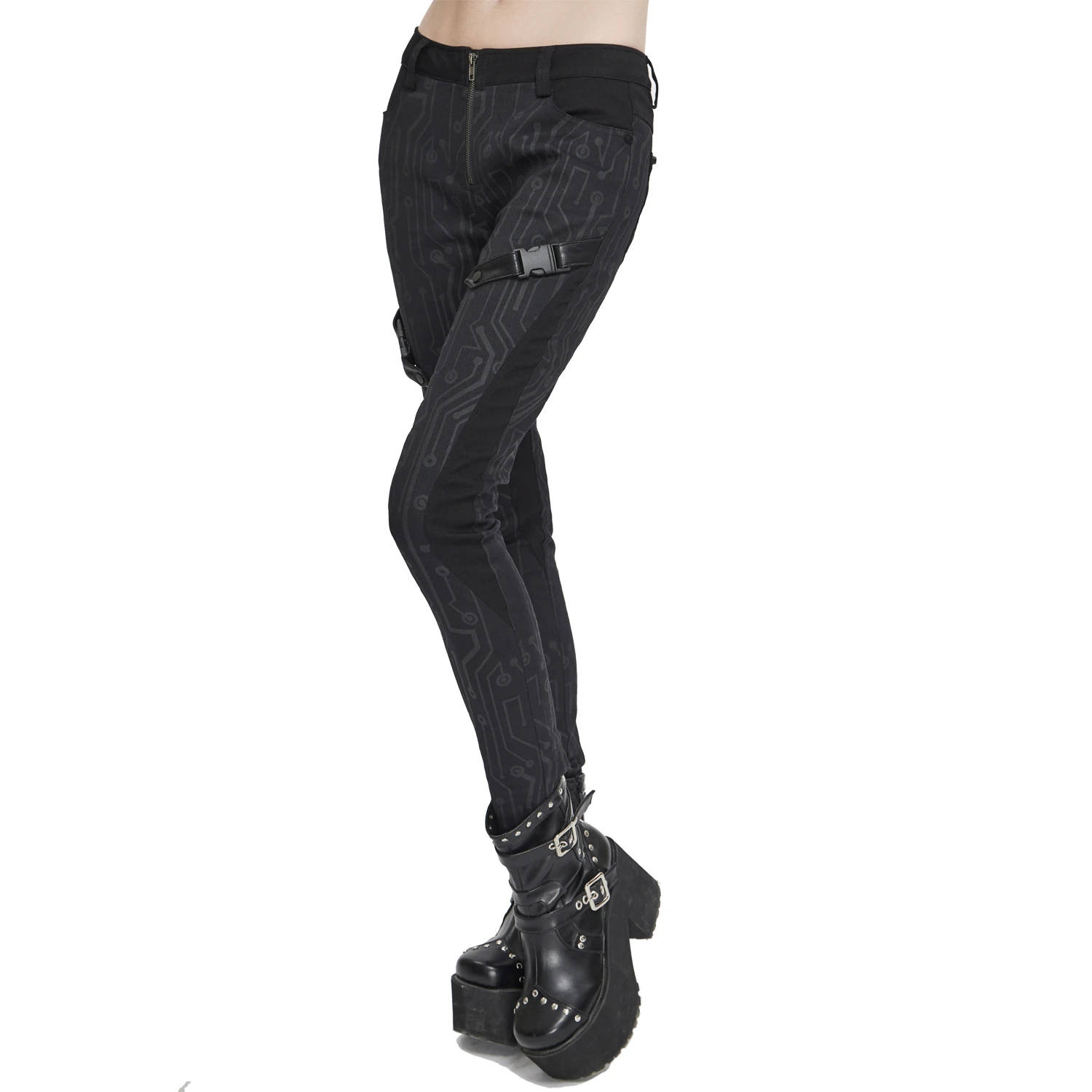 Pantalon slim en coton imprimé noir de style cyber goth.