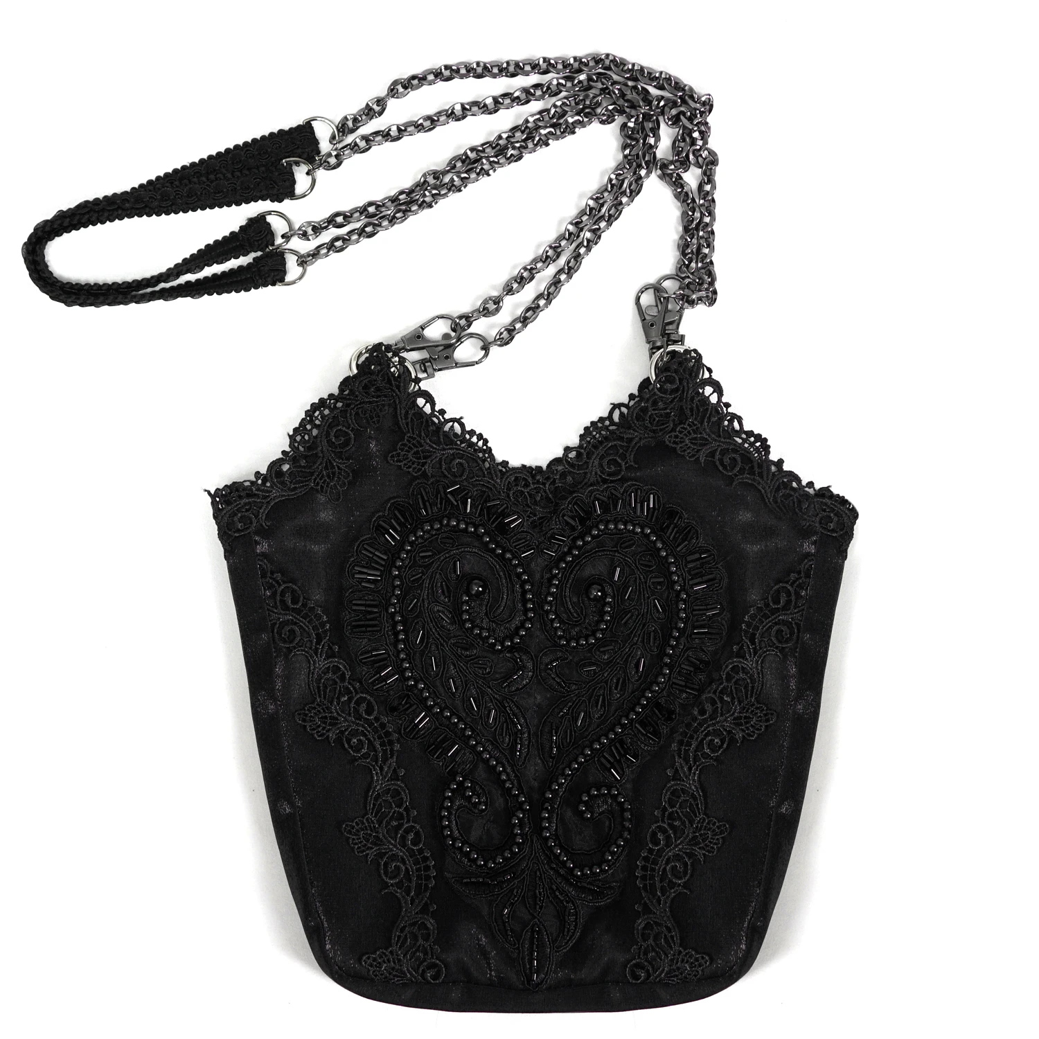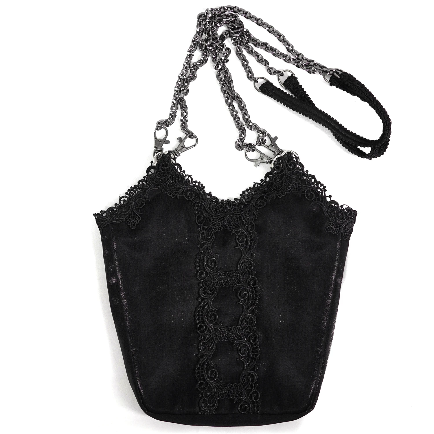 • Bandoulière amovible en chaîne avec insert en dentelle pour un plus grand confort