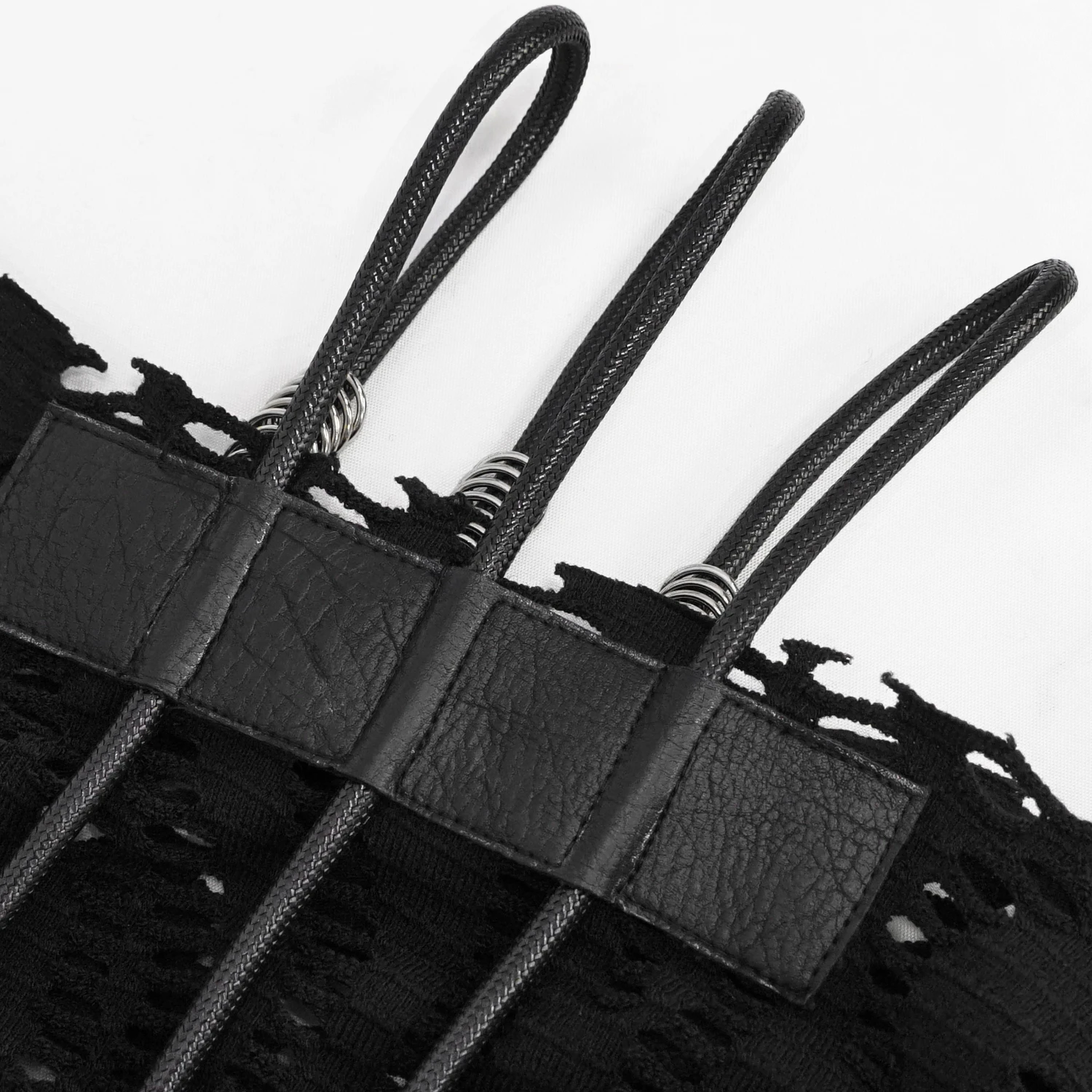 • Cordes sur l’épaule gauche et dans le dos, avec ornements en métal