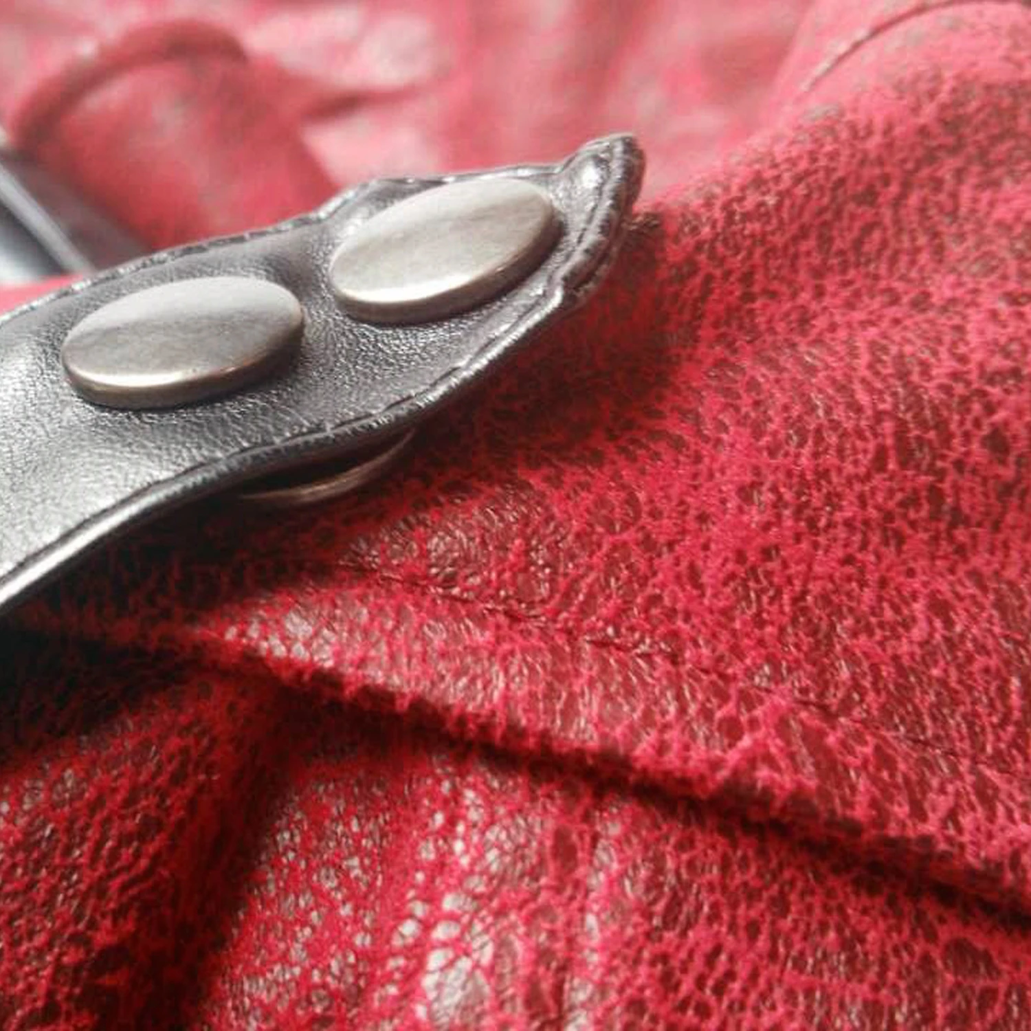 Veste de style post apocalyptique en polyester rouge et simili cuir noir