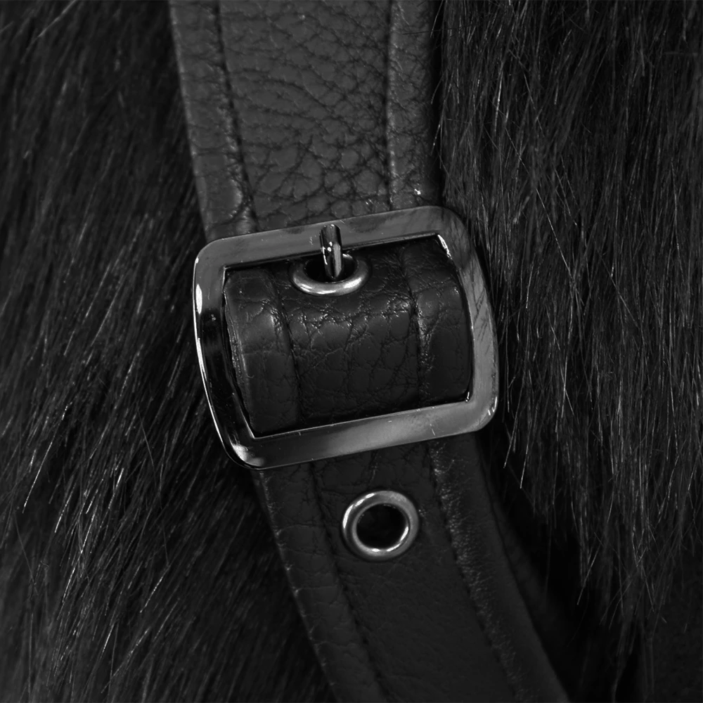 • Harnais ajustable et amovible en simili cuir, avec une épaisse bordure en fausse fourrure