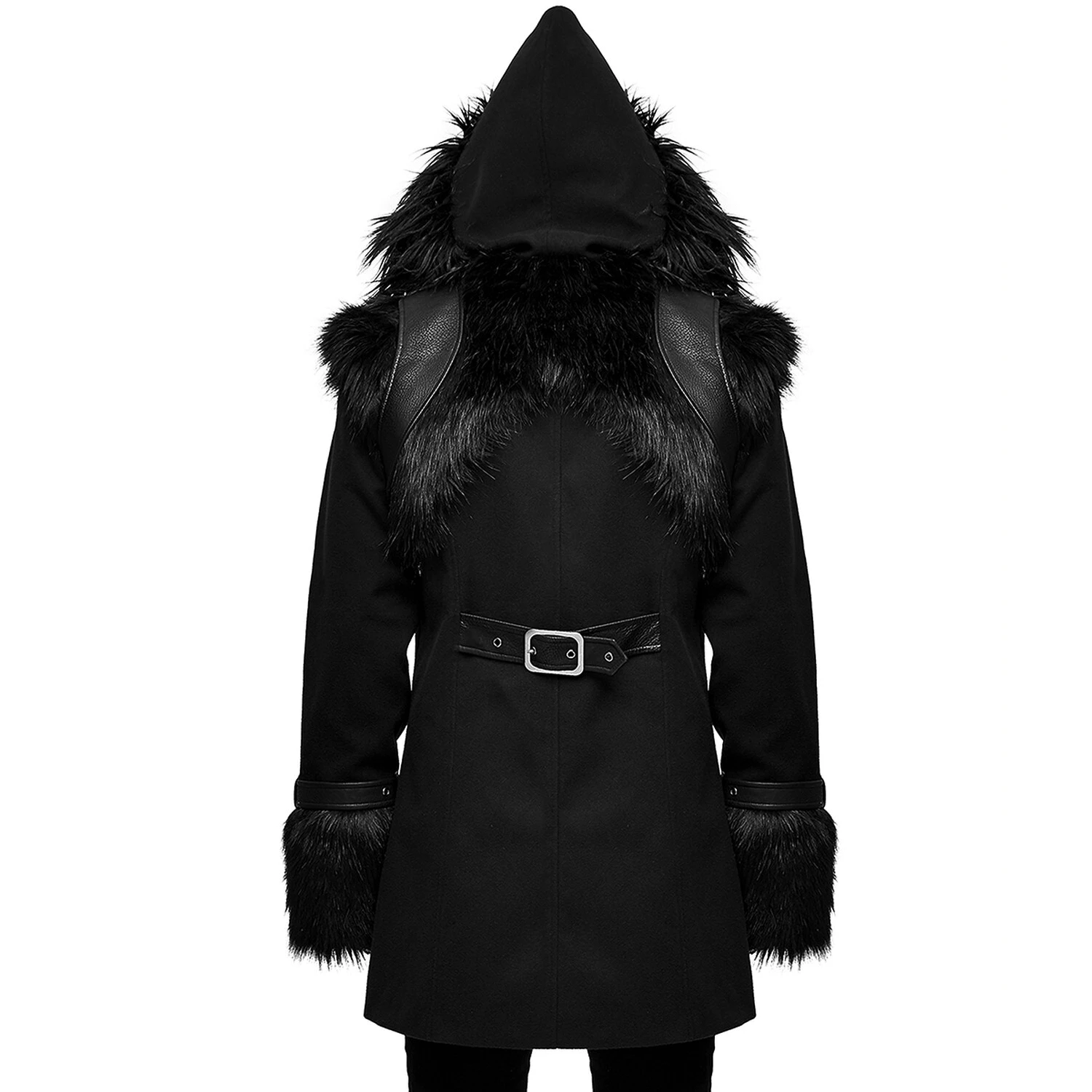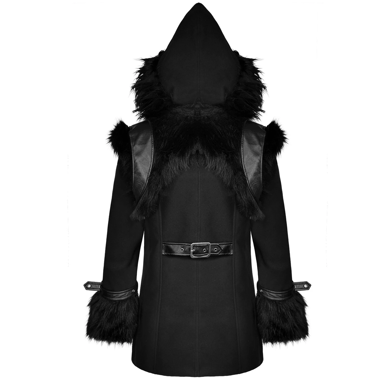 • Capuche surdimensionnée et pointue avec une large bordure en fausse fourrure noire