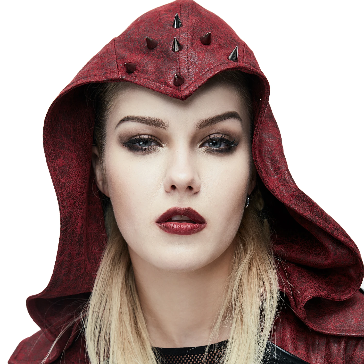 • Capuche oversize inspirée d’Assassins Creed à fermeture à pression entièrement amovible avec des spikes métalliques sur le devant