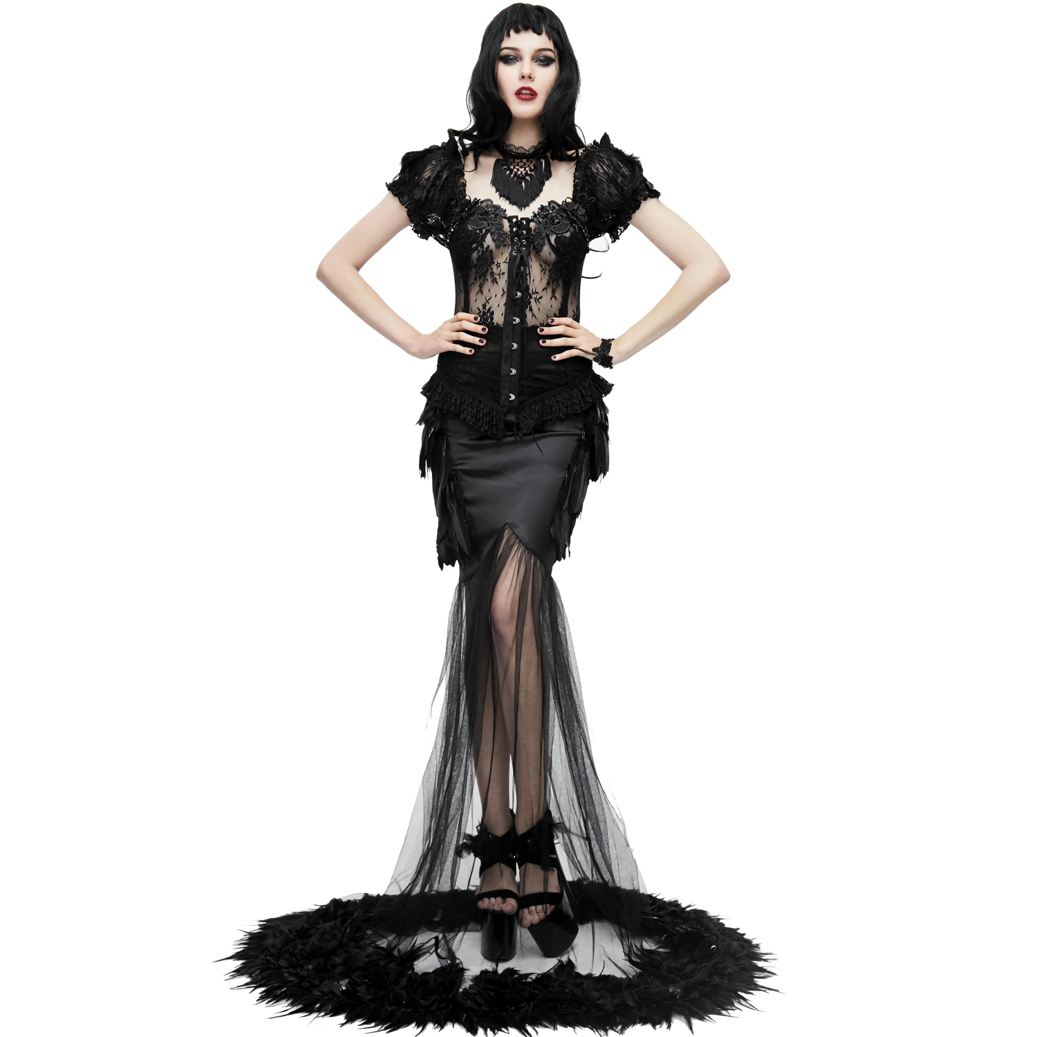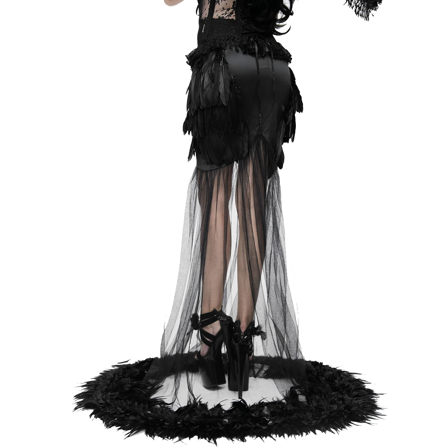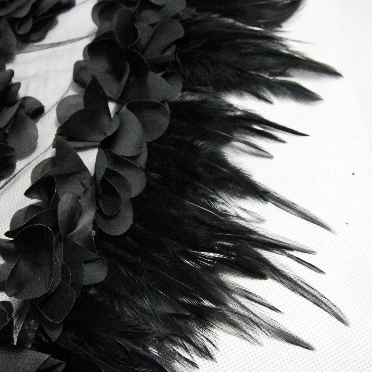 • Présence de plumes de chaque côté des hanches et au bas de l’ourlet