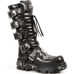 Bottes Hautes Coquées New Rock Metallic En Cuir Noir