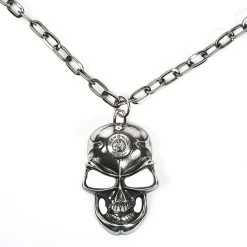 NEW ROCK Pendentif Skull Argenté Avec Chaîne