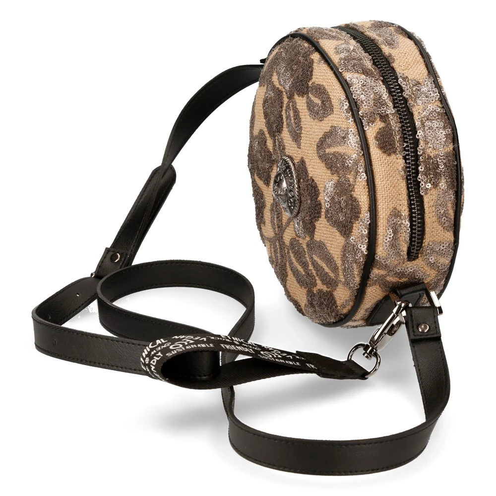NEW ROCK Sac à Bandoulière Rond Beige à Fleurs