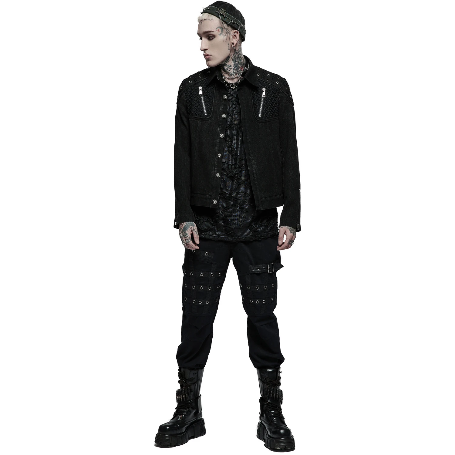 PUNK RAVE Blouson ‘Punk Ragged’ En Jean Noir
