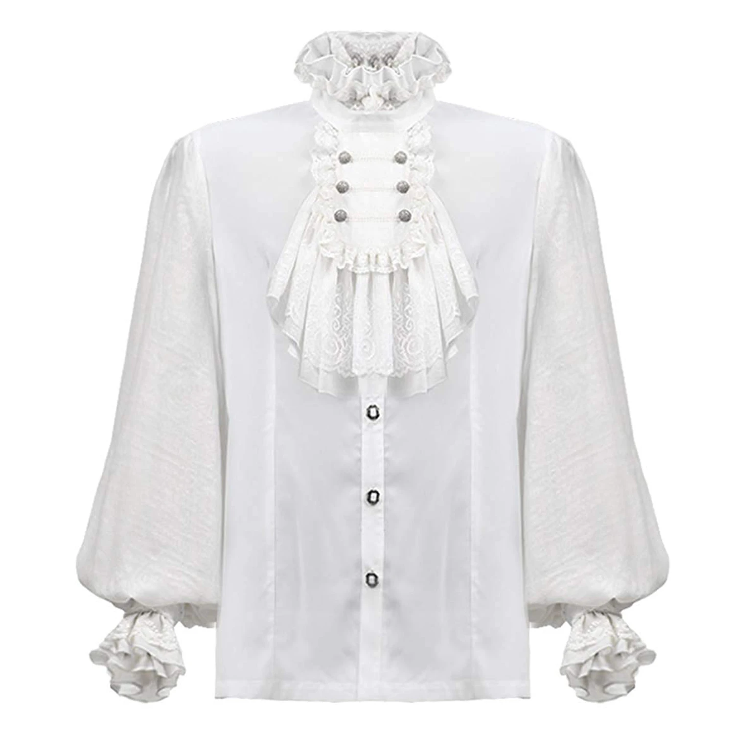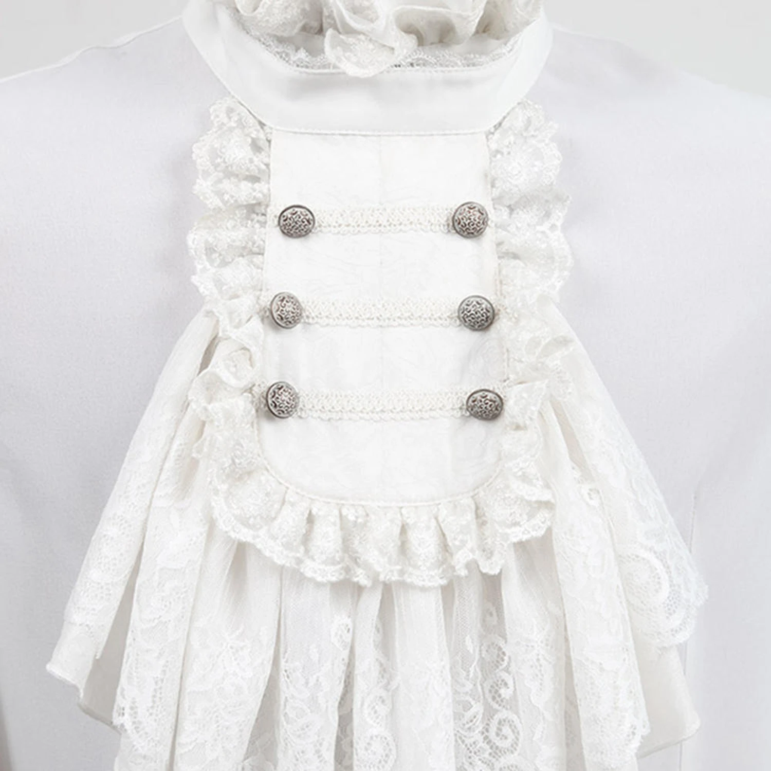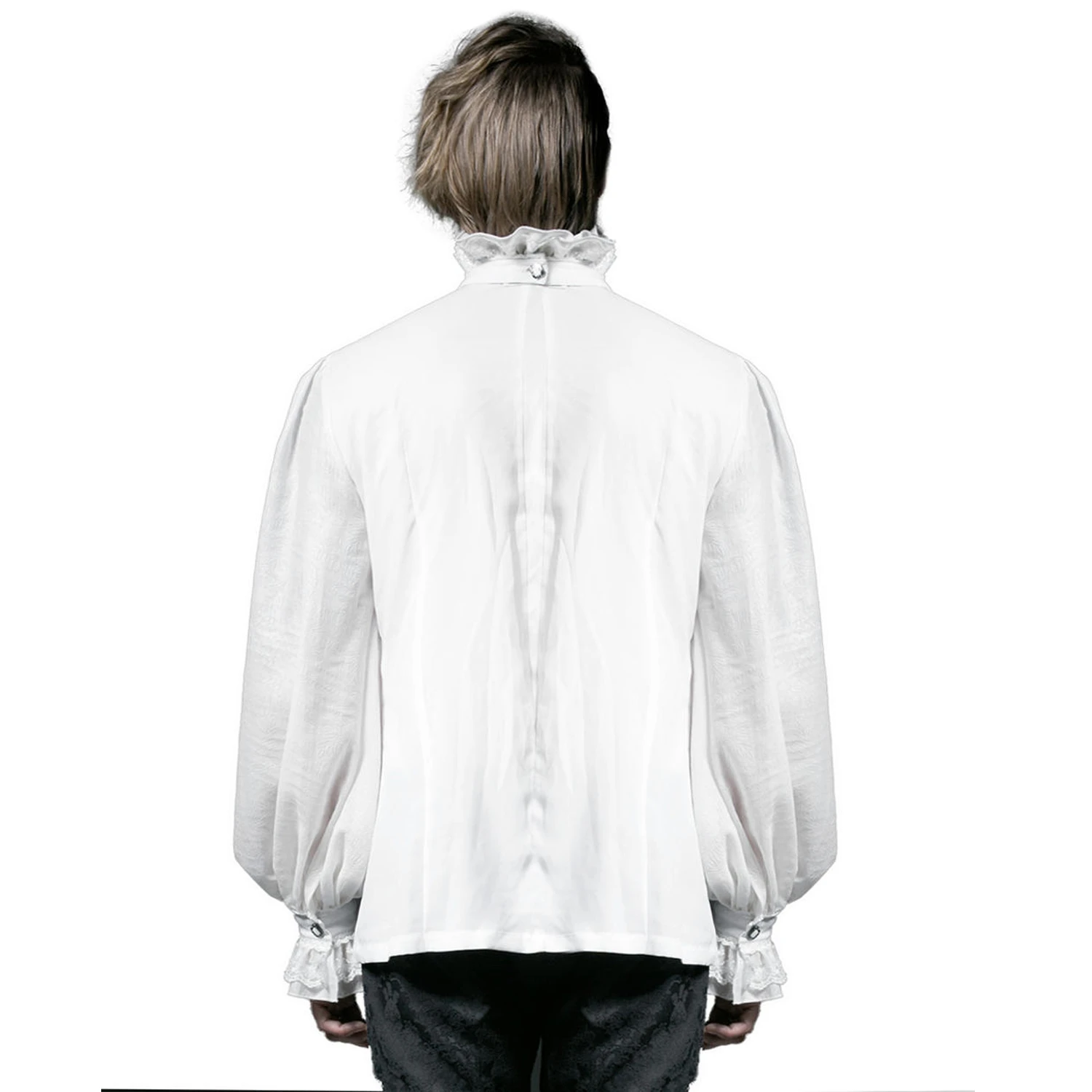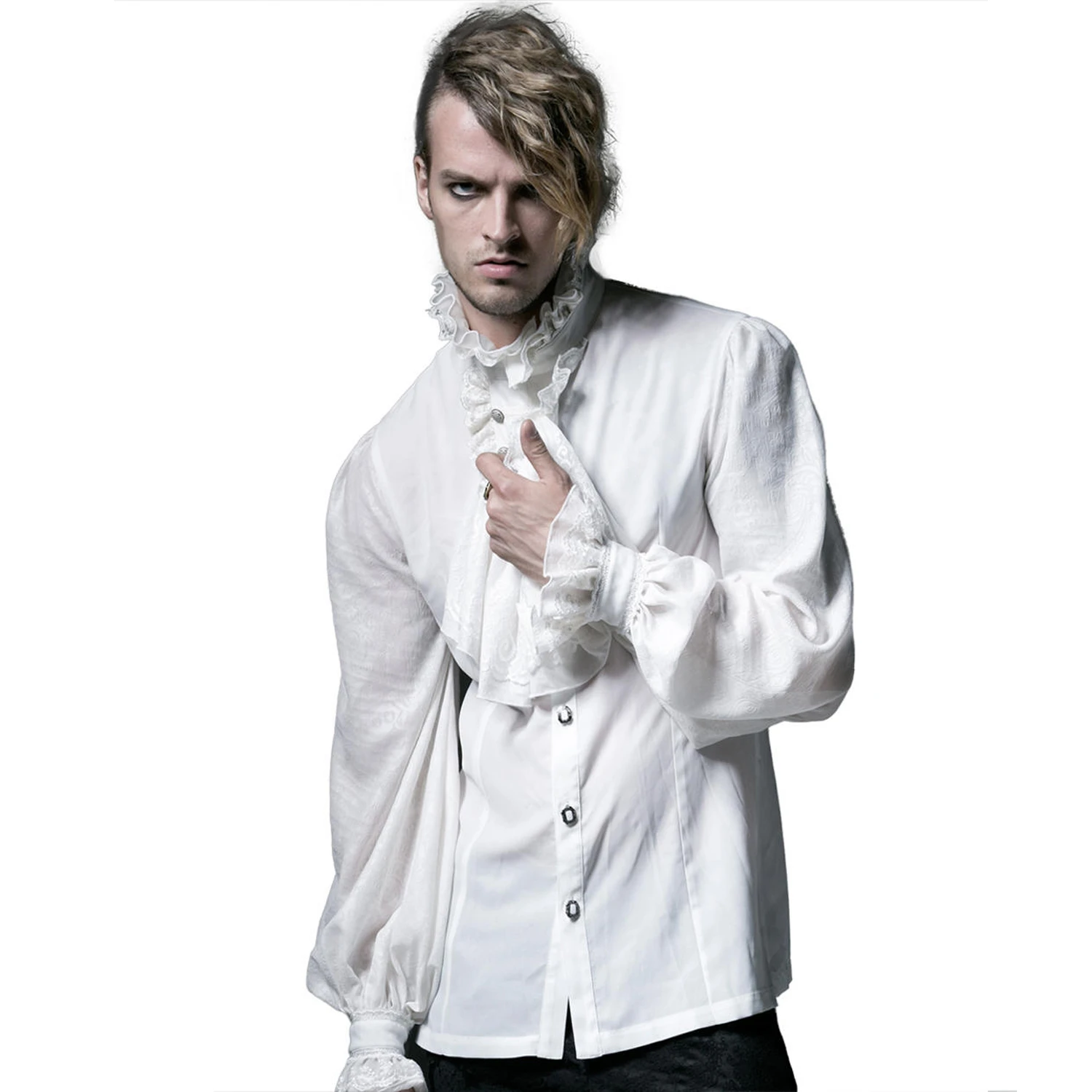 Chemise blanche à manches longues pour hommes de style gothique victorien et aristocrate avec jabot amovible.