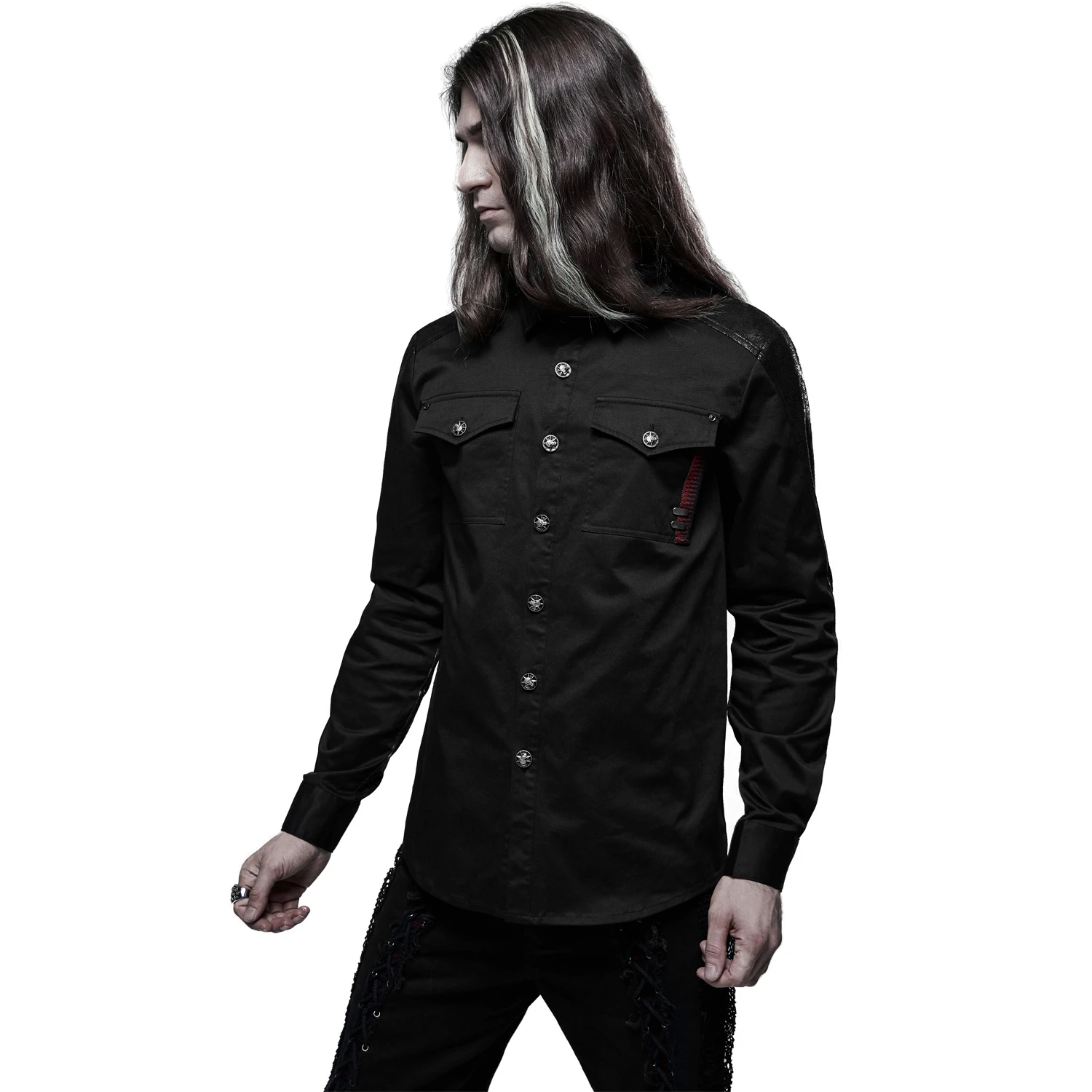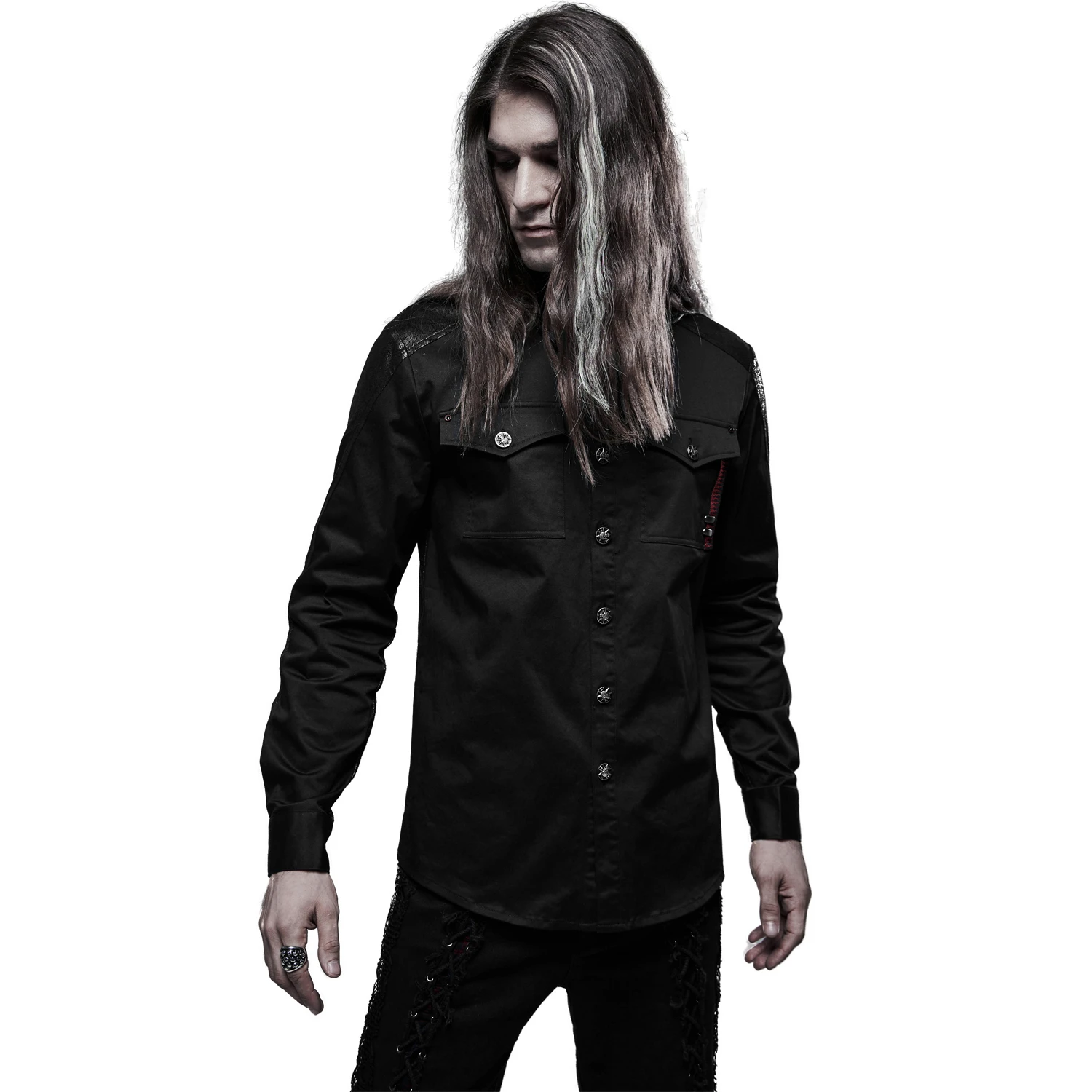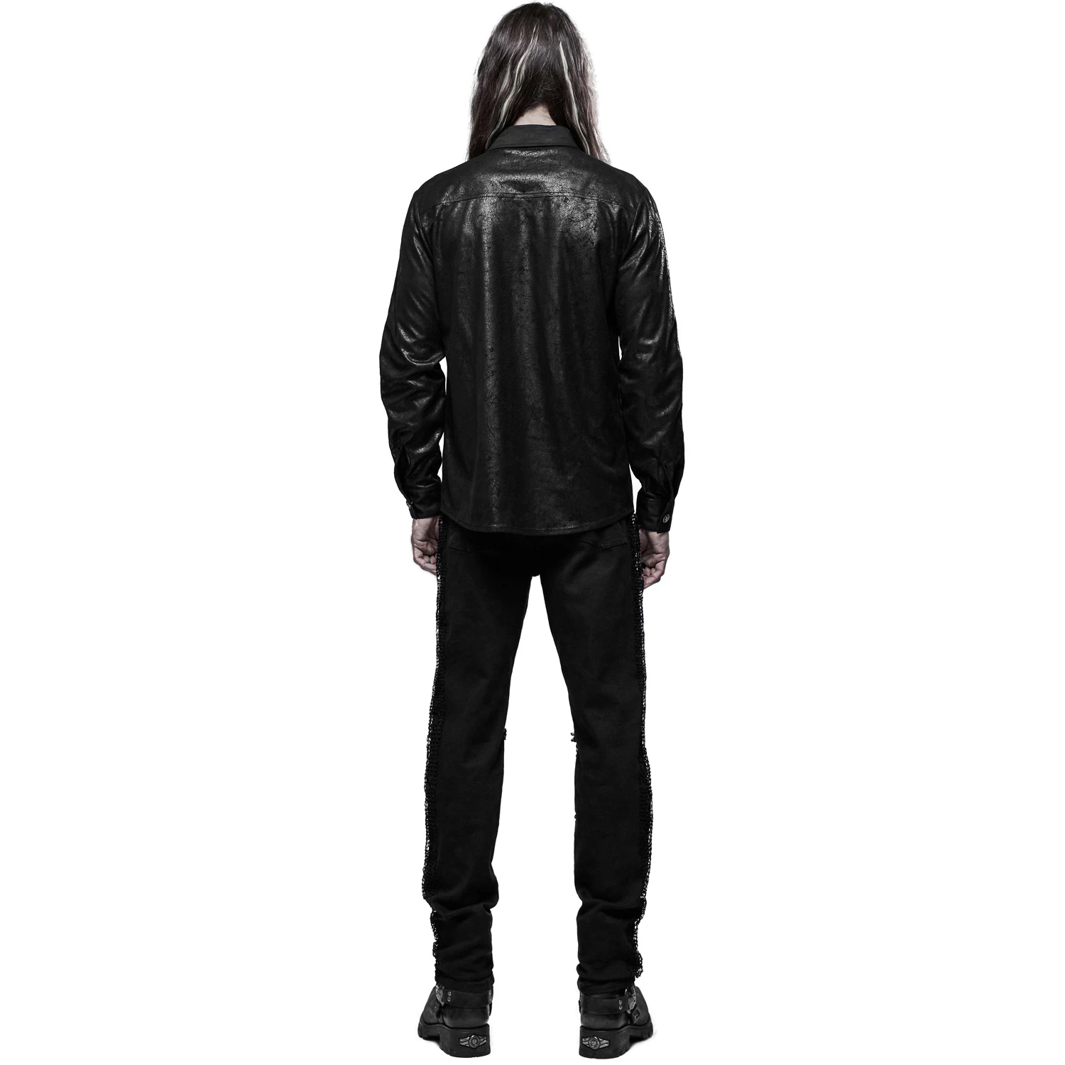 Chemise noire en coton doux et confortable sur le devant et en polyester craquelé effet vieilli dans le dos