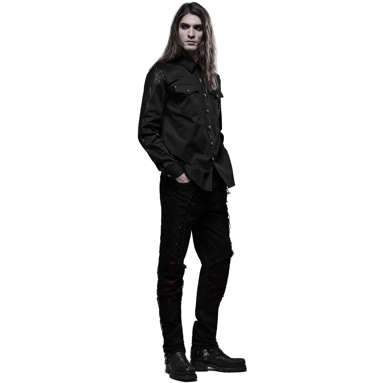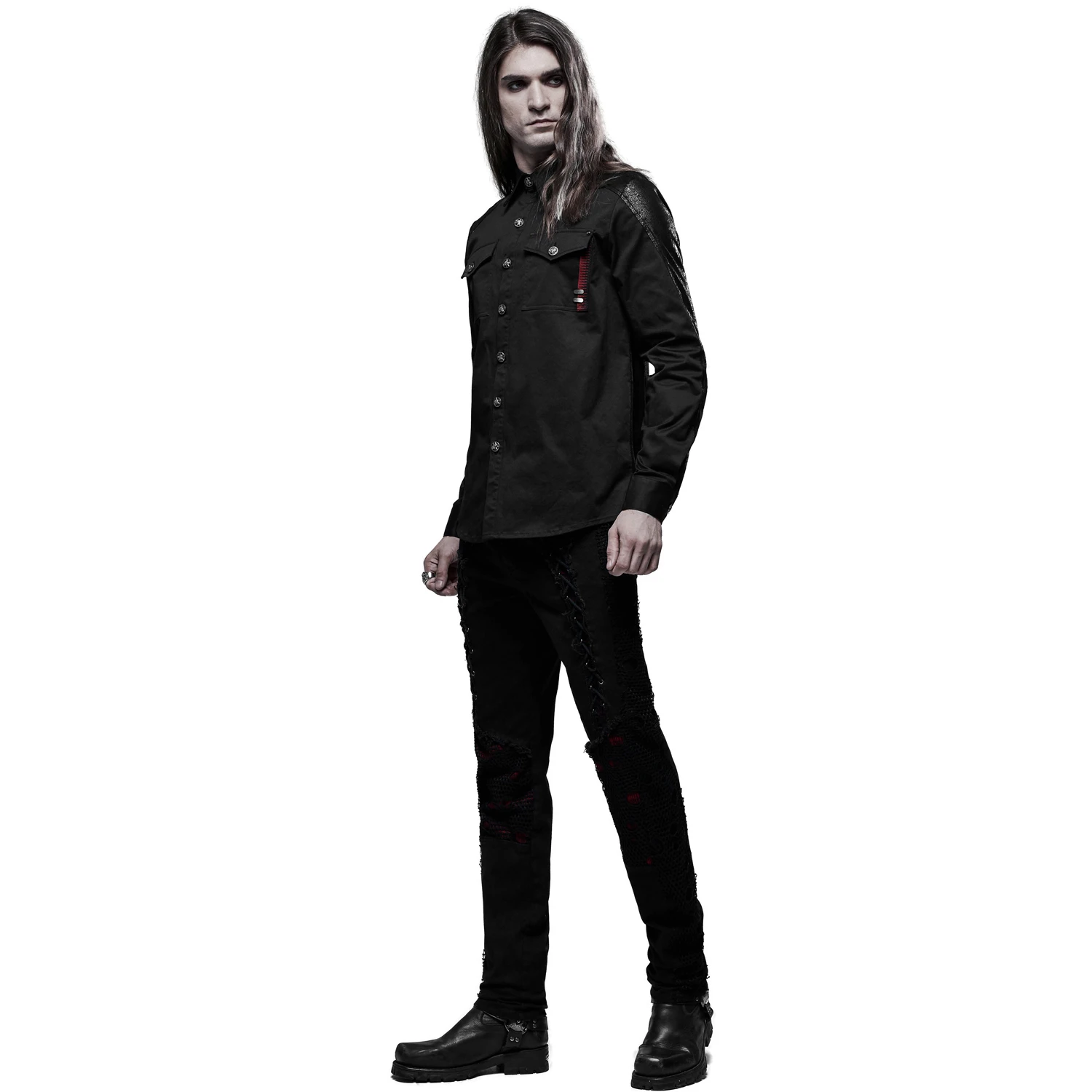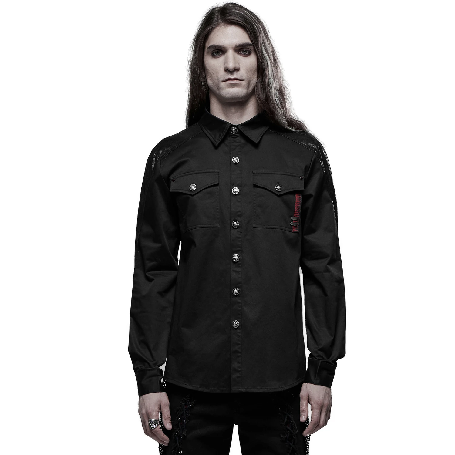 Chemise noire en coton doux et confortable sur le devant et en polyester craquelé effet vieilli dans le dos