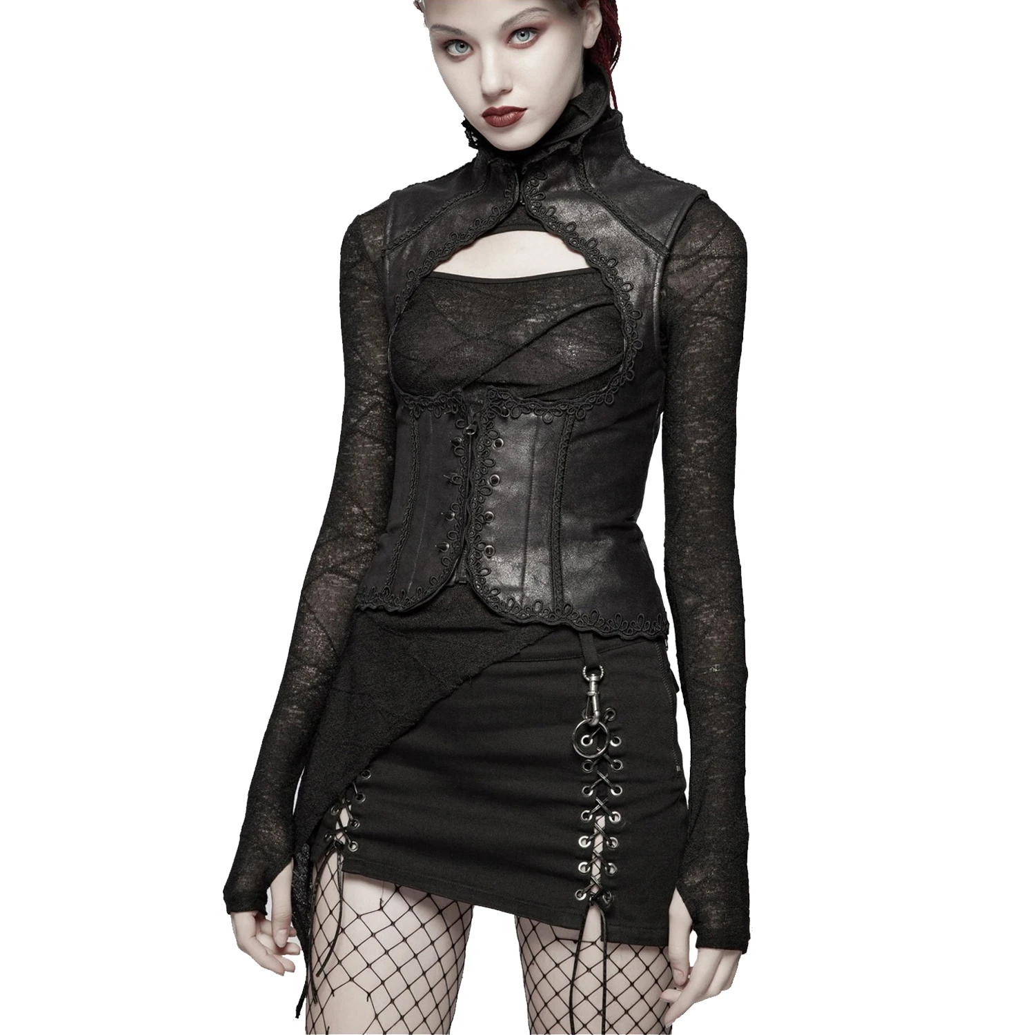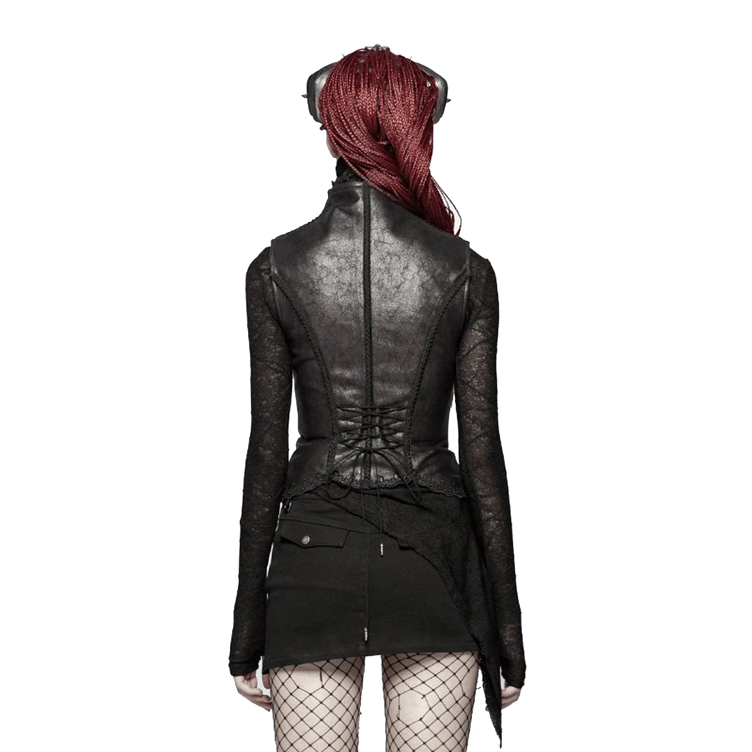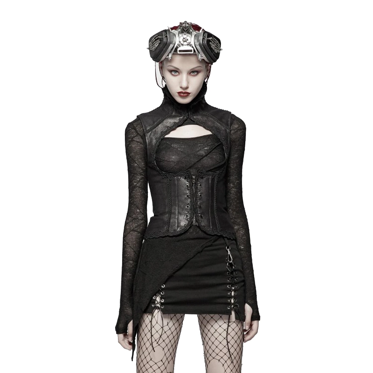 Top noir gothique pour femmes avec bretelles et laçage dans le dos.