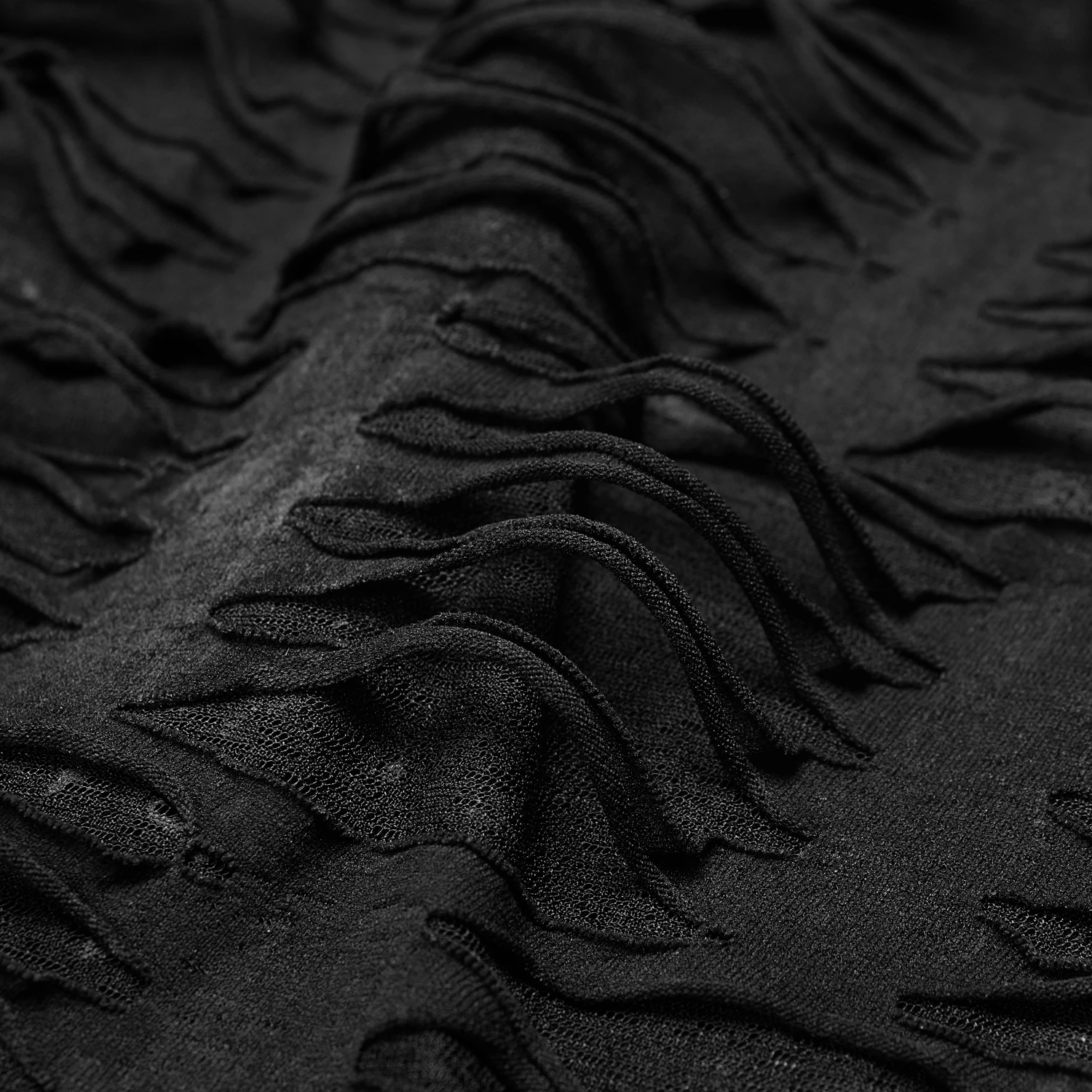 • Torse et capuche en tissu superposé, comprenant une base légère et une surcouche à effet déchiqueté avec des trous aléatoires