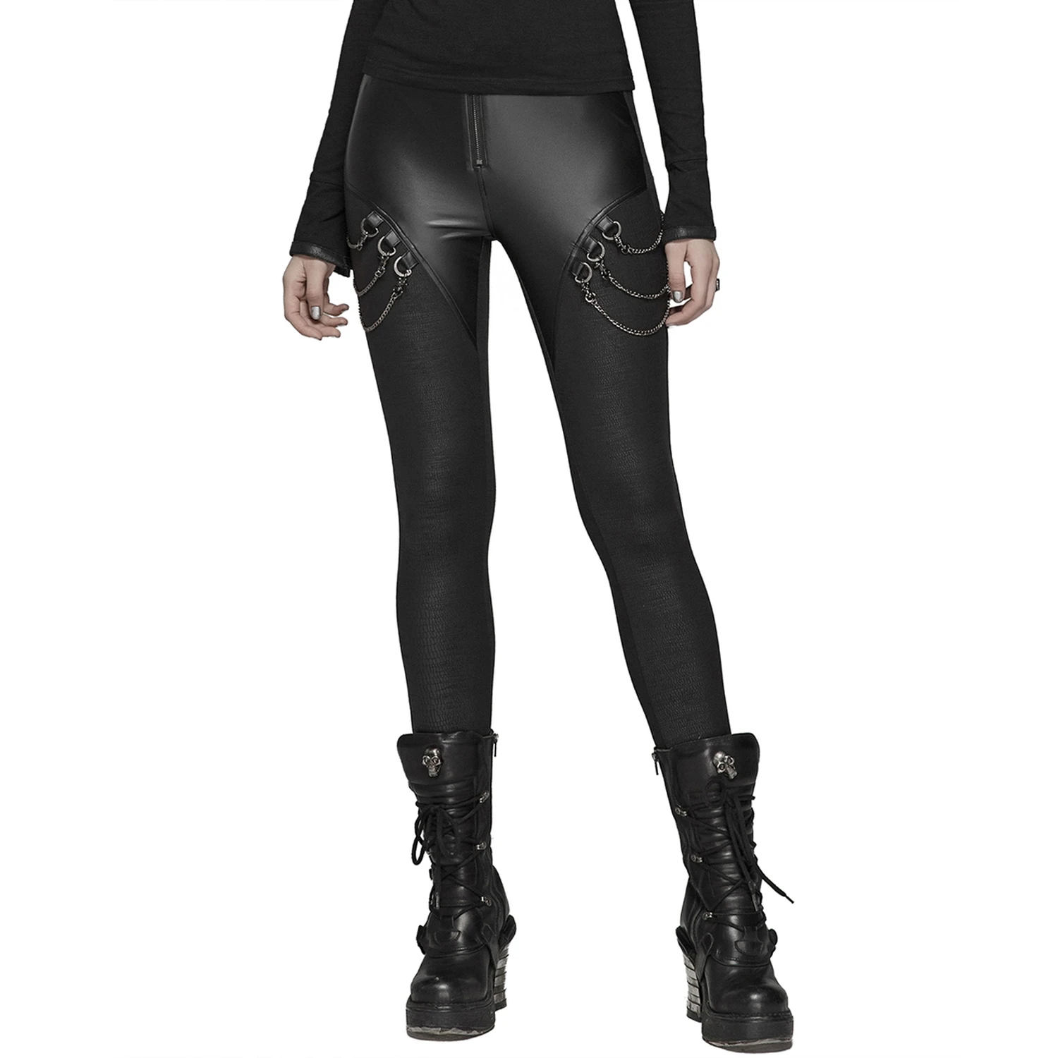 • Languette en similicuir à fermeture pression sur la ceinture avec fermeture éclair apparente.