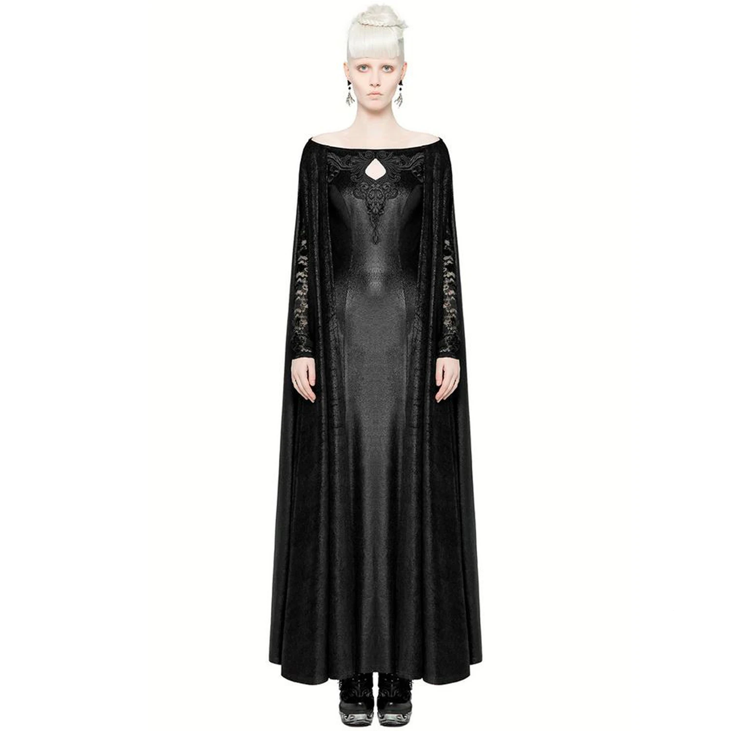 Robe longue à large cape et manches longues de style gothique victorien