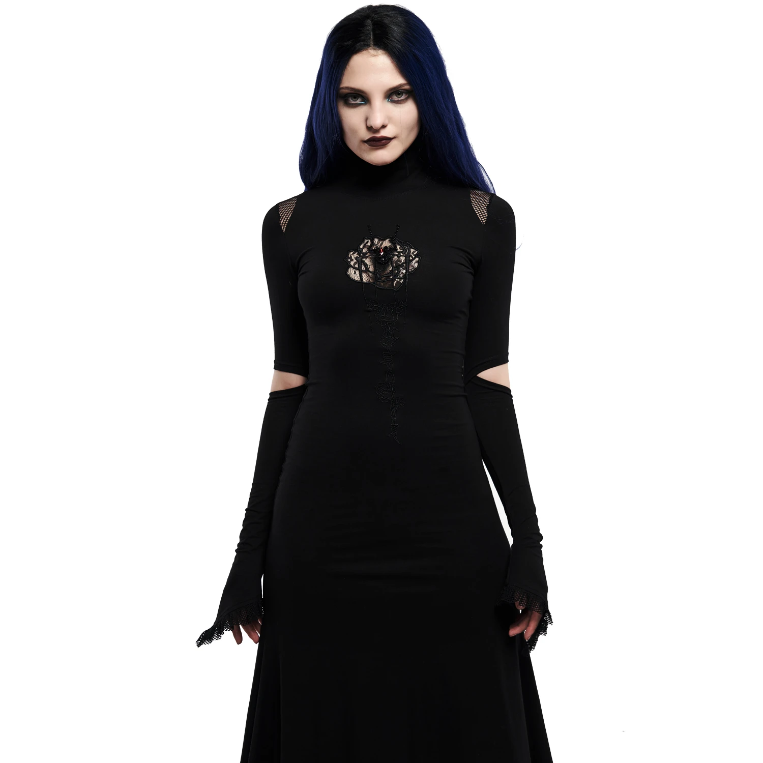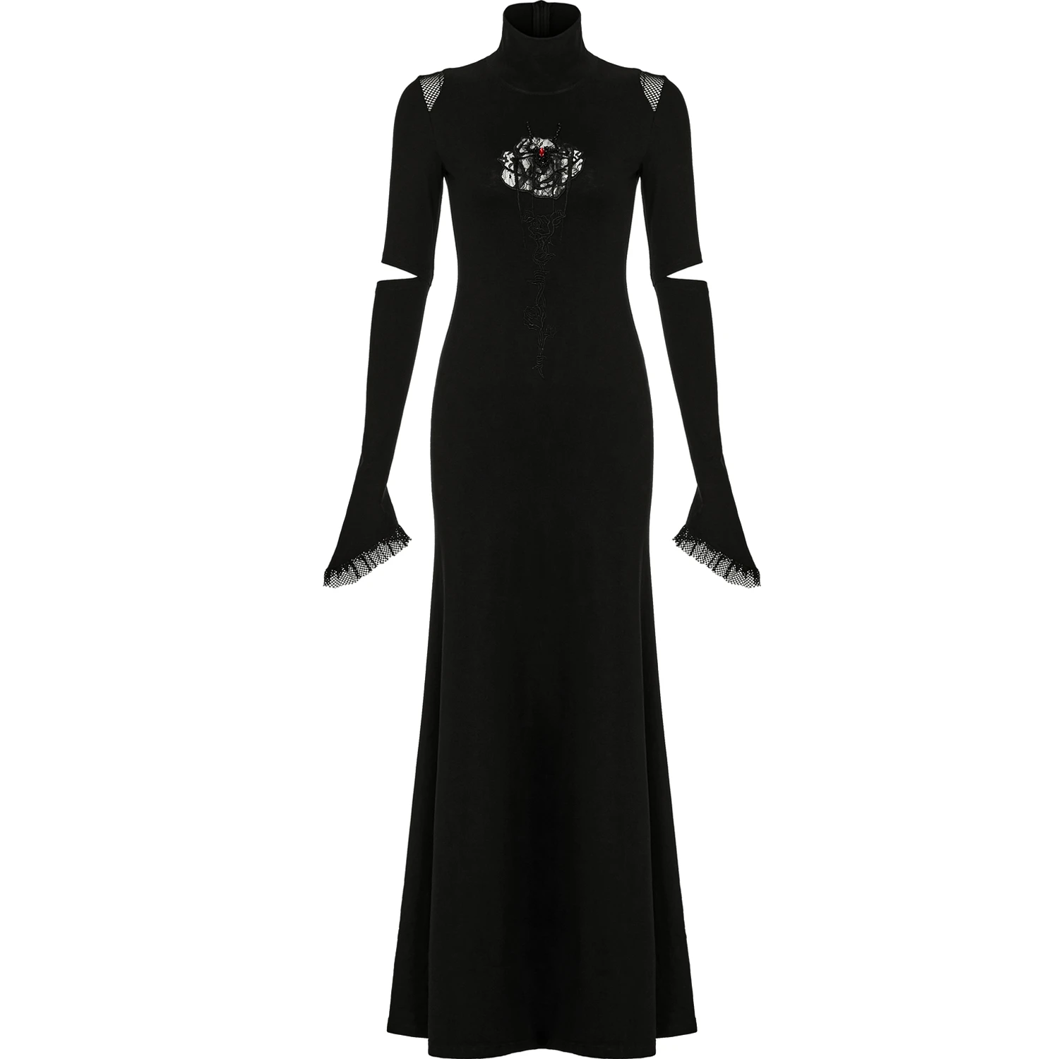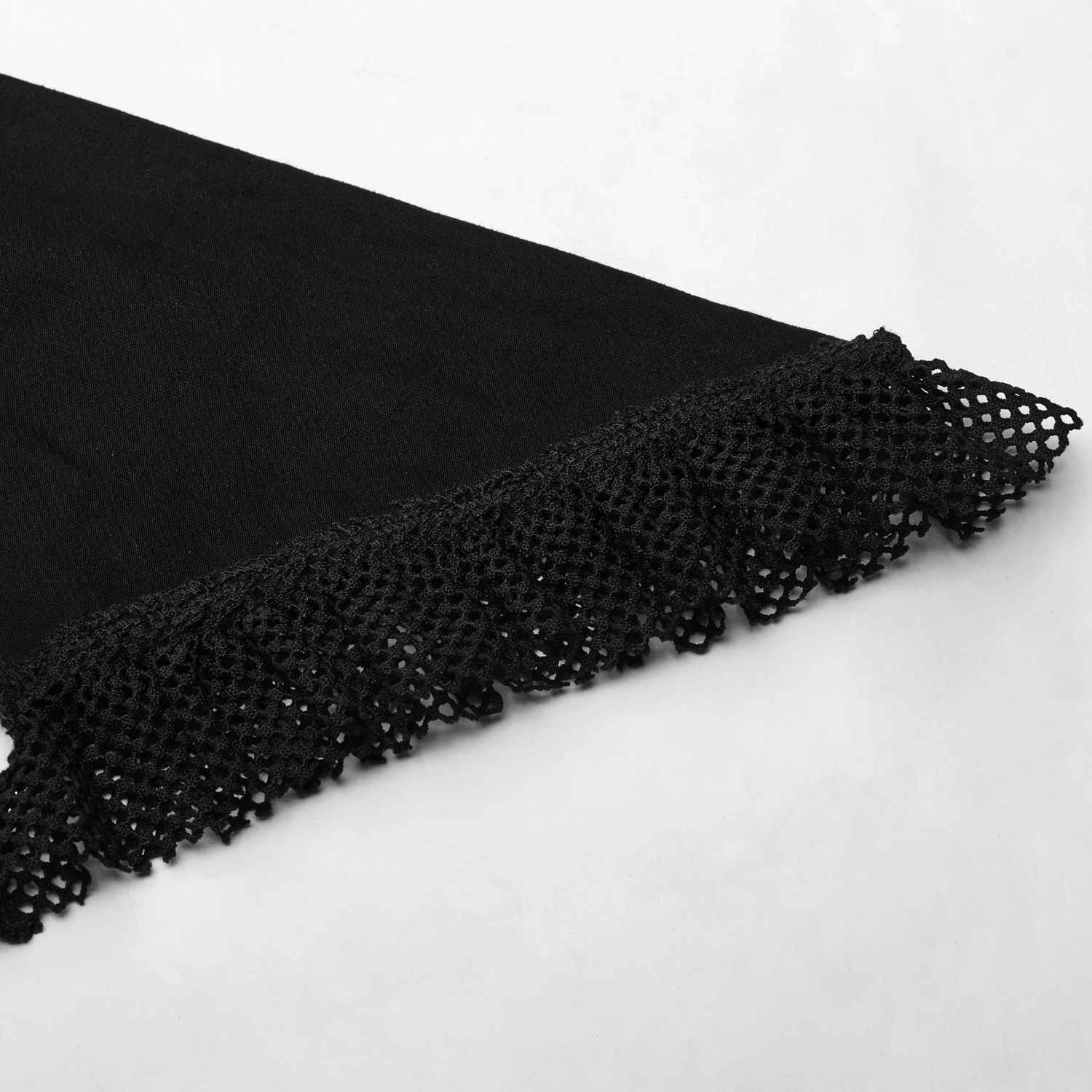 • Poignets évasés et pointus avec une bordure à volants en résille