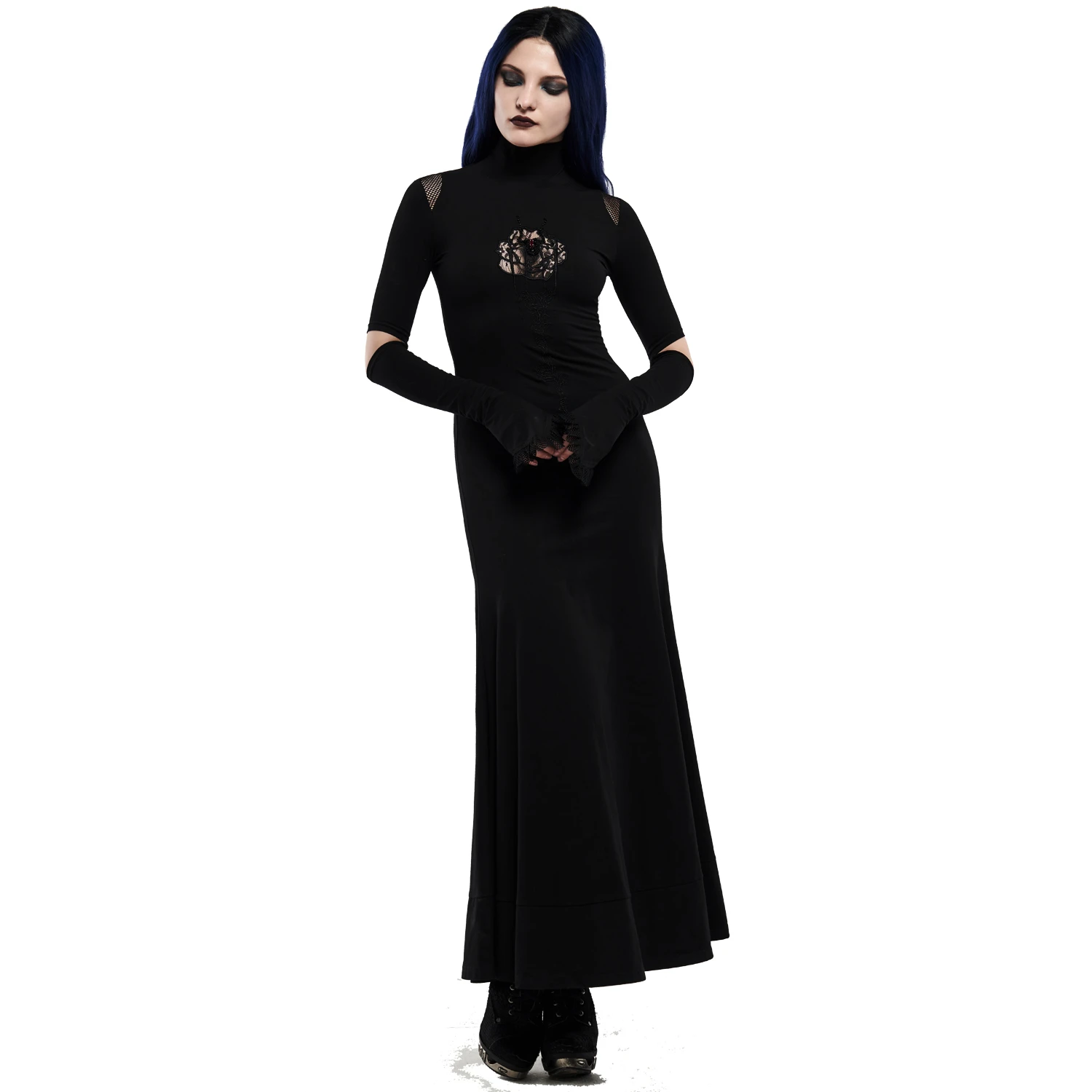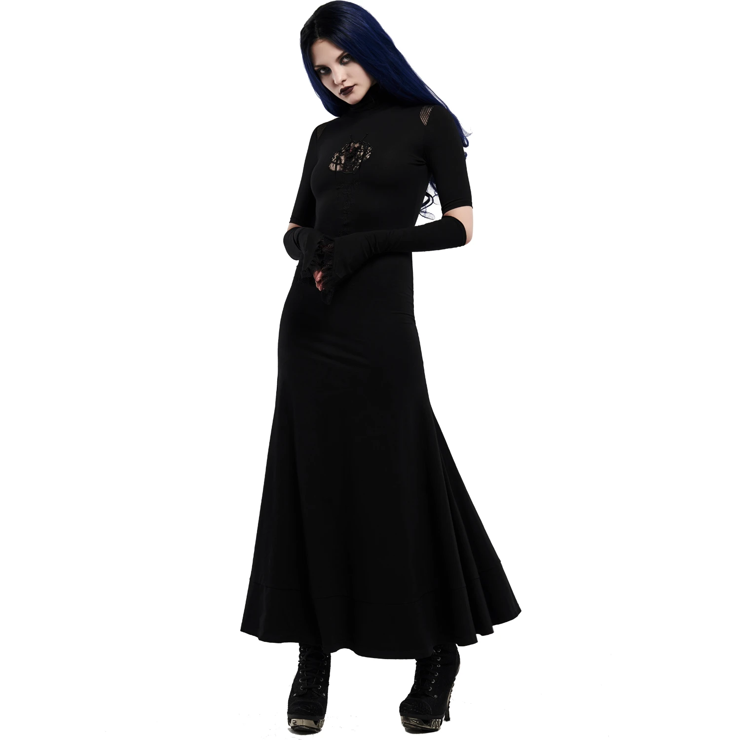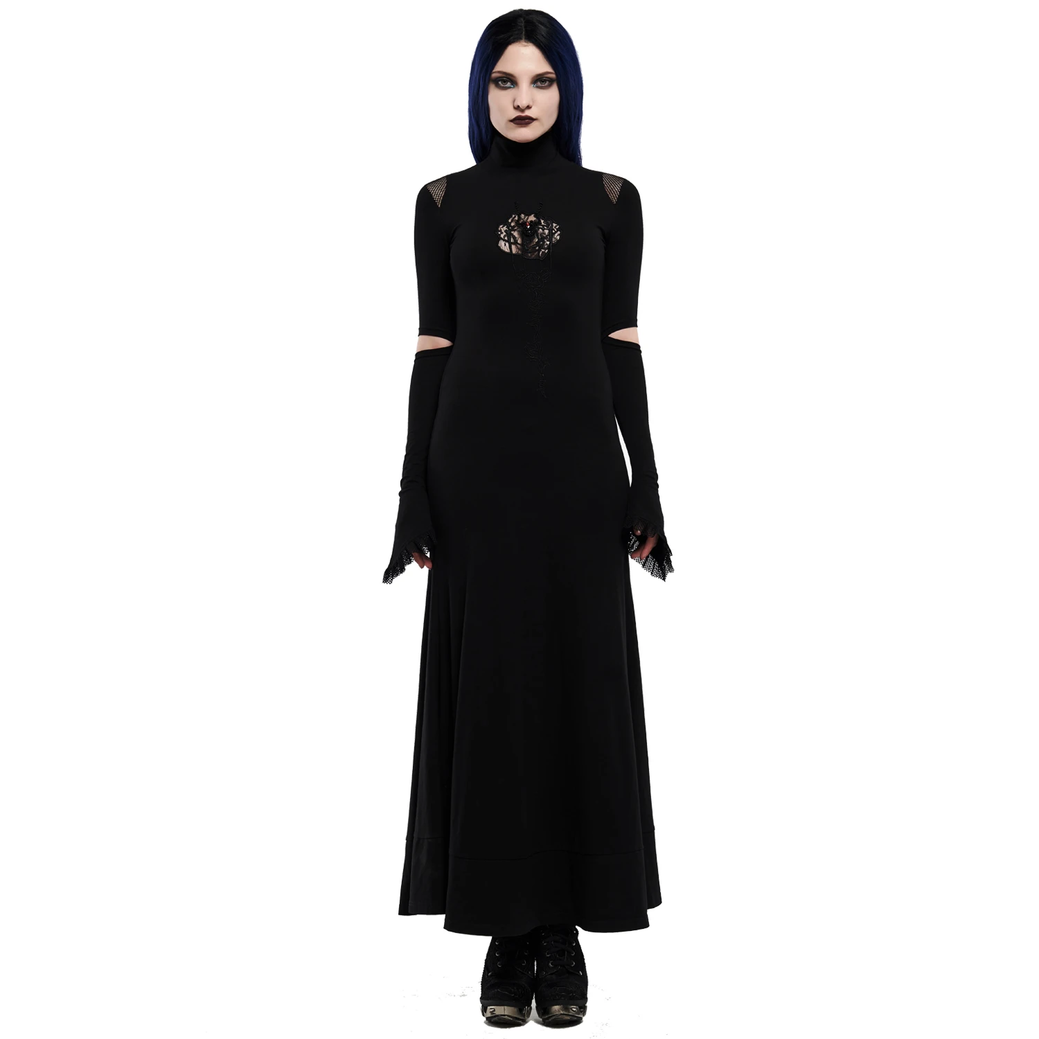 • Poignets évasés et pointus avec une bordure à volants en résille