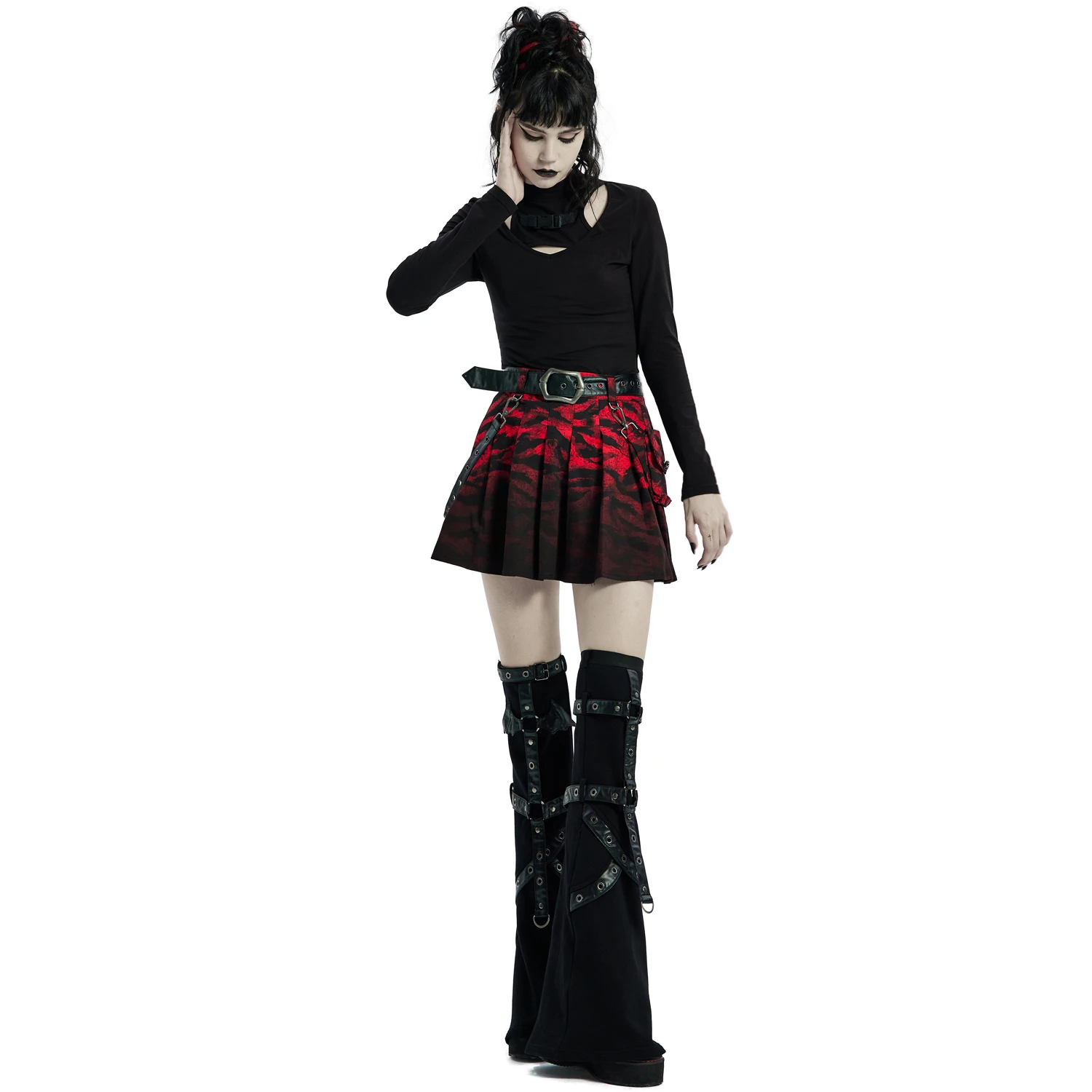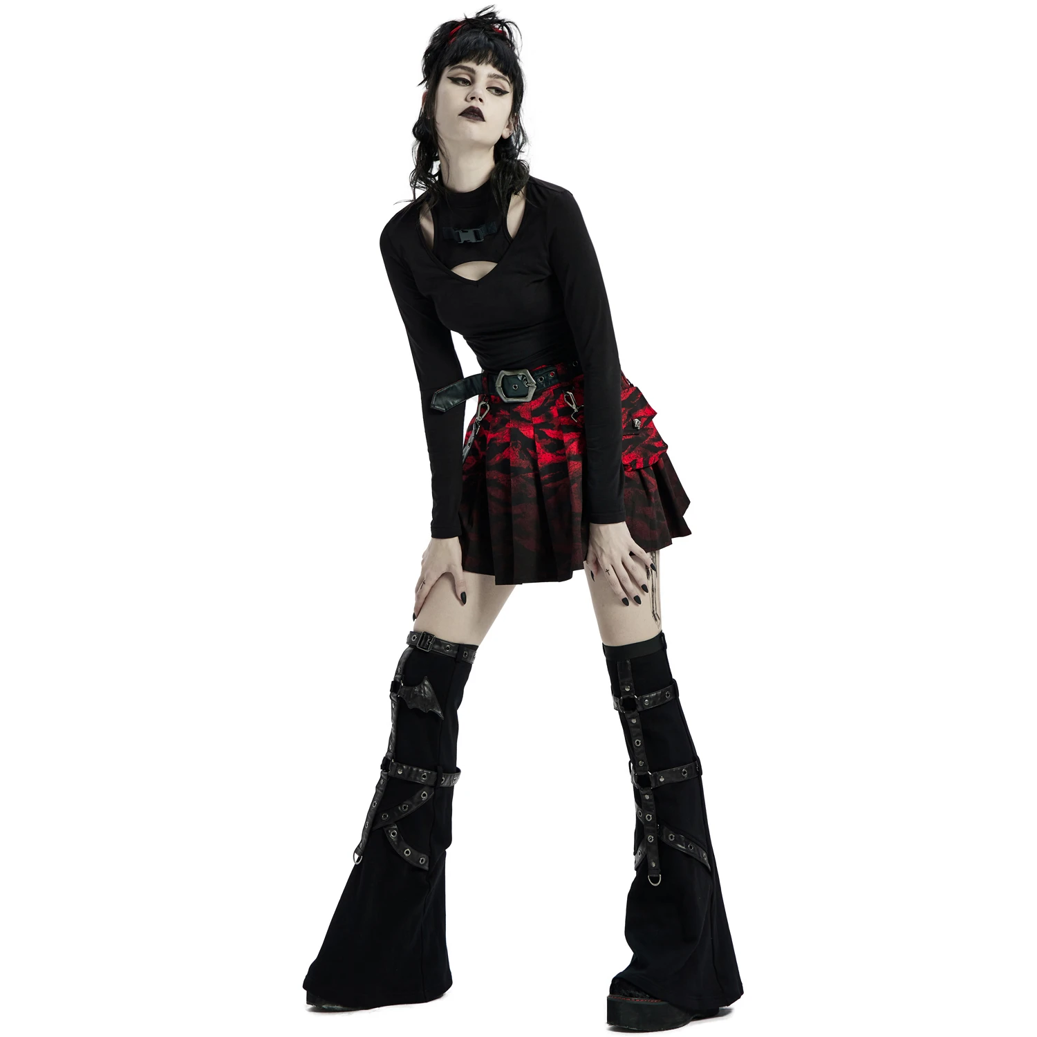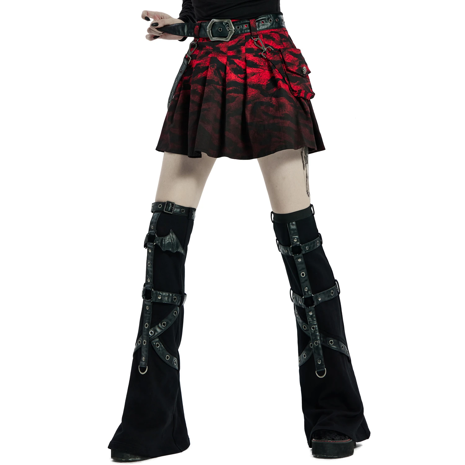 • Sac amovible sur le côté gauche fermé par un bouton personnalisé Punk Rave en forme de skull