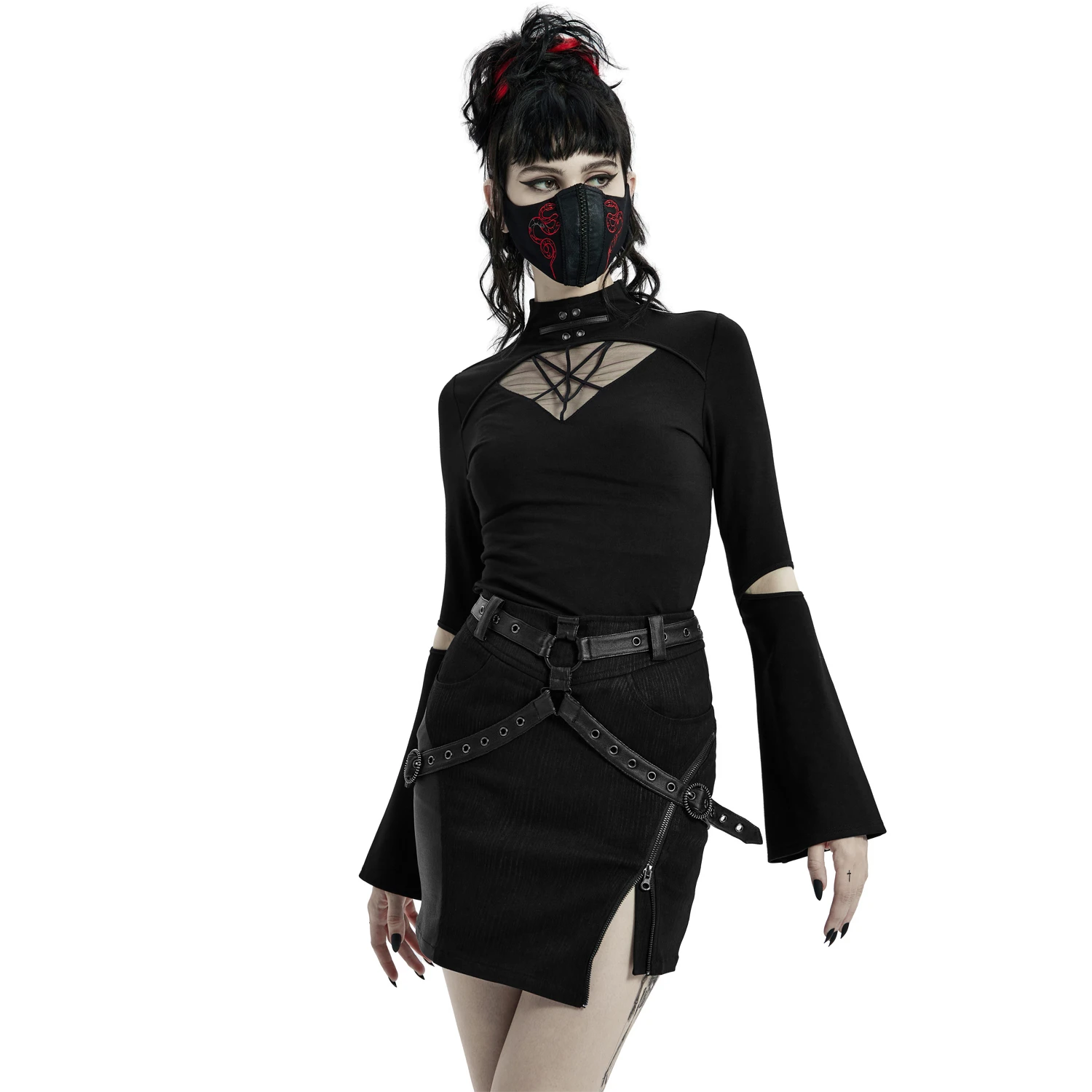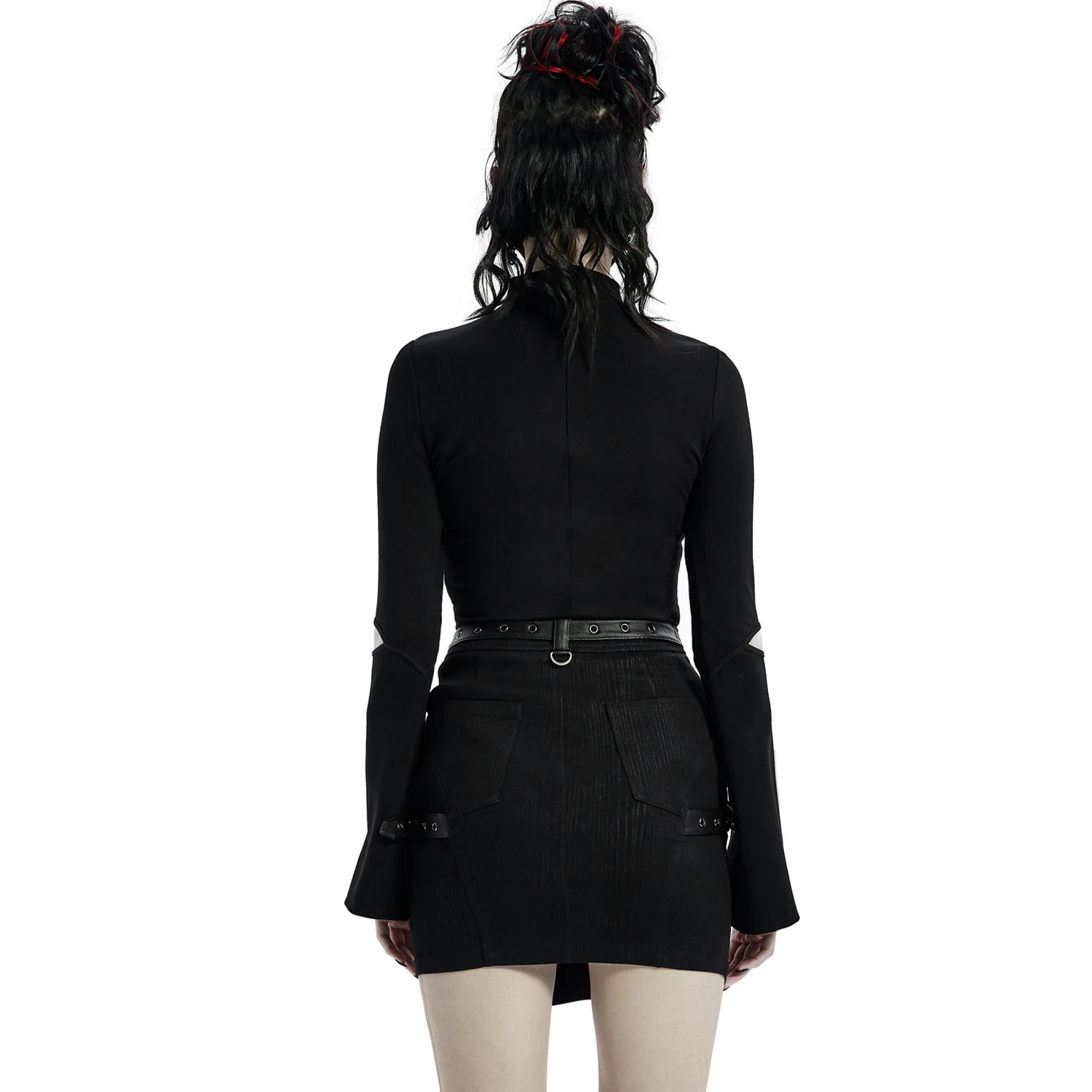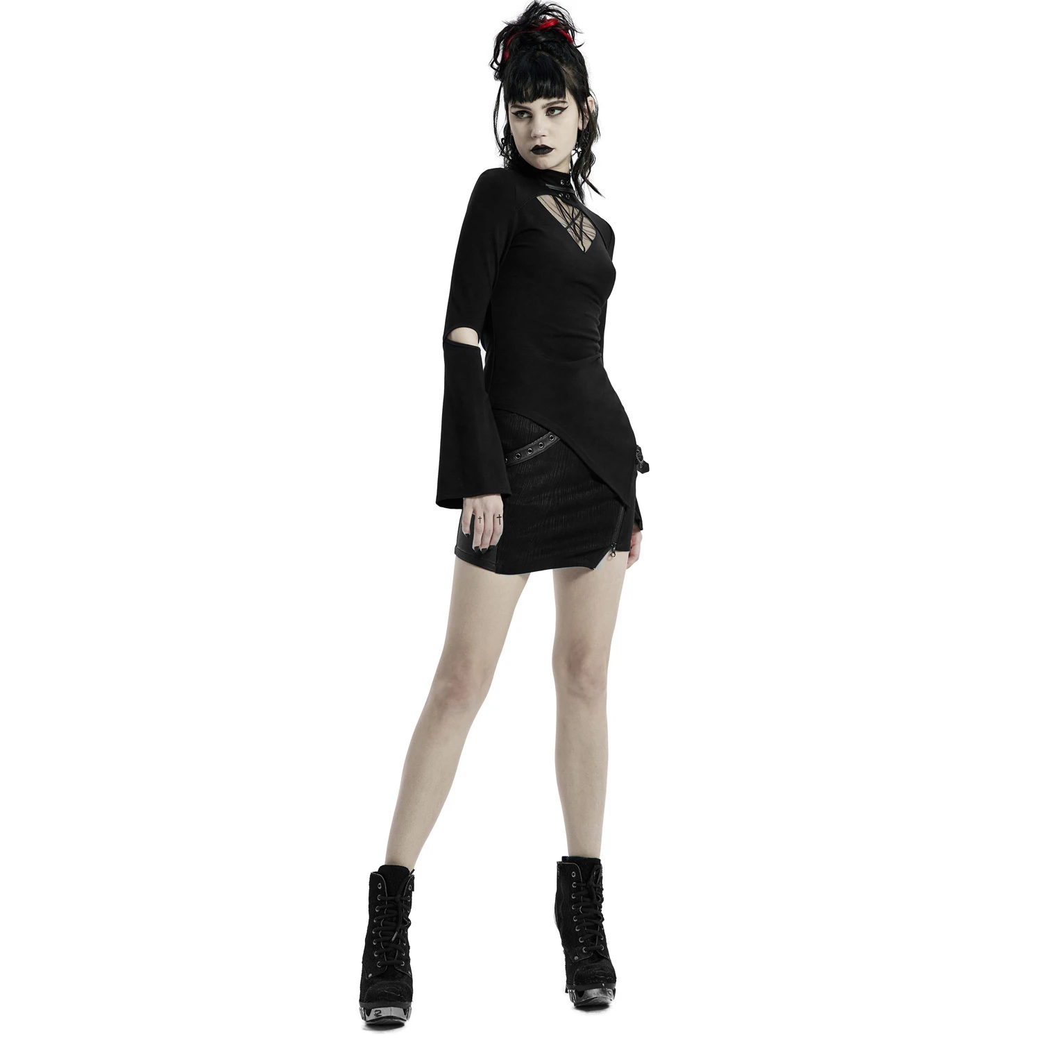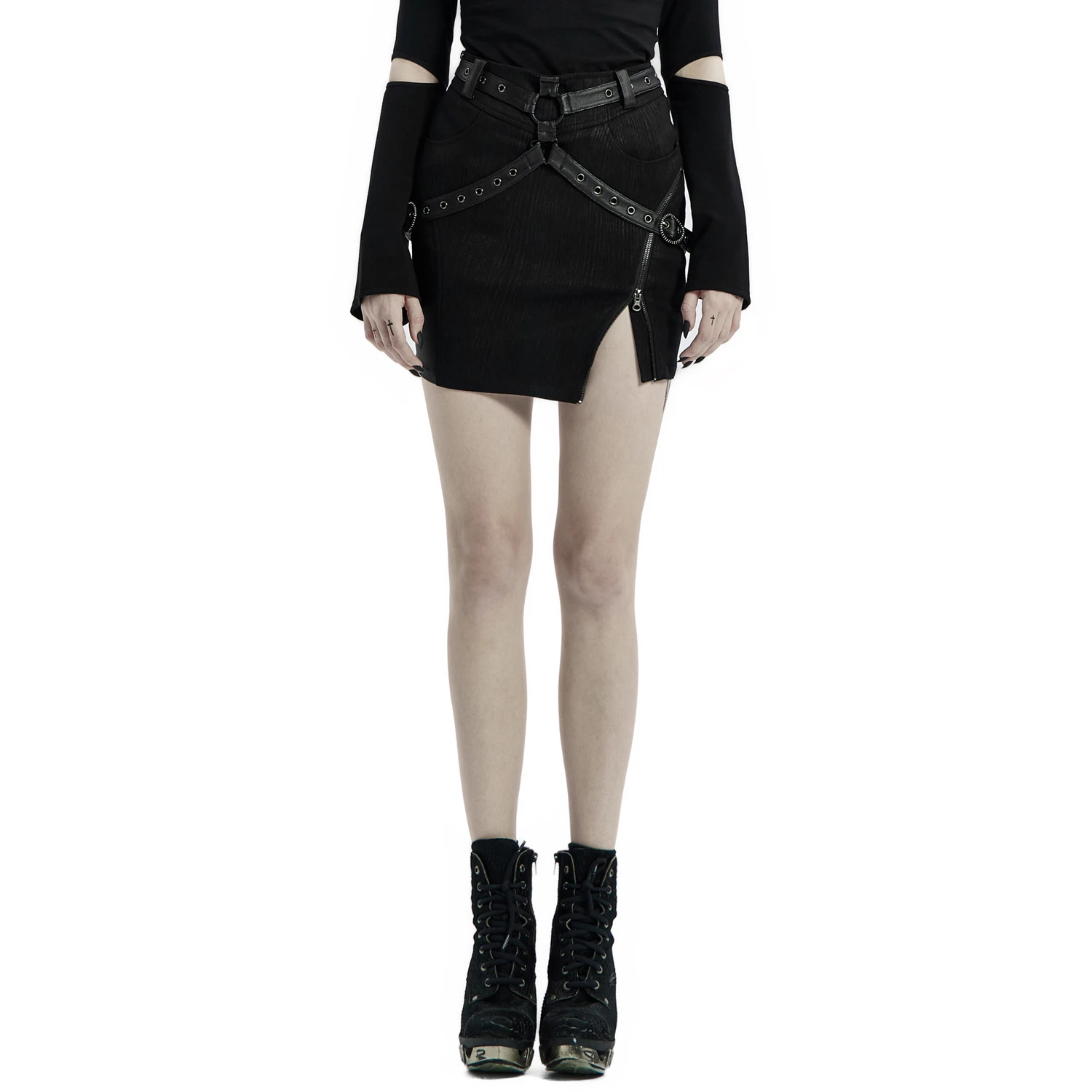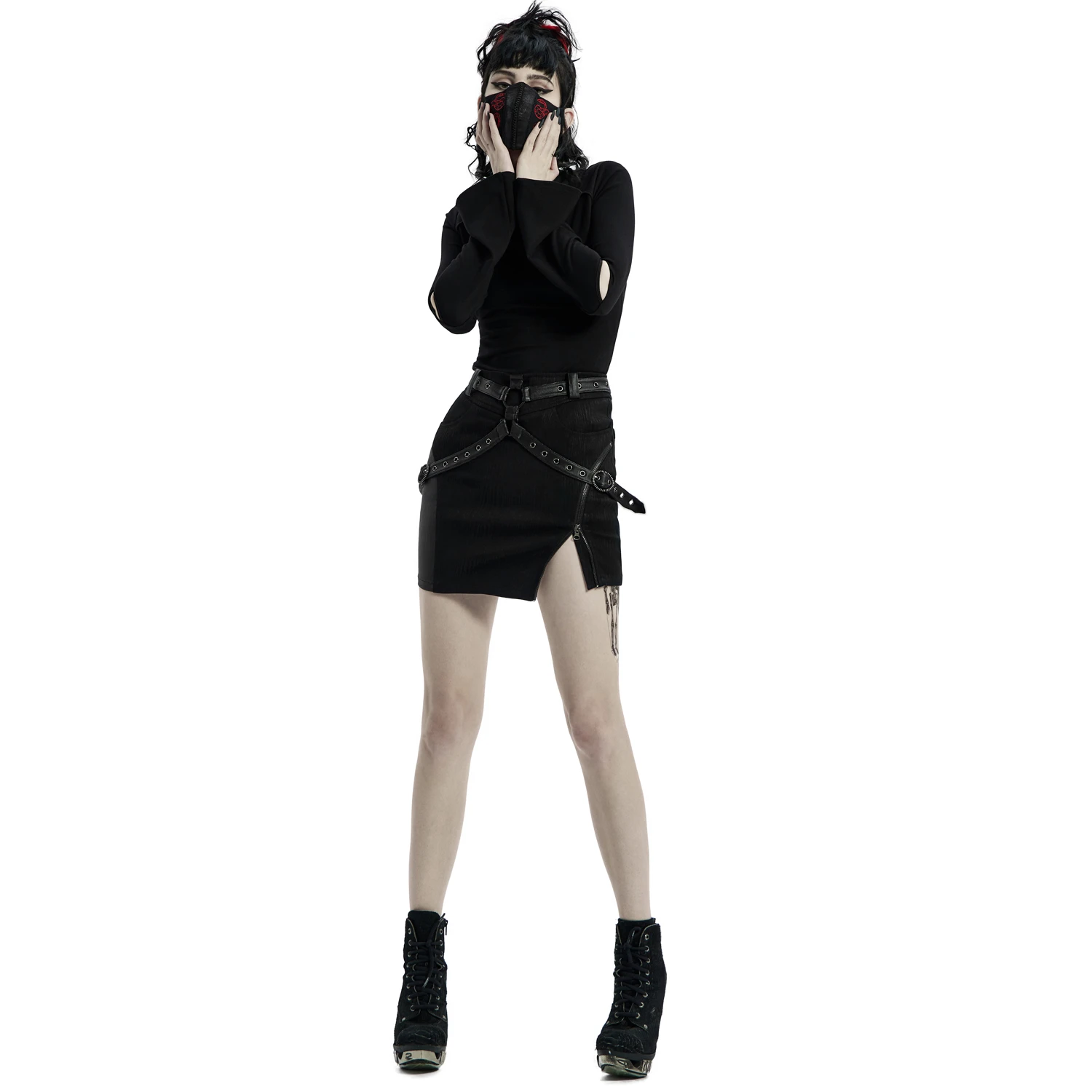 • Fermeture à glissière décorative, permettant de porter la jupe plus ou moins fendue