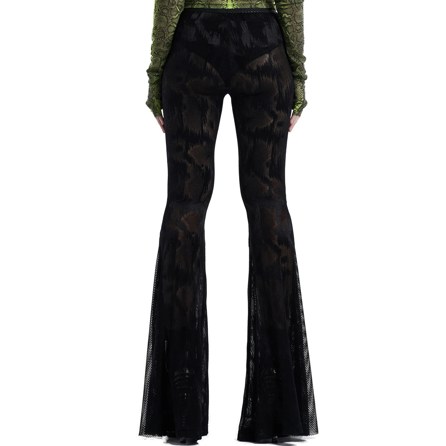 • Evasé au bas, avec de la résille unie des côtés des jambes