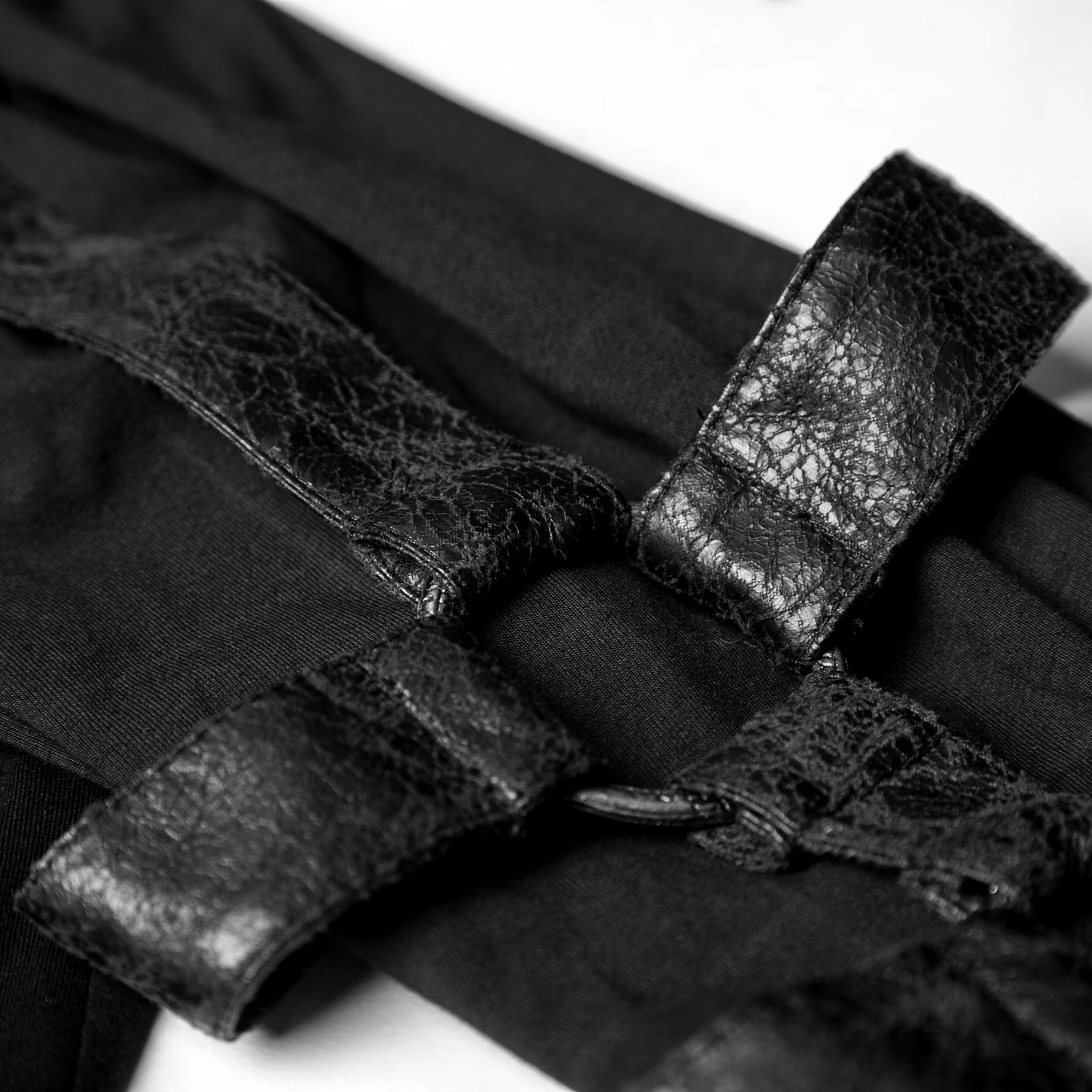 • Empiècements en similicuir noir grainé et vieilli avec anneaux sur les épaules
