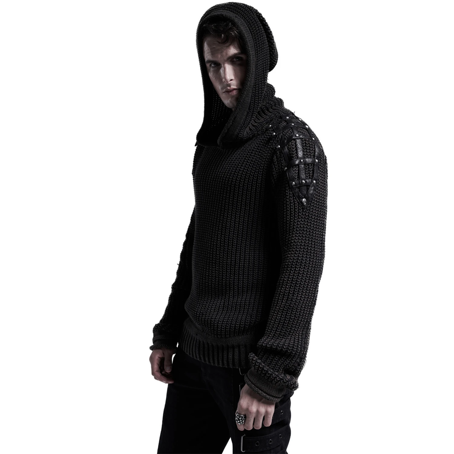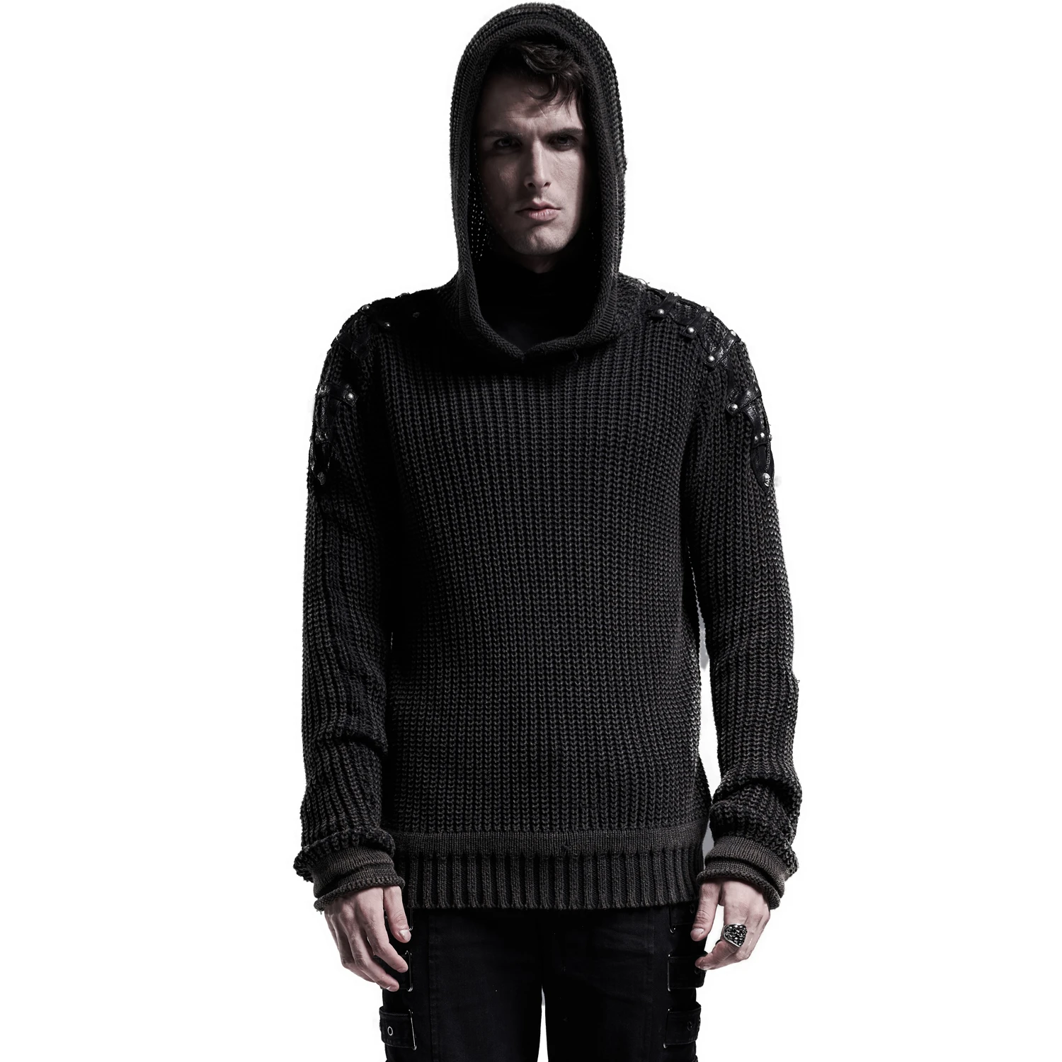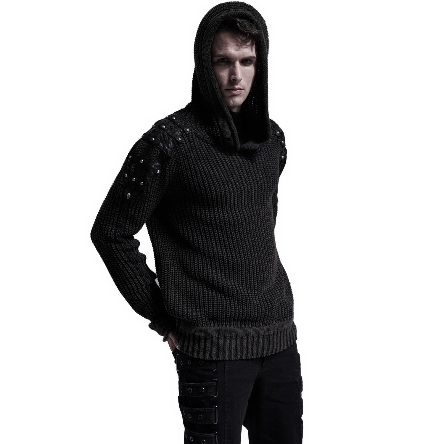Sweat à capuche noir et cuivre à manches longues avec détails en cuir synthétique.