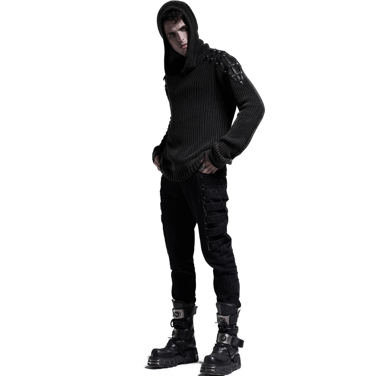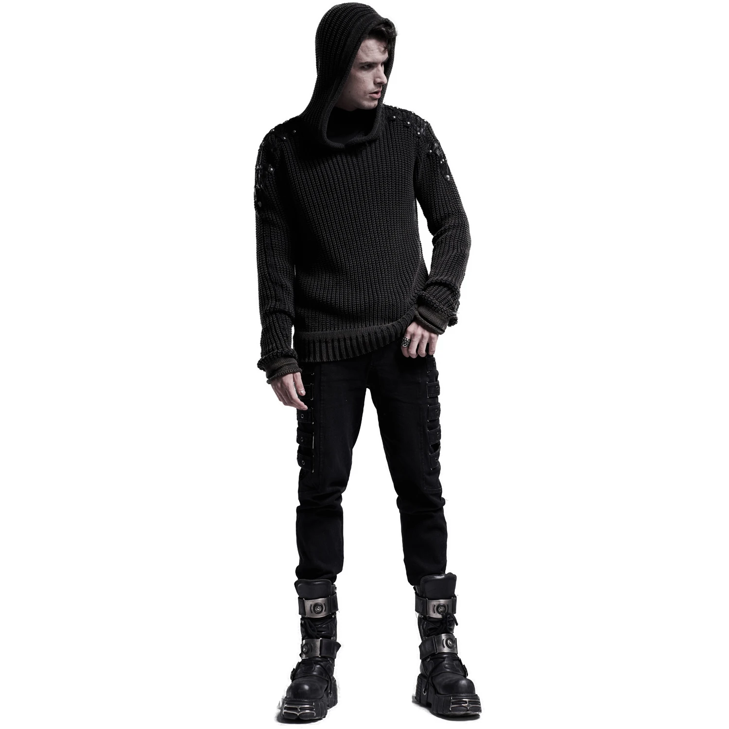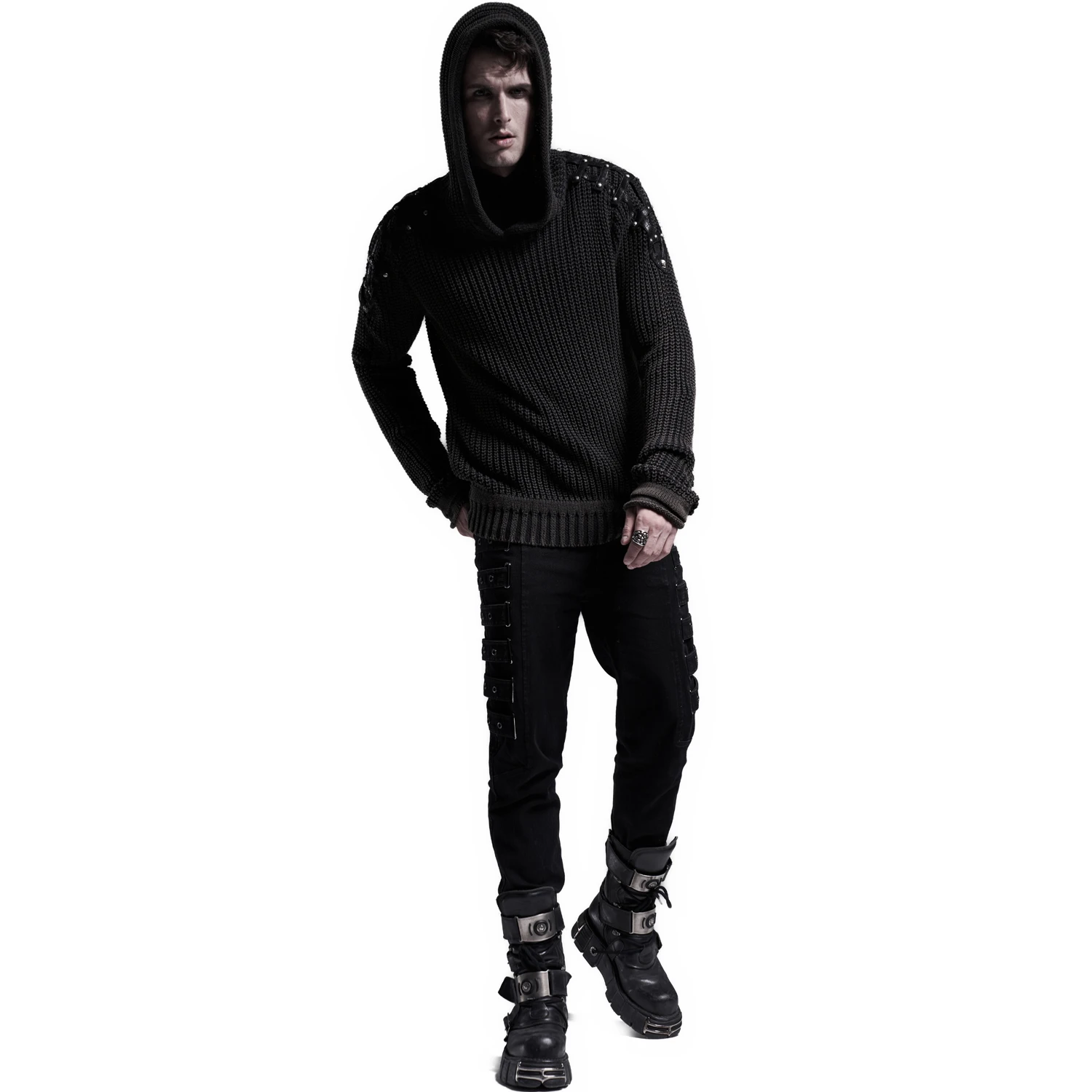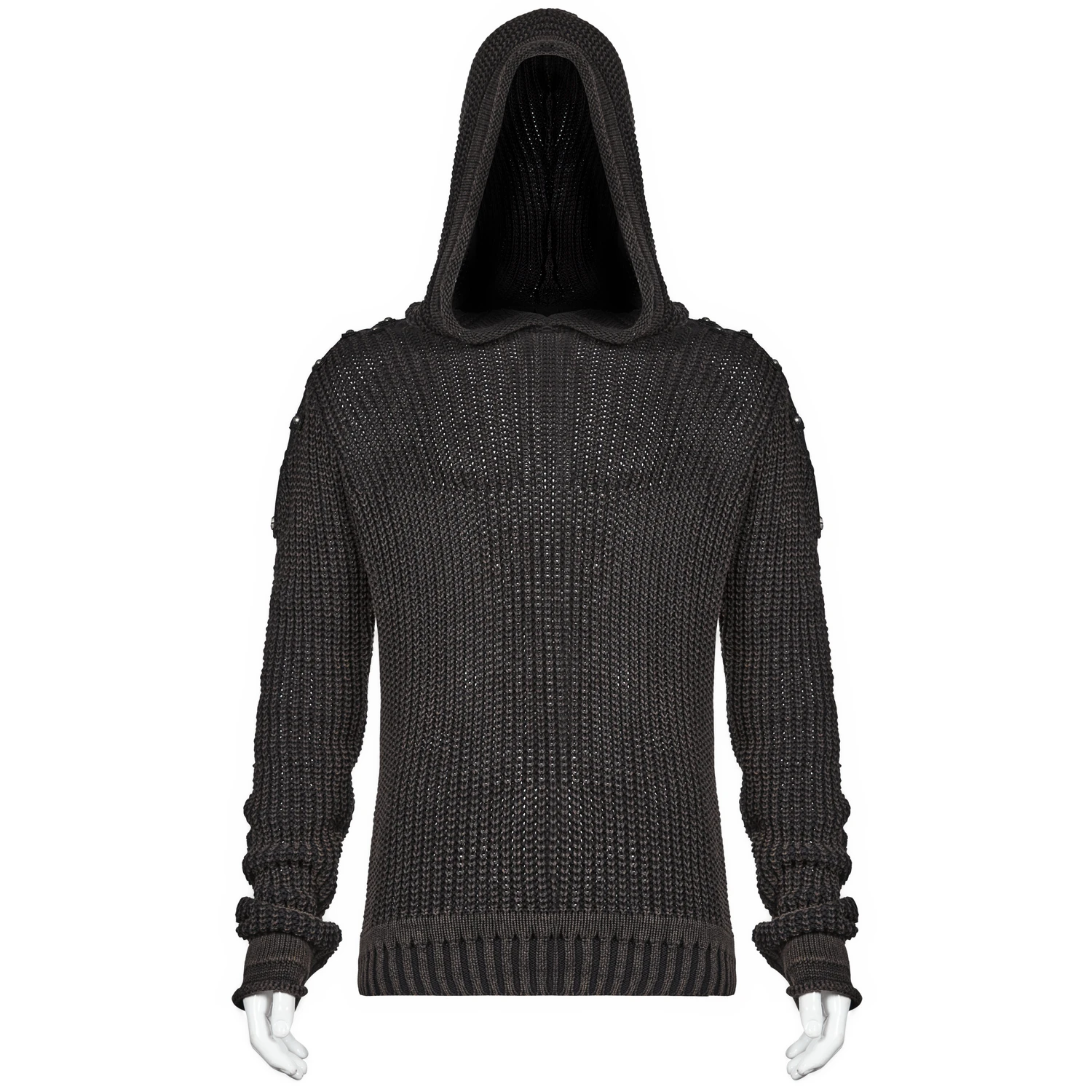 Sweat à capuche noir et cuivre à manches longues avec détails en cuir synthétique.