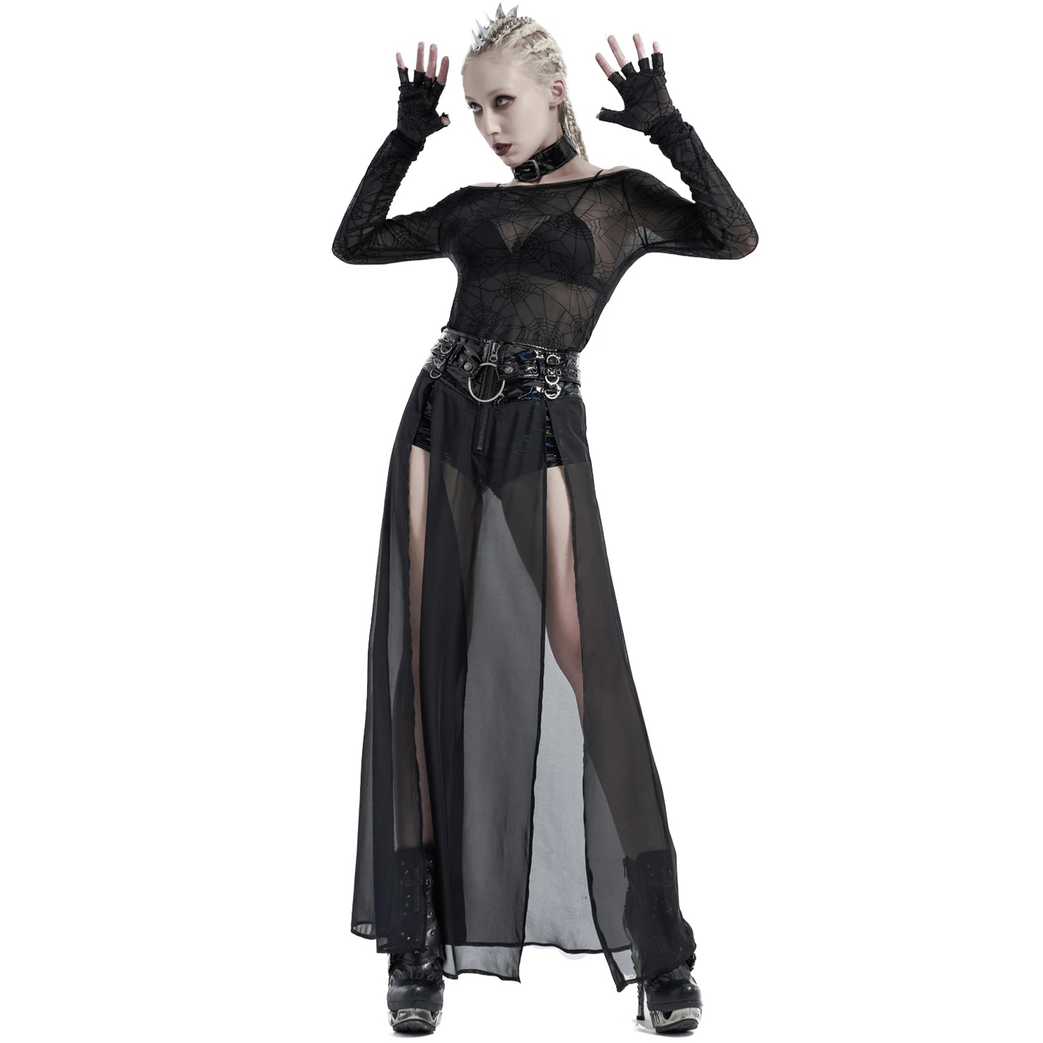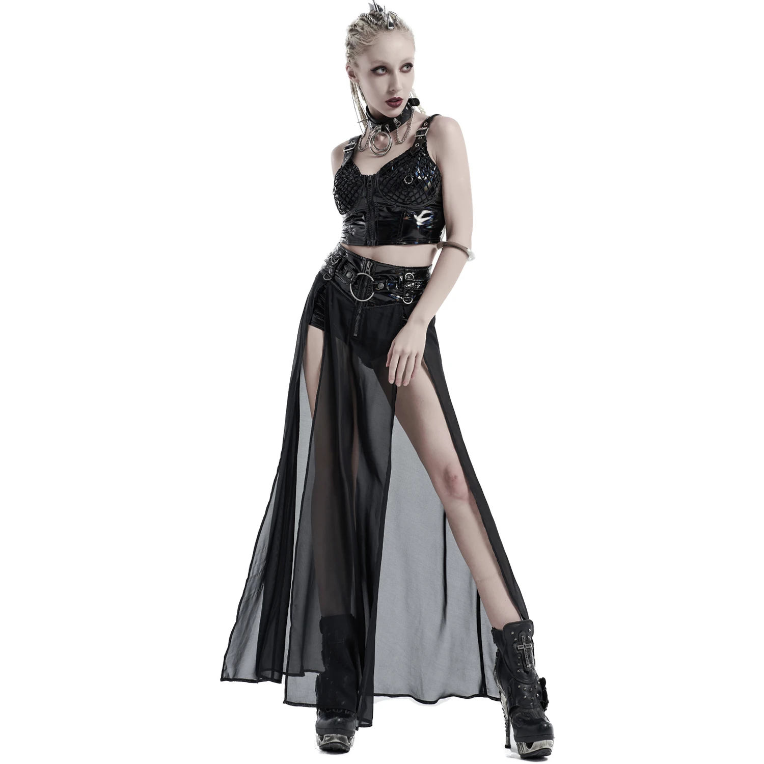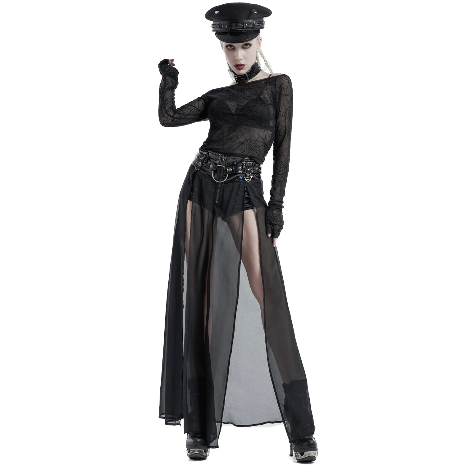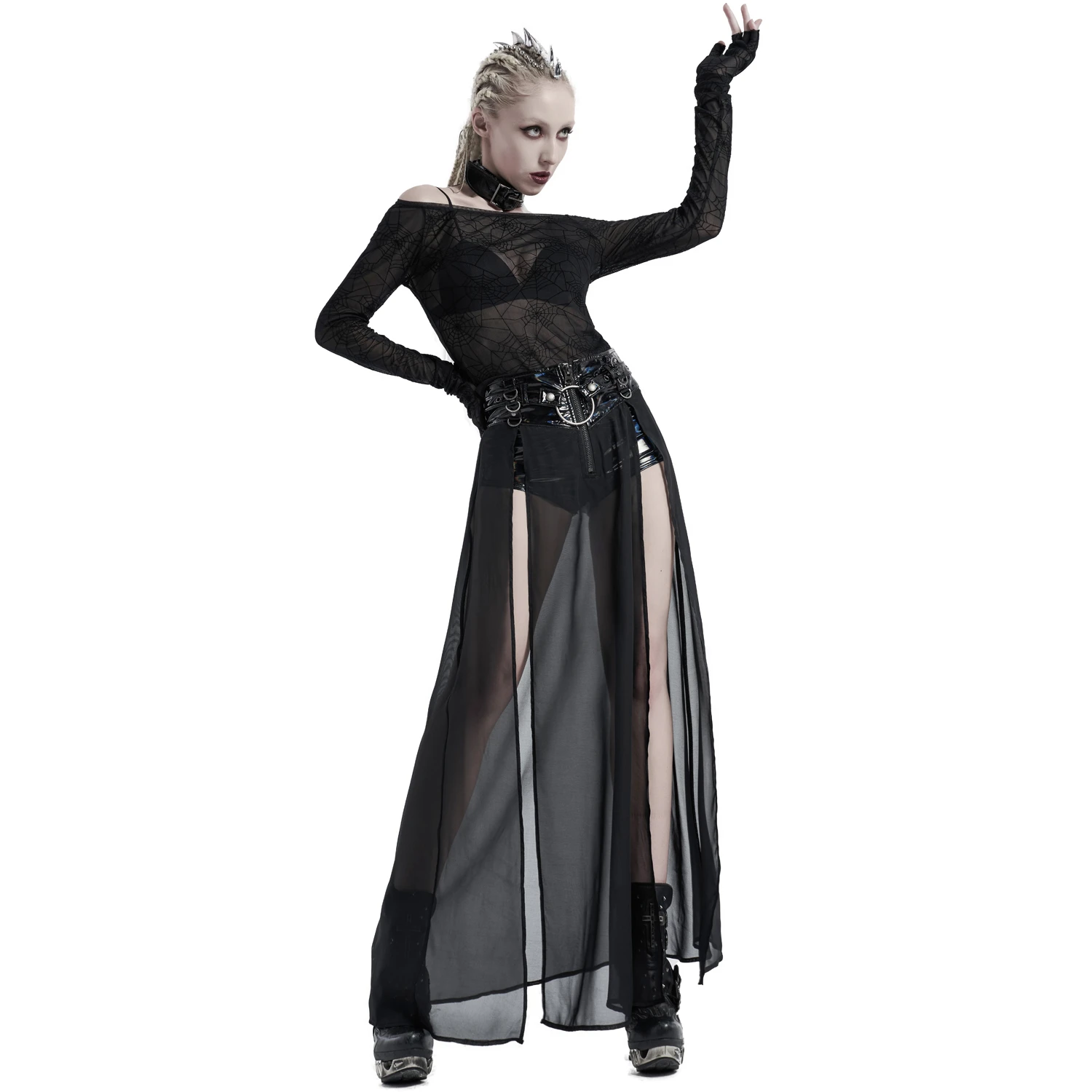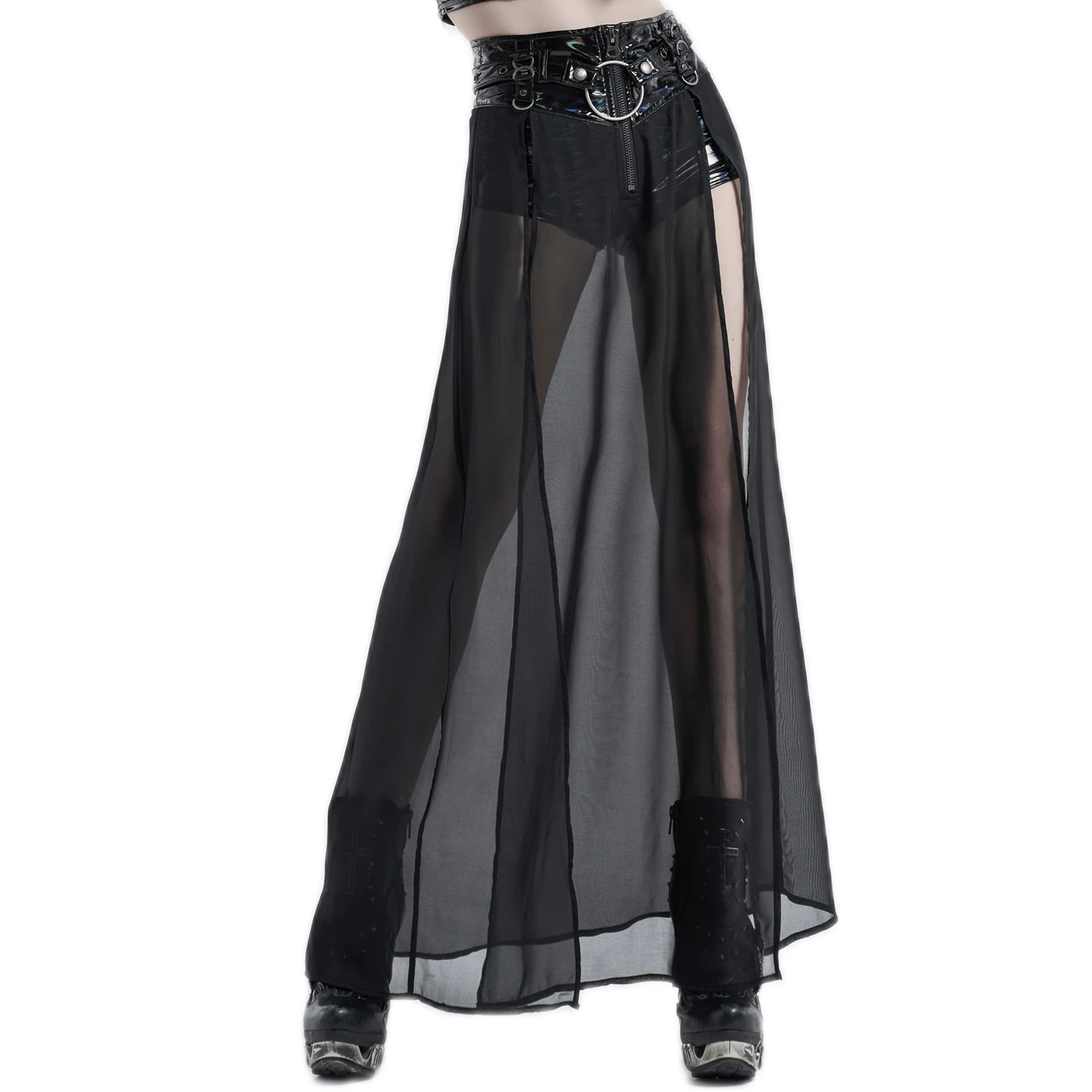 • Surjupe en mousseline transparente et fendue de chaque côté