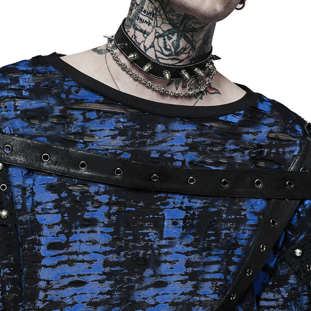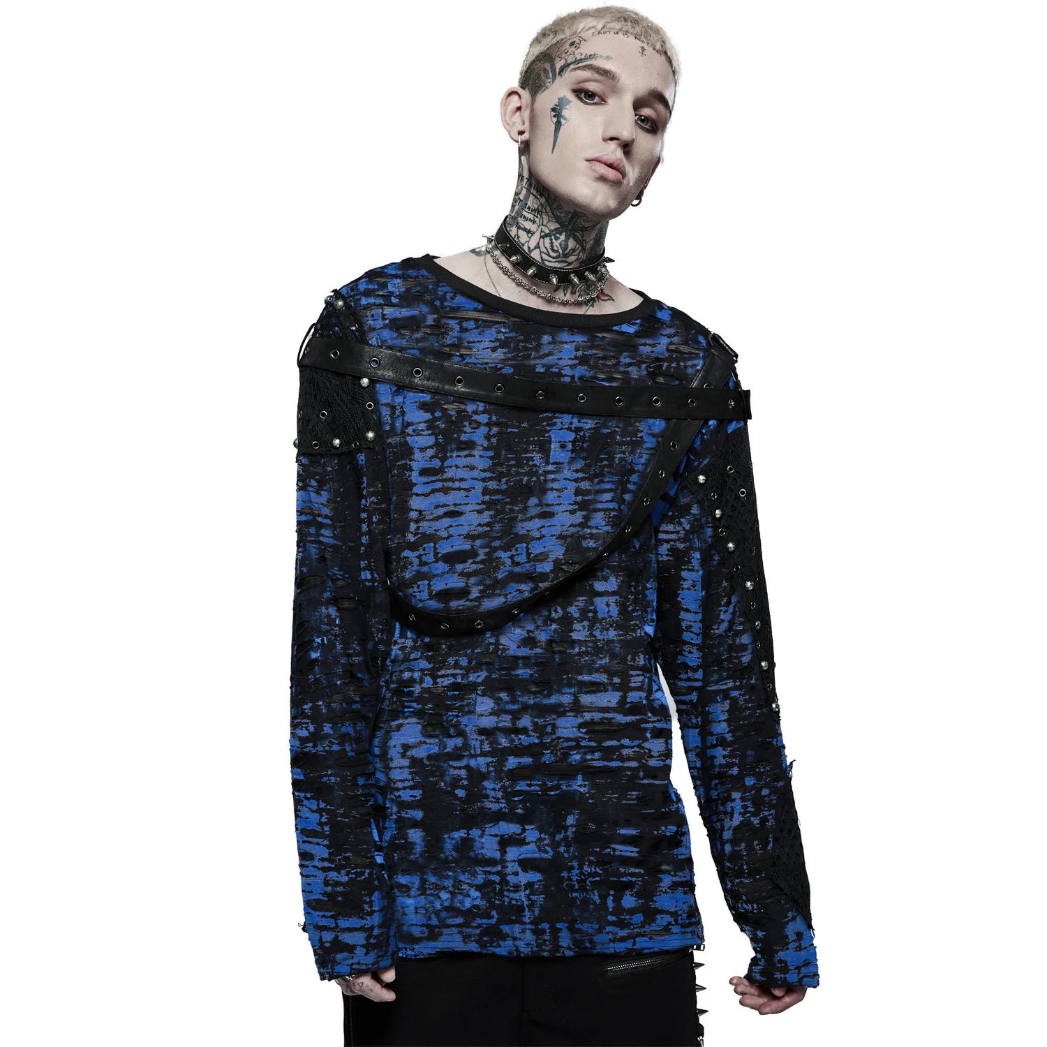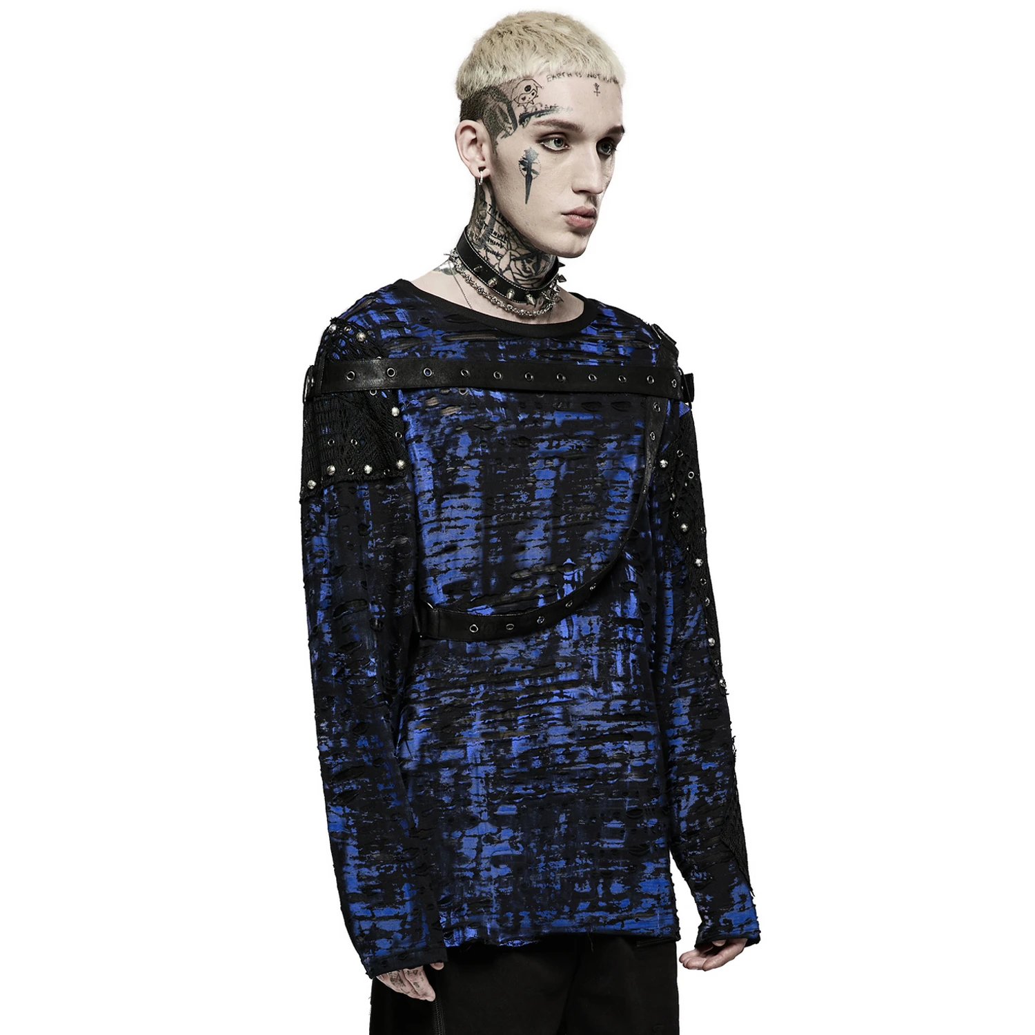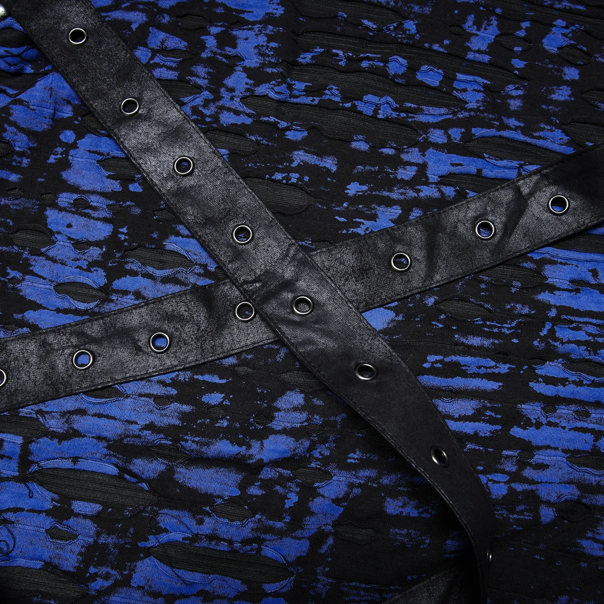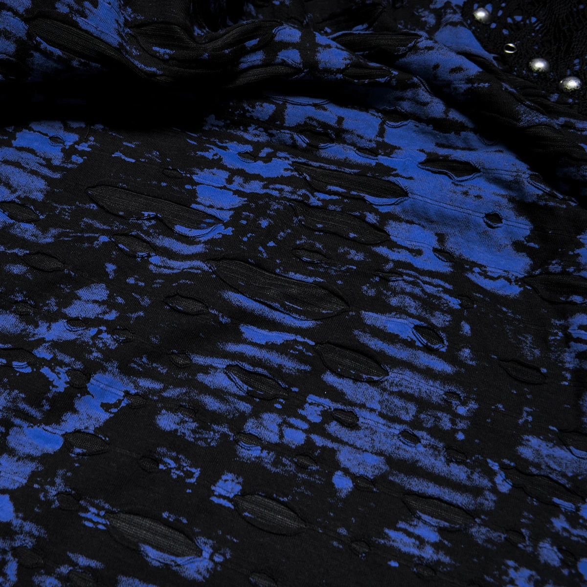 • Tissu imprimé bleu et noir déchiré