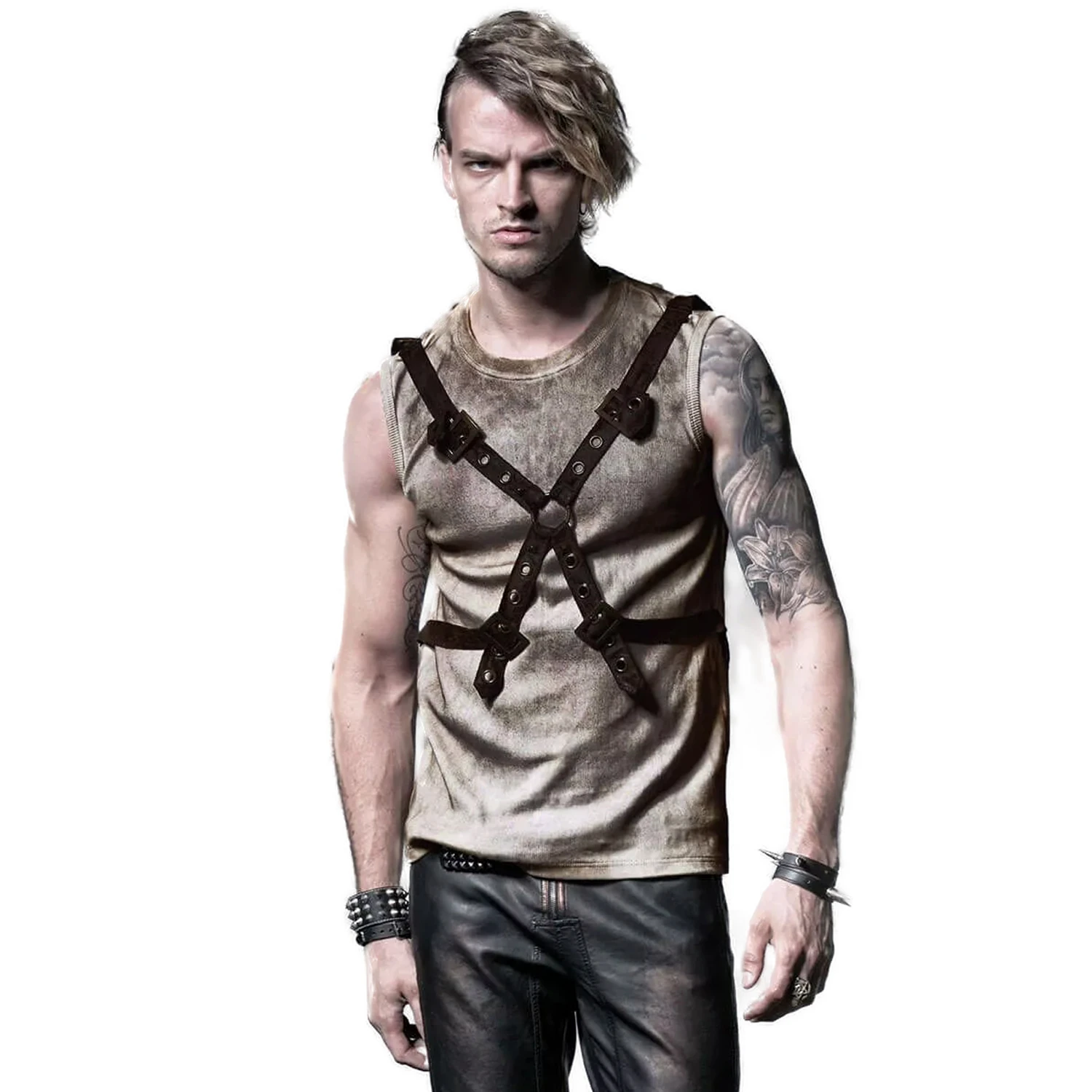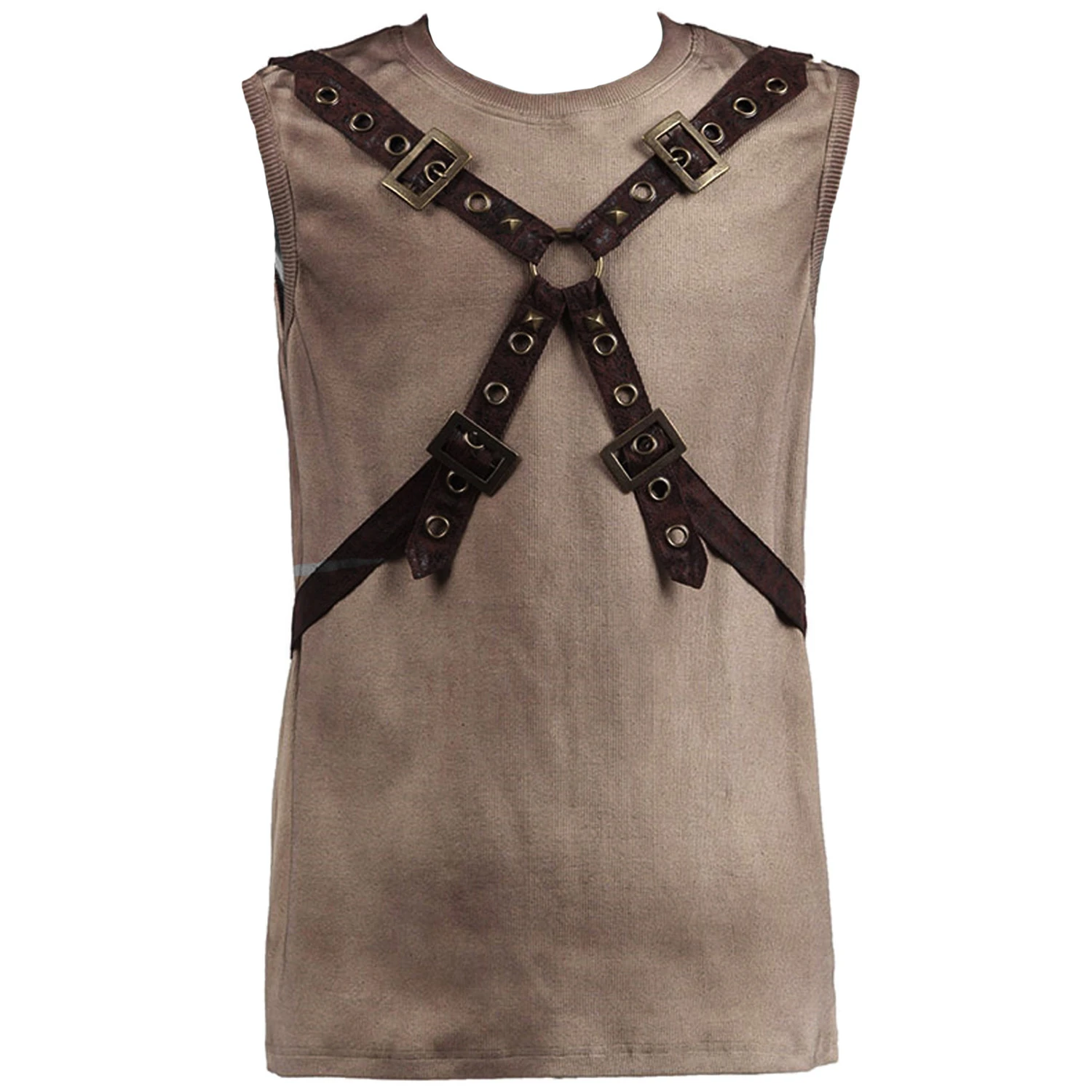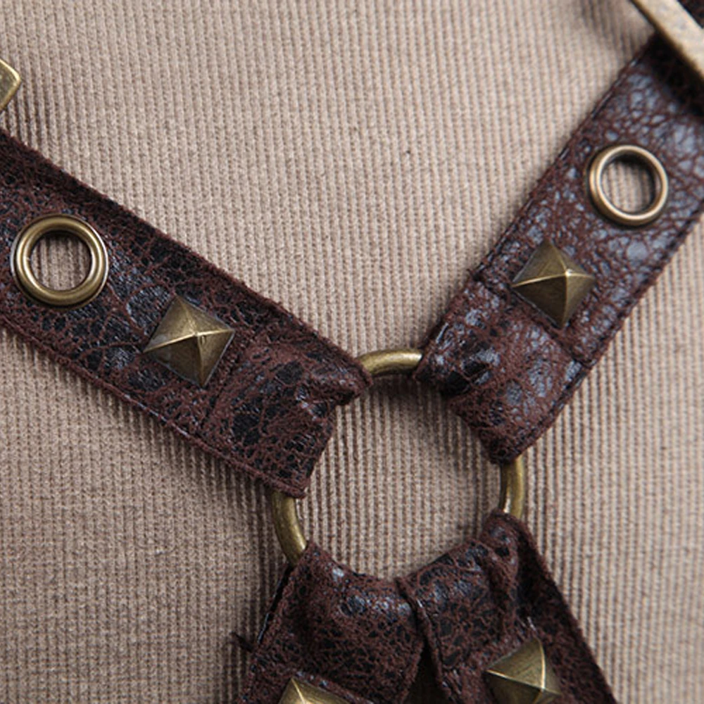 • Boucles, spikes et œillets couleur cuivre sur les sangles, reliées au centre par un gros anneau métallique couleur cuivre
