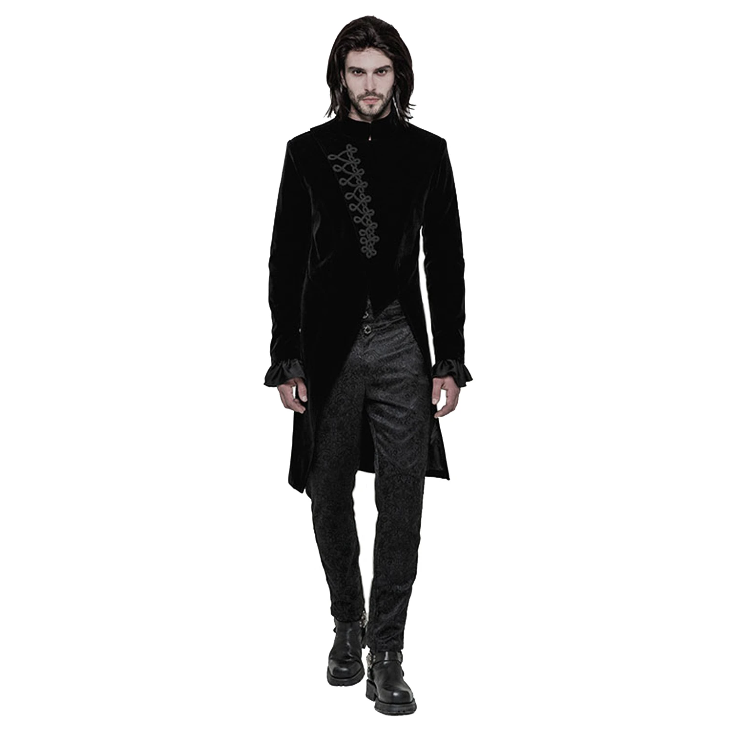 Veste trois-quarts asymétrique en velours noir de style gothique victorien.