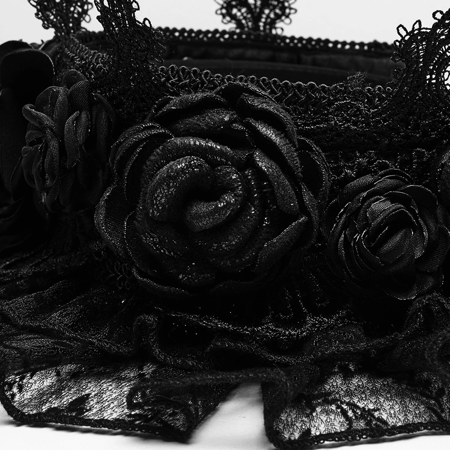 • Bandeau bordé de feuilles de lotus et de roses en dentelle noire