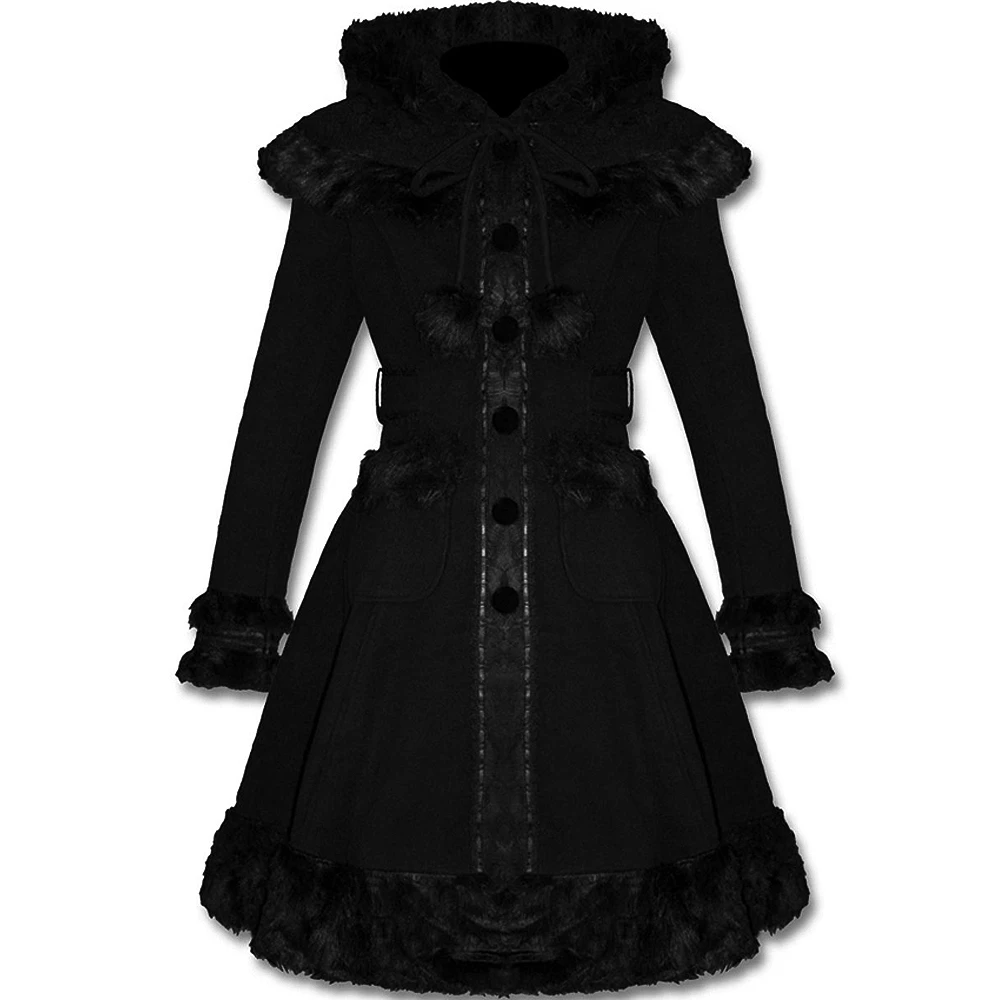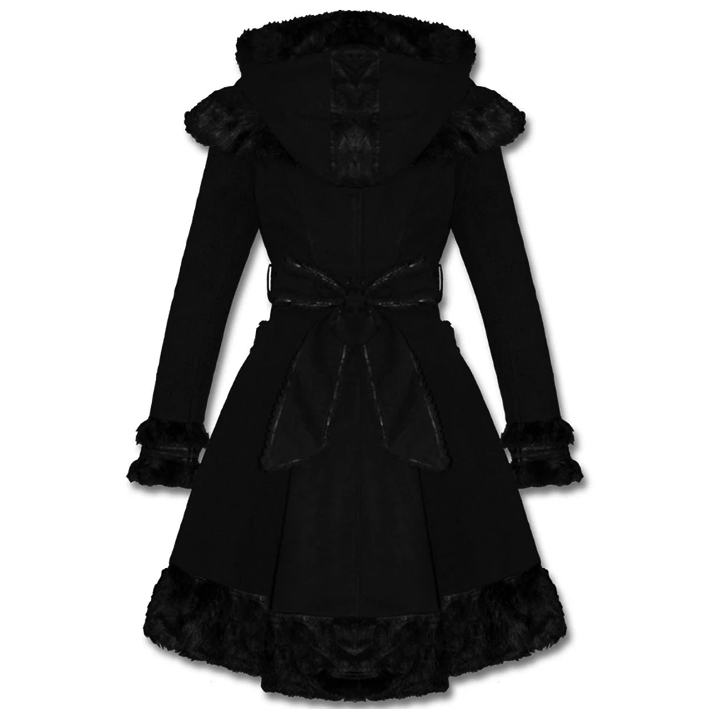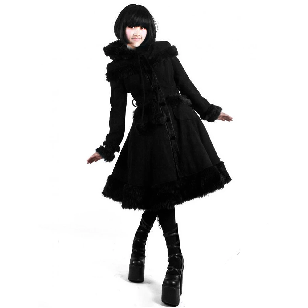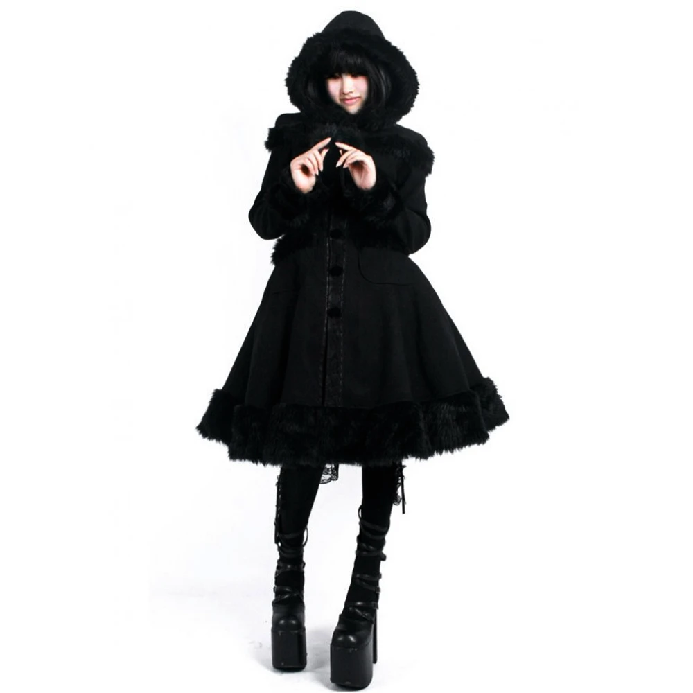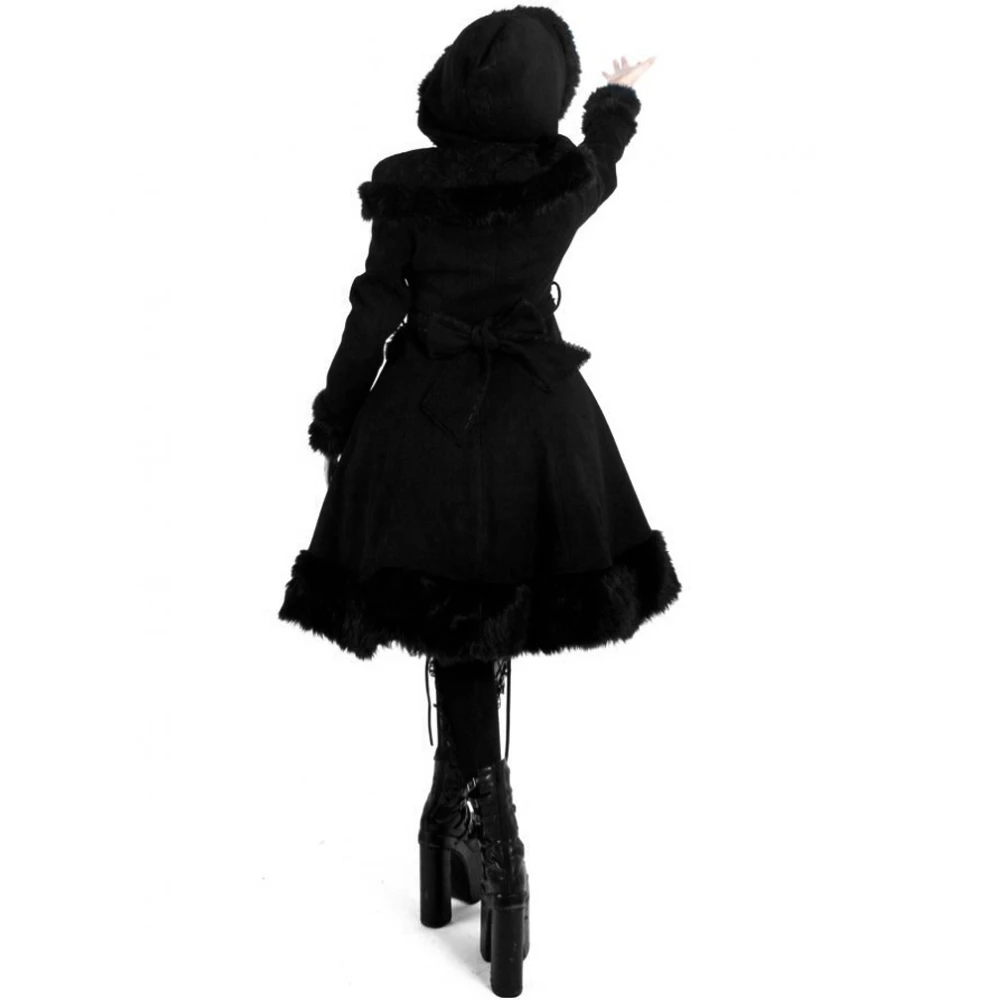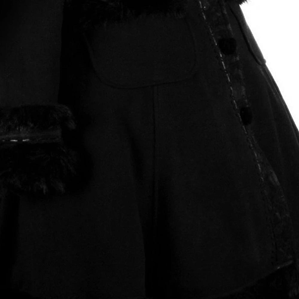 Manteau d’hiver à capuche, bordé de fourrure synthétique souple et bordures en dentelle.