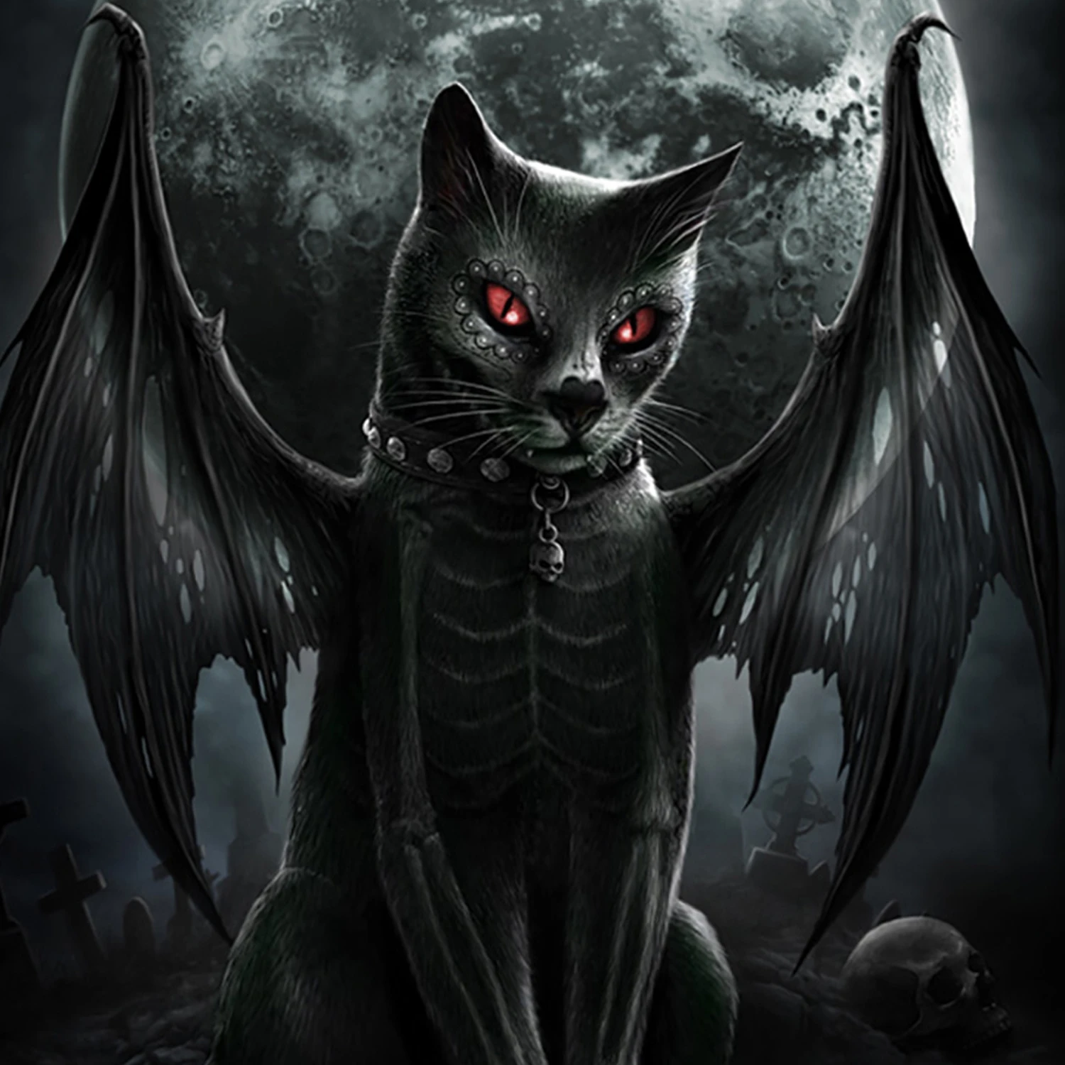 • Vivant ou mort-vivant, ce chat est un prédateur féroce aux ailes de chair et de cartilage en lambeaux déployée