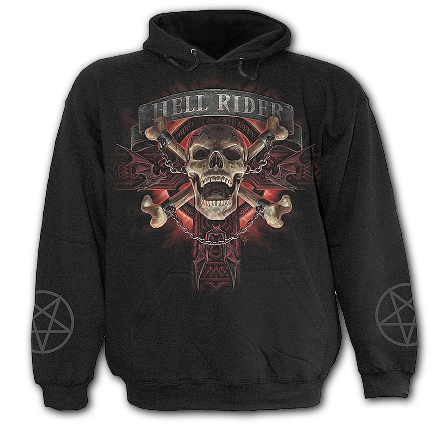 • L’impression au dos montre un crâne enchaîné et des os croisés avec une bannière de style cuir.
